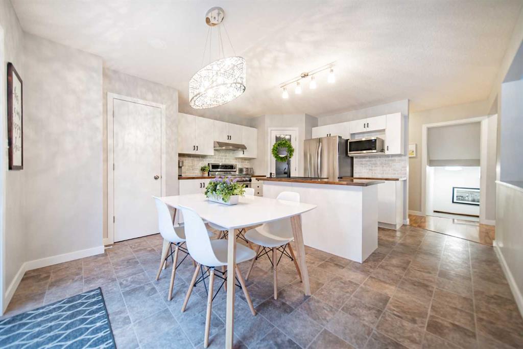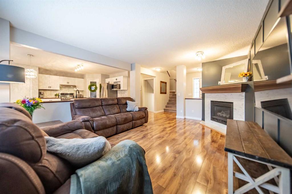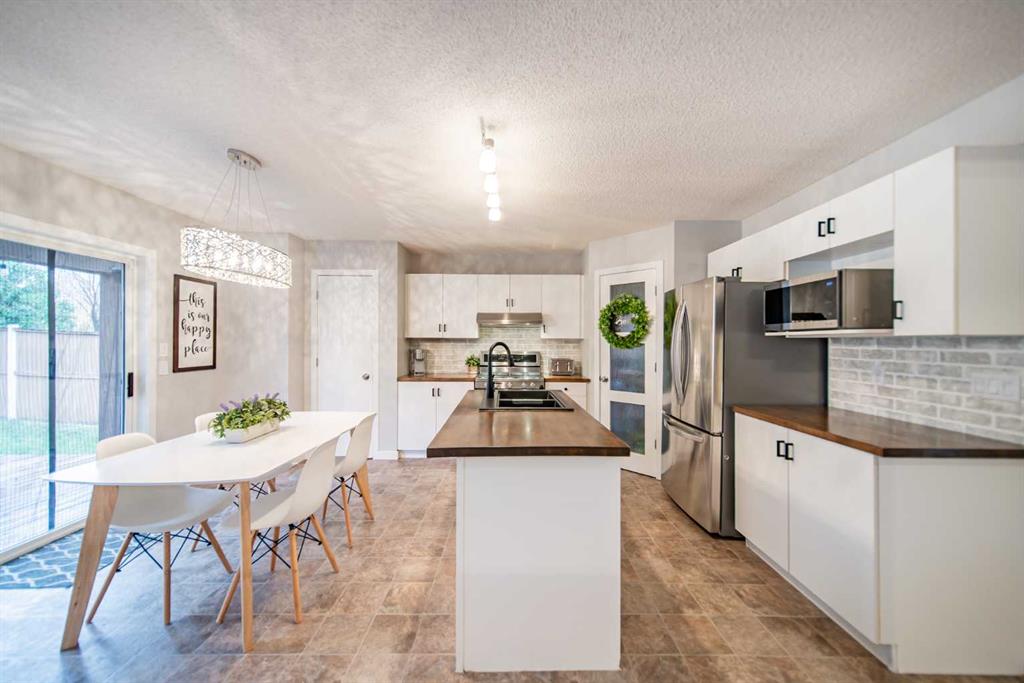 This home offers access to both public and Catholic school systems, along with an abundance of updated parks and pathway networks. The inviting front entry opens to a bright, open concept main floor featuring a cozy living room with a fireplace, a beautifully updated kitchen with modern appliances, and an island overlooking the dining area, ideal for both everyday living and entertaining. Patio doors lead to a sunny, private west-facing backyard, complete with a deck perfect for relaxing evenings.