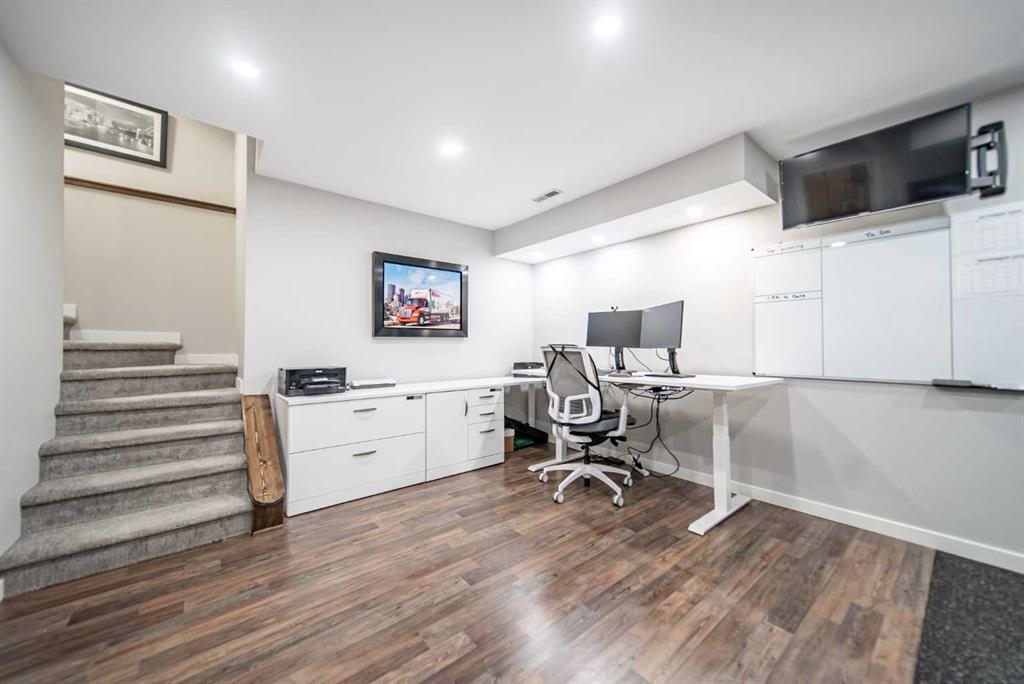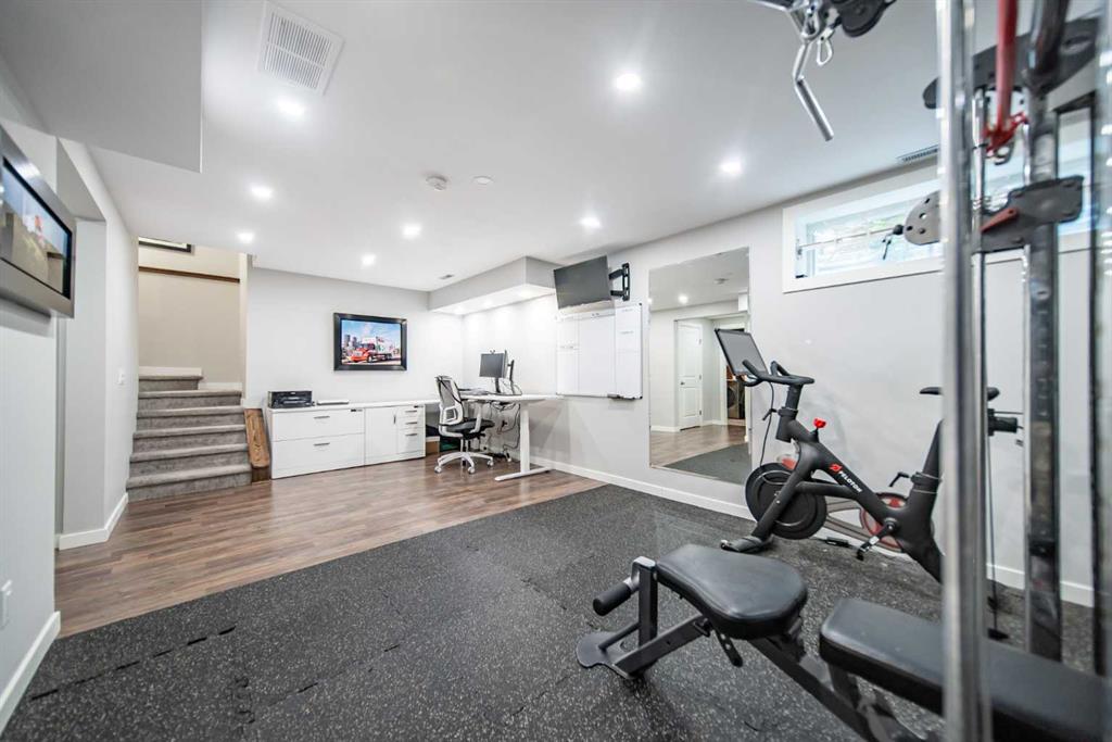 The fully finished basement adds exceptional versatility with a den or work area, gym space, and an additional bedroom. The utility room remains undeveloped, offering space and rough-in for a future bathroom. Additional features include existing main-floor laundry hookups discreetly located behind the custom mudroom bench, providing flexibility to relocate laundry if desired.