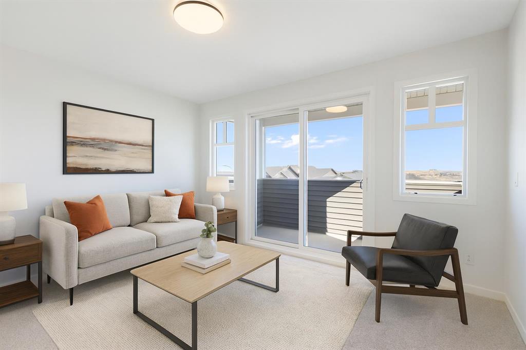 Welcome to 17 Marmot Passage NW, where modern design meets family functionality in the heart of Glacier Ridge – one of northwest Calgary’s most sought-after new communities. Built by Cedarglen Homes, this is the showstopping three-storey Carbon model offering 2,525 sq ft of beautifully designed living space, complete with 4 bedrooms, 3.5 bathrooms, a third-floor loft, and a covered balcony – perfect for families who want it all. From the moment you walk through the front door, you’ll notice how every detail feels elevated. The main floor welcomes you with 8’ doors, upgraded black hardware, and luxury vinyl plank flooring that flows seamlessly throughout the open layout. The great room is bright and airy with large windows and a sleek electric fireplace, while the chef-inspired kitchen is the true heart of the home featuring two-tone cabinetry, quartz countertops, a full working kitchen, and gas lines to both the range and BBQ. Whether you’re hosting a dinner party or a quiet night in, the dining nook and rear deck create an effortless indoor-outdoor flow. Upstairs, the primary retreat offers a peaceful escape with a large walk-in closet and a spa-like ensuite finished with tiled walls and an upgraded shower glass door. Two additional bedrooms, a full bathroom, upper-floor laundry, and a spacious bonus room ensure everyone has space to relax, work, or play. And just when you think you’ve seen it all – head up to the third-floor loft. This flexible space with its own covered balcony is where you’ll unwind after a long day, enjoy morning coffee in the sunshine, or set up your dream home office or media room. A 4th bedroom resides on this level, along with another 4 pc bathroom. It’s the perfect blend of comfort, creativity, and style. The side entrance and unfinished basement also make this home future-ready, with rough-ins for a secondary suite – offering both flexibility and long-term value. Outside your doorstep, Glacier Ridge invites you to live a lifestyle that balances nature, convenience, & community. Walk or bike through the beautifully designed pathways and green spaces, spend weekends exploring nearby parks and playgrounds, or take a quick drive to Creekside Shopping Centre, Beacon Hill, or Evanston Towne Centre for all your favourite shops, cafés, and everyday essentials. With schools, recreation areas, and future amenities continuing to grow, this is a community where families truly thrive. Available for immediate possession, this exceptional home blends luxury, practicality, & connection in one of Calgary’s most exciting northwest neighbourhoods. Come experience the thoughtful design and lasting quality of Cedarglen Homes and make Glacier Ridge your next chapter.