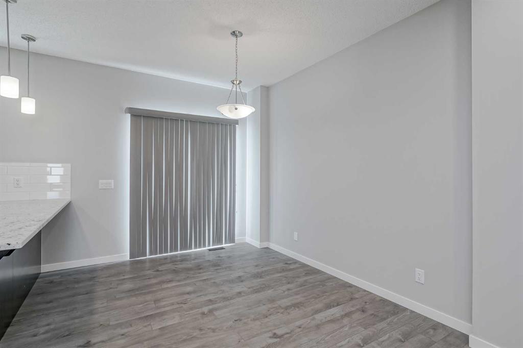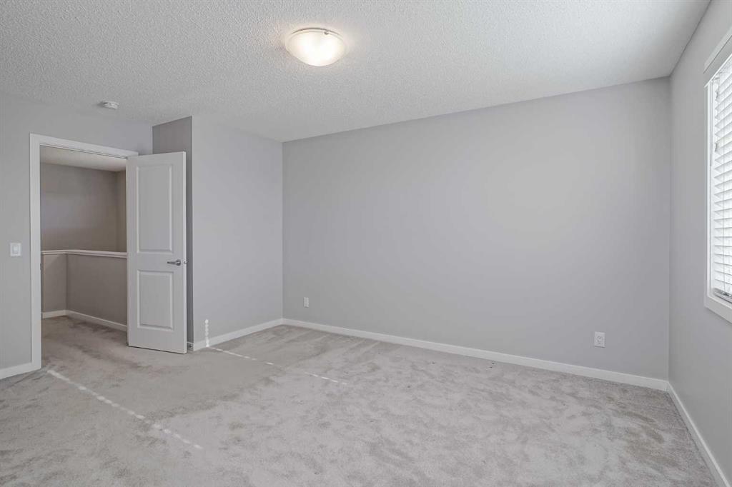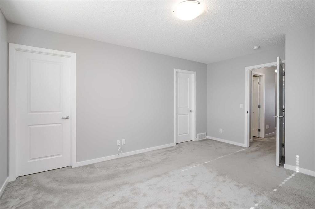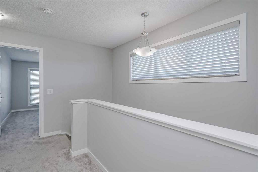 Seize this rare chance to claim a stunning half-duplex in the desirable community of Carrington—a home that delivers unmatched privacy and incredible modern value. This property immediately distinguishes itself with its unique pie-shaped lot and the huge advantage of no rear neighbors, ensuring your expansive, fully fenced backyard is a truly serene oasis. The southeast-facing yard, complete with a deck, patio, and underground sprinklers, is a spectacular setting for outdoor enjoyment and complete relaxation. Step inside and be greeted by a bright, open-concept floor plan, accentuated by soaring 9-foot ceilings and elegant Luxury Vinyl Plank flooring on the main level. The chef’s delight kitchen is thoughtfully designed, showcasing sleek stainless steel appliances, premium quartz countertops, an inviting eating bar, and soft-closing drawers. This culinary hub is perfectly positioned to serve the spacious dining area, making it ideal for entertaining. Upstairs, the generous primary bedroom provides a genuine private retreat, complete with a walk-in closet and a private 3-piece ensuite. Two additional well-sized bedrooms offer abundant natural light and share a spacious 4-piece bathroom. The convenience of an upper-level laundry room makes daily chores a breeze. Enjoy year-round comfort with central air conditioning and the convenience of an insulated attached garage. The full and unfinished basement is a blank canvas, offering endless potential and featuring rough-in plumbing for a future bathroom. Nestled in a fantastic community with easy access to shopping, parks, and major routes like Stoney Trail, this home is the perfect combination of modern living, privacy, and future potential. Priced to sell, this exceptional residence is a smart investment—schedule your showing today!