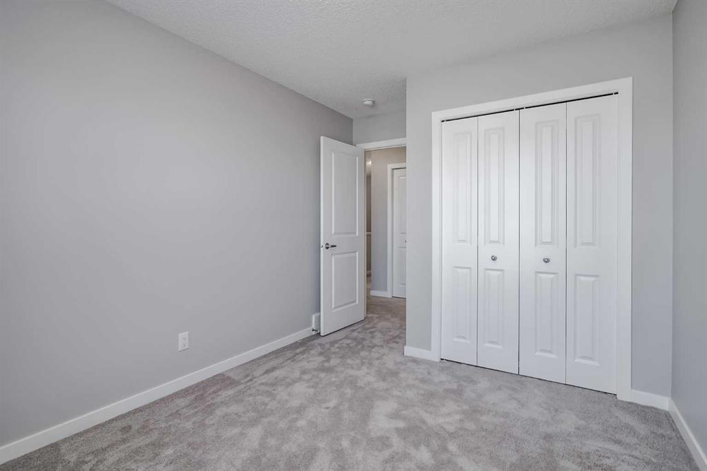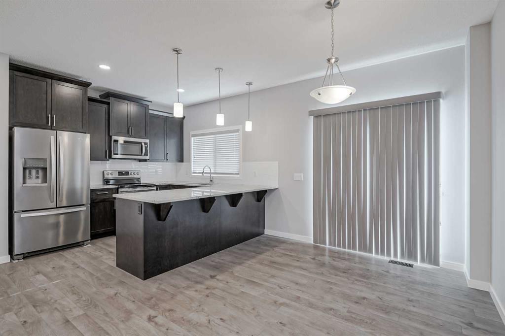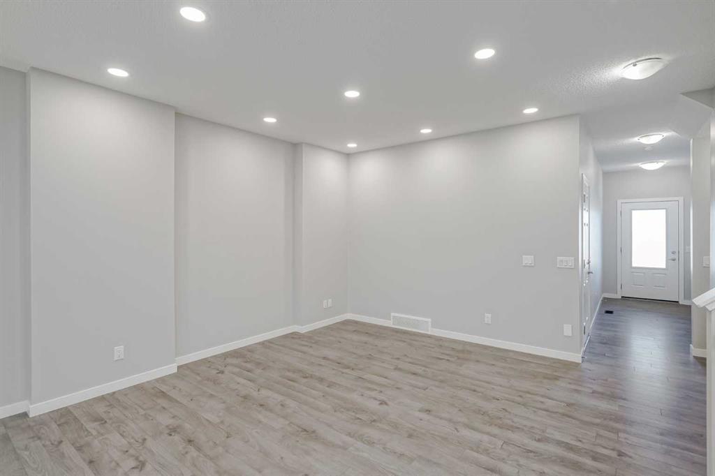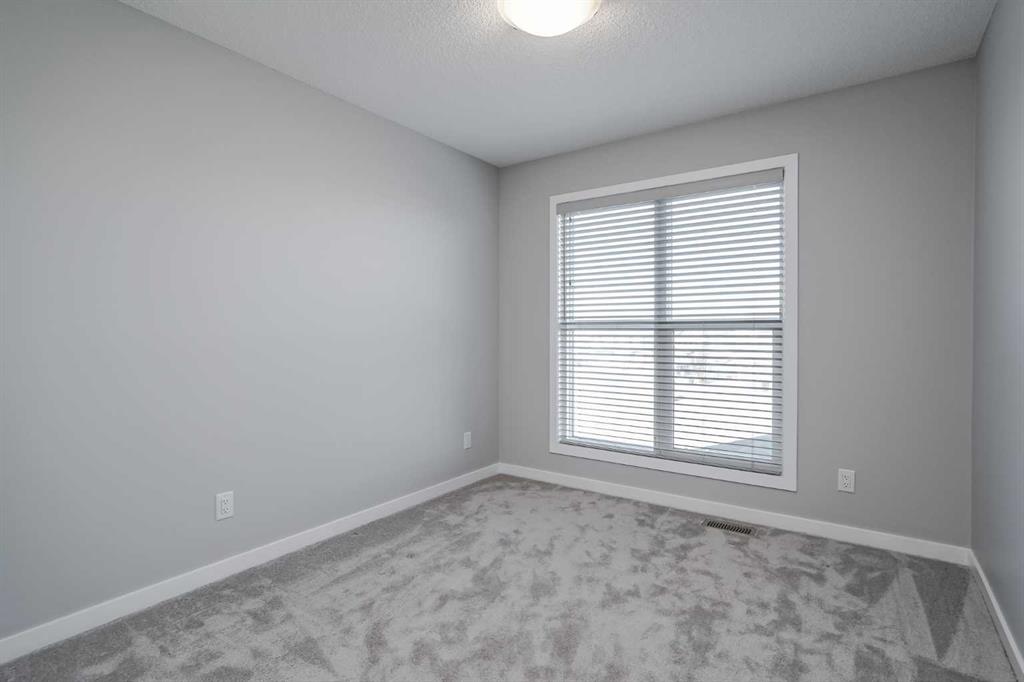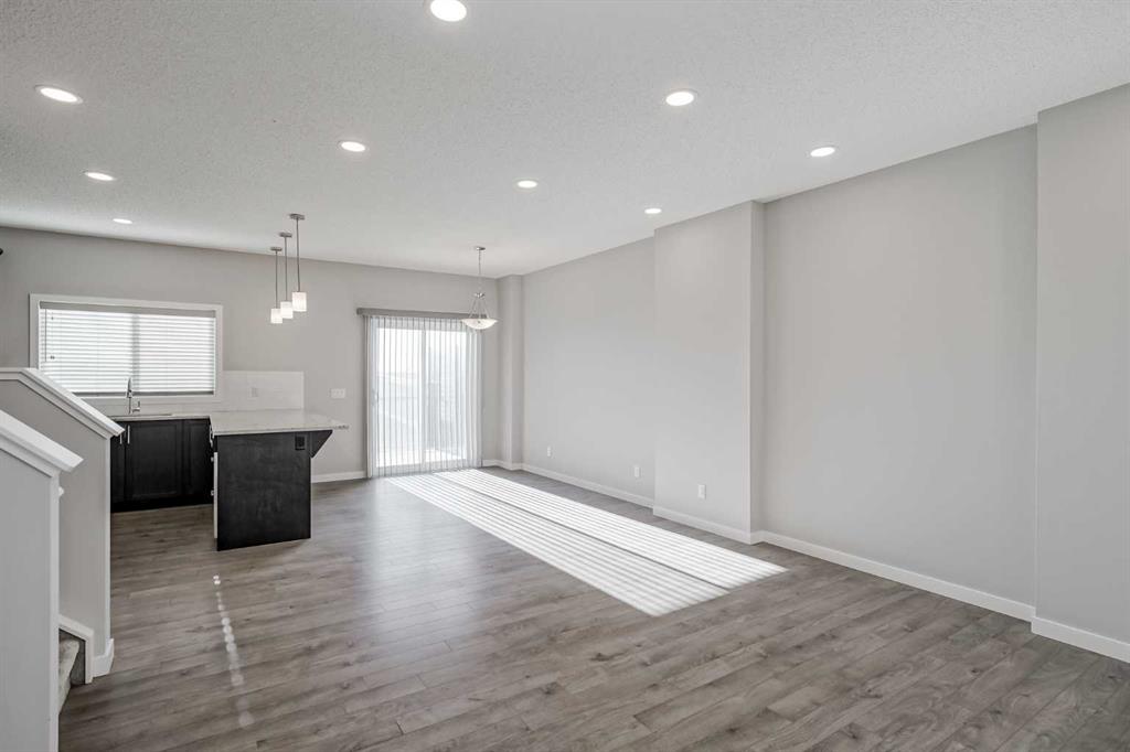 Seize this rare chance to claim a stunning half-duplex in the desirable community of Carrington—a home that delivers unmatched privacy and incredible modern value. This property immediately distinguishes itself with its unique pie-shaped lot and the huge advantage of no rear neighbors, ensuring your expansive, fully fenced backyard is a truly serene oasis. The southeast-facing yard, complete with a deck, patio, and underground sprinklers, is a spectacular setting for outdoor enjoyment and complete relaxation. Step inside and be greeted by a bright, open-concept floor plan, accentuated by soaring 9-foot ceilings and elegant Luxury Vinyl Plank flooring on the main level. The chef’s delight kitchen is thoughtfully designed, showcasing sleek stainless steel appliances, premium quartz countertops, an inviting eating bar, and soft-closing drawers. This culinary hub is perfectly positioned to serve the spacious dining area, making it ideal for entertaining. Upstairs, the generous primary bedroom provides a genuine private retreat, complete with a walk-in closet and a private 3-piece ensuite. Two additional well-sized bedrooms offer abundant natural light and share a spacious 4-piece bathroom. The convenience of an upper-level laundry room makes daily chores a breeze. Enjoy year-round comfort with central air conditioning and the convenience of an insulated attached garage. The full and unfinished basement is a blank canvas, offering endless potential and featuring rough-in plumbing for a future bathroom. Nestled in a fantastic community with easy access to shopping, parks, and major routes like Stoney Trail, this home is the perfect combination of modern living, privacy, and future potential. Priced to sell, this exceptional residence is a smart investment—schedule your showing today!