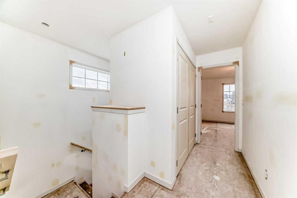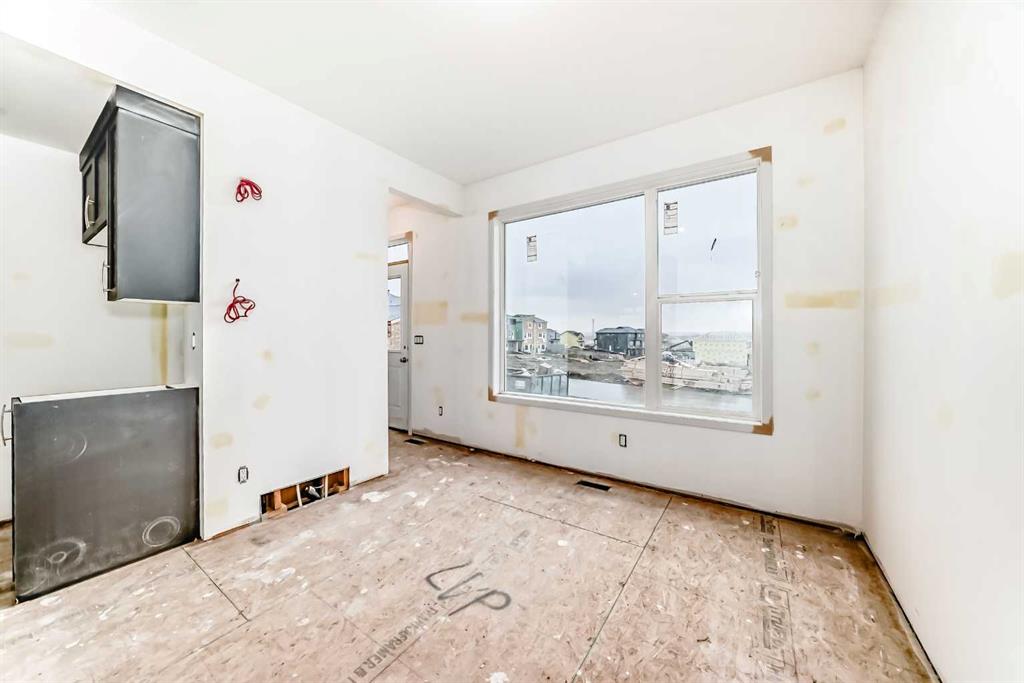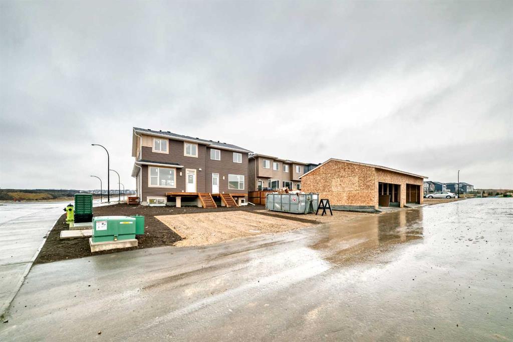 Welcome to this modern 3-bedroom corner lot duplex in the sought-after community of Glacier Ridge. The main floor offers an inviting living area with an electric fireplace, knock-down ceilings, vinyl flooring, and a stylish kitchen complete with a central island, quartz countertops, a built-in microwave, and a fridge with a water line. A half bath on this level provides added convenience for guests. Upstairs features three generous bedrooms, including a primary suite with its own 4-piece ensuite, plus a second 4-piece bathroom and a convenient laundry room. The basement includes a separate side entrance, a 9’ foundation, and rough-ins for a future suite, offering excellent potential for added living space or income generation. Outside, you’ll find a deck with a built-in gas line for your BBQ, plus a gravel parking pad providing easy off-street parking. Located in Glacier Ridge, one of Calgary’s newest and most desirable communities, this home blends modern comfort with everyday convenience.