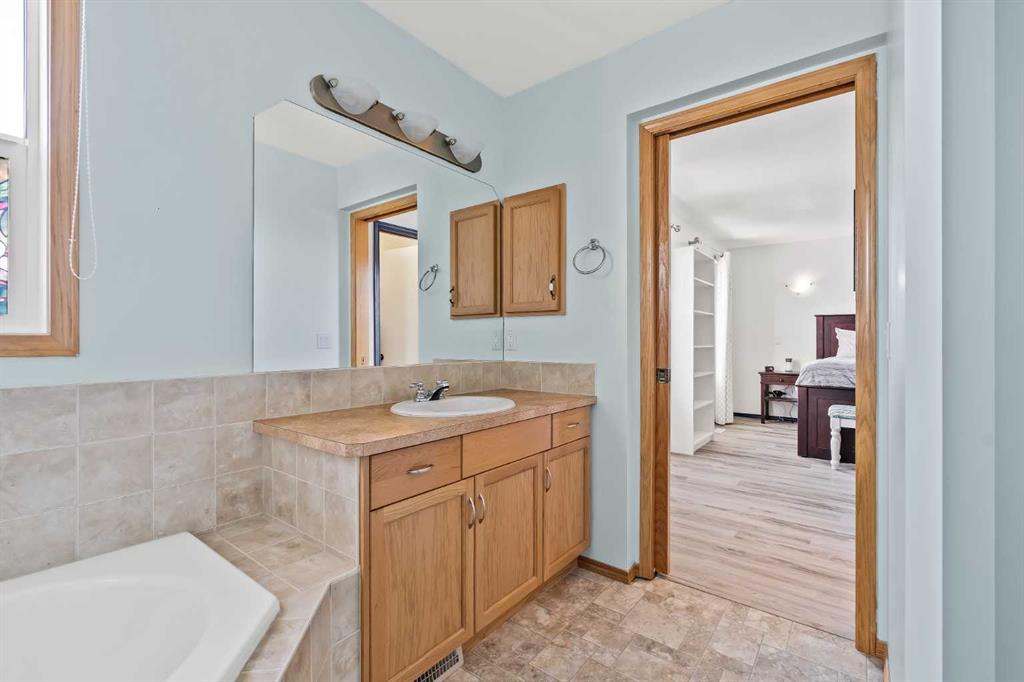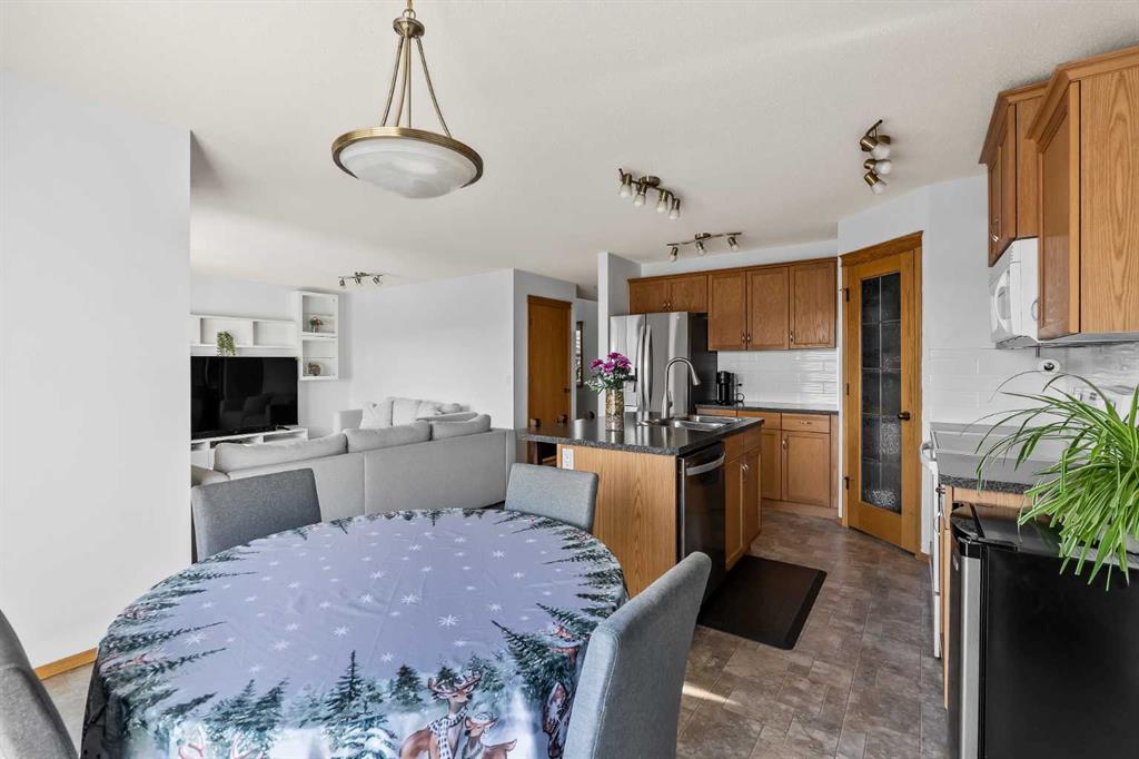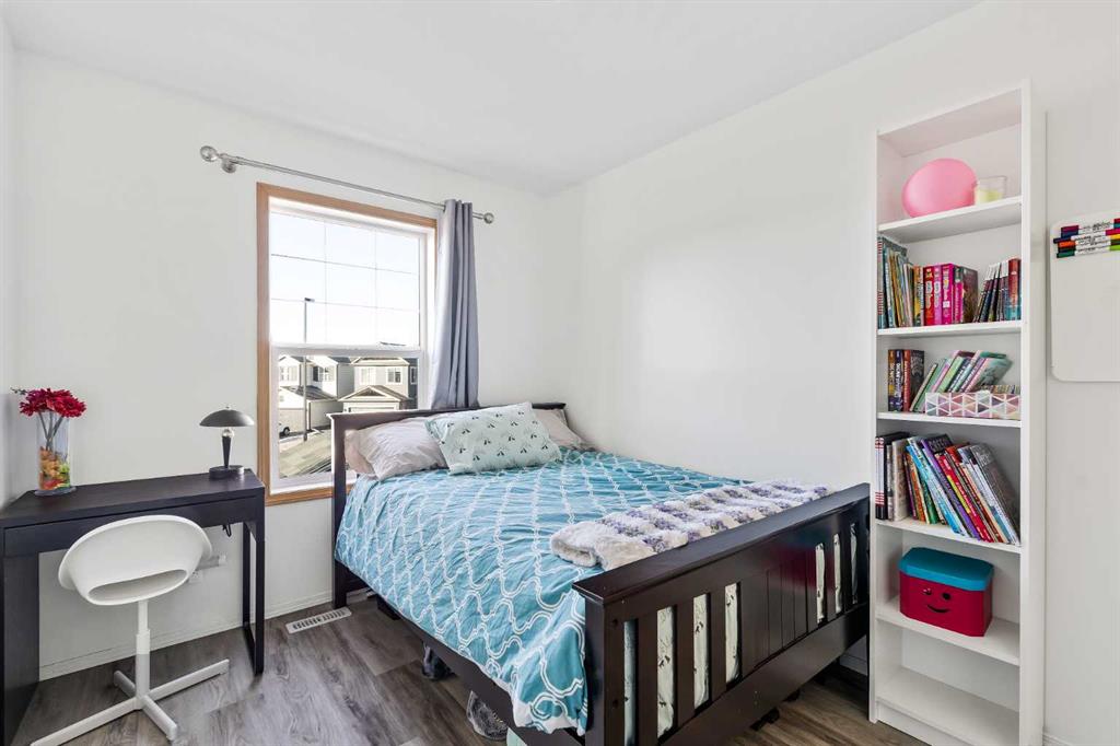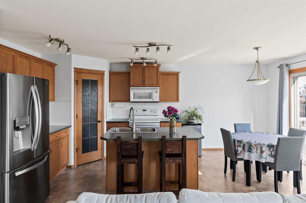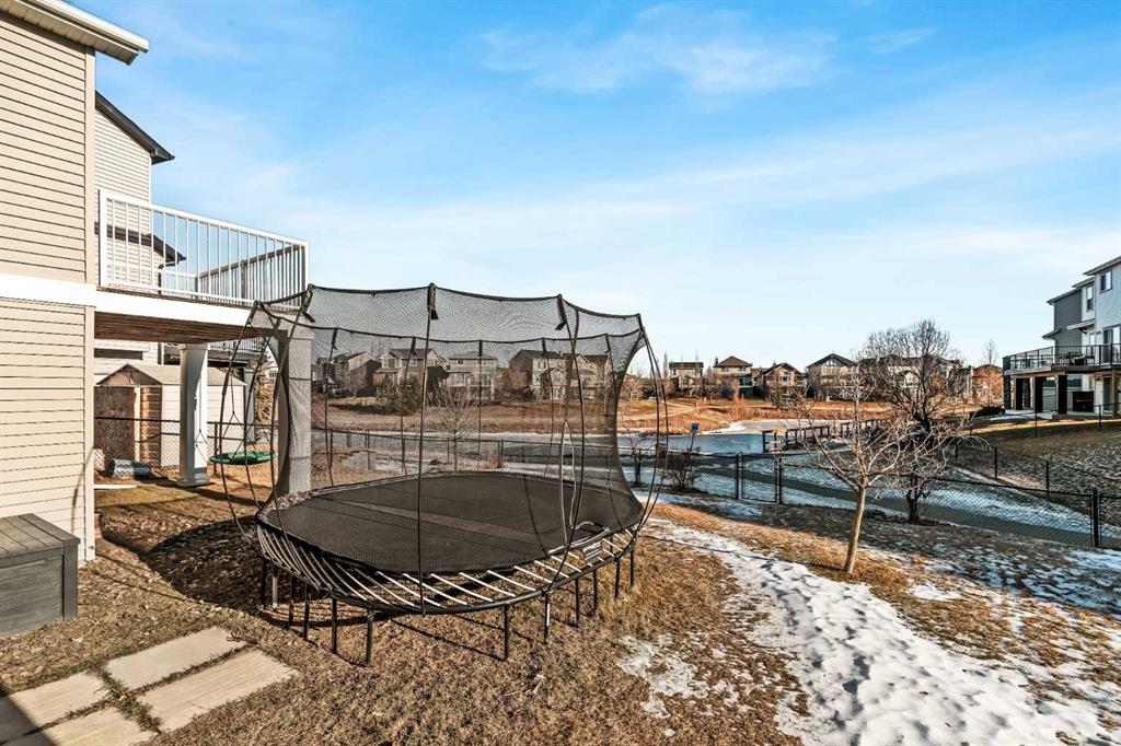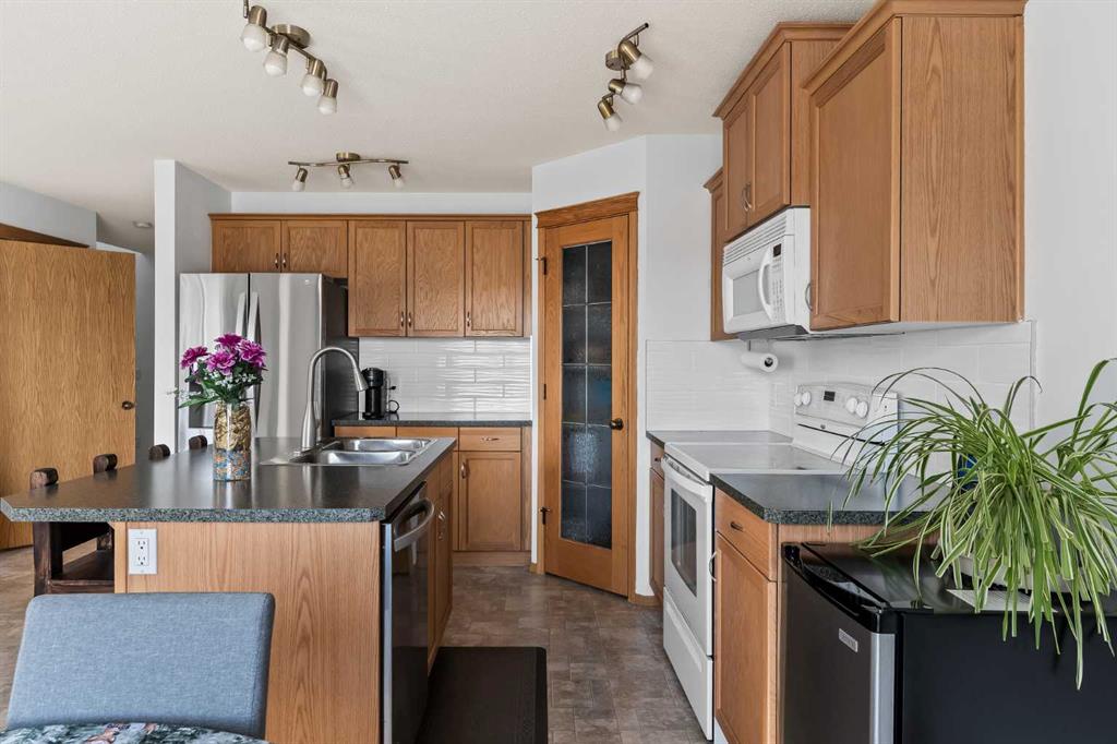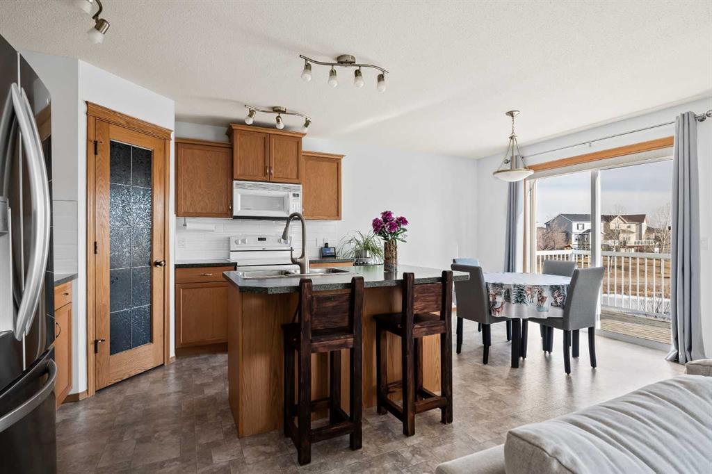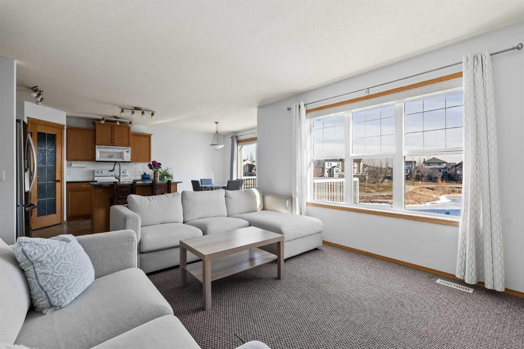 Welcome to 170 Sagewood Landing SW! This fully developed WALKOUT offers nearly 2,300 sq. ft. of living space on an impressive 5,124 sq. ft. pie lot at the end of a quiet cul-de-sac. With a sunny SE-facing backyard backing onto the pond and pathway system, there are no rear neighbours — just space, views, and direct access to the outdoors. As you enter, an open-to-above foyer sets the tone for the bright and open main floor. Large picture windows along the back of the home flood the space with natural light and frame tranquil views of the pond. The kitchen features newer S/S fridge and dishwasher, updated tile backsplash, great cabinet storage, a generous pantry, and an island that comfortably seats three — perfect for busy school mornings and weekend baking. Adjacent to the kitchen is a cozy dining nook, and a spacious living room. A main floor office adds versatility for working from home or can easily serve as a playroom or an additional bedroom. A convenient 2-pc bath completes the level. Upstairs, new luxury vinyl plank flooring leads you to a grand primary bedroom with a walk-in closet and a 3-piece ensuite with a large soaker tub. Two additional bedrooms and a full 4-pc bath finish out the upper level. The fully developed walkout basement level has 9′ ceilings with large windows that offer great views of the expansive backyard and pond. The recreation/games room comes with a gas fireplace to keep you cozy during those winter months! You will also find an additional 3-piece bath, laundry room, and storage. Outside, the backyard is truly an extension of your living space. With room to run and play, plant a garden, add a hot tub, or simply soak in the views, the opportunities are endless! The double attached garage is fully insulated, drywalled, and painted with built-in shelving, and the additional storage shed is perfect for keeping your seasonal items stored. Families will love this location — tucked away on a private street yet close to multiple schools, playgrounds, athletic parks, golf, shops, and restaurants. Notable updates include roof (approx. 12 years old), hot water tank (Dec 2023), water softener (Mar 2023), cabinet hardware, lighting, and custom wooden closet shelving/organizers. A home that gives you space, lifestyle, and room to grow — welcome home!