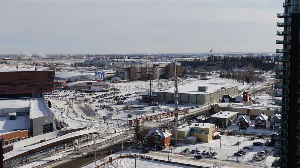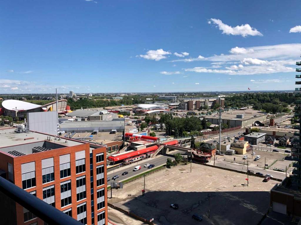 High-floor investment opportunity in Nuera, a sought-after 18+ concrete high-rise in Calgary’s Beltline. Positioned on the 17th floor, this 1-bedroom, 1-bath residence offers desirable south and east exposure, filling the space with natural light throughout the day, plus sunrise-to-sunset city views and west-facing mountain view. Enjoy spectacular views of Stampede Park and the downtown skyline from your private balcony. Inside, 9-foot ceilings and expansive floor-to-ceiling windows create an airy, open atmosphere. The thoughtfully designed open-concept layout features modern finishes, generous cabinetry, deep pot drawers, black appliances, and a functional flow ideal for both entertaining and everyday living. The spacious bedroom offers large windows and ample closet space, complemented by a well-appointed 4-piece bath and in-suite stacked laundry. This residence includes secured underground titled parking and a dedicated storage locker. Nuera offers concierge service, a fully equipped fitness centre, and bike storage — all within a professionally managed building. Ideally located just one block from Victoria Park LRT, Stampede Park, and Sunterra Market, and steps to 17th Avenue’s shopping, dining and entertainment, this address delivers elevated urban convenience with lasting value. High-floor residences with this exposure and view profile are rarely available. Book your showing today.