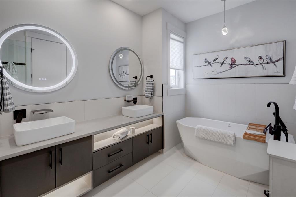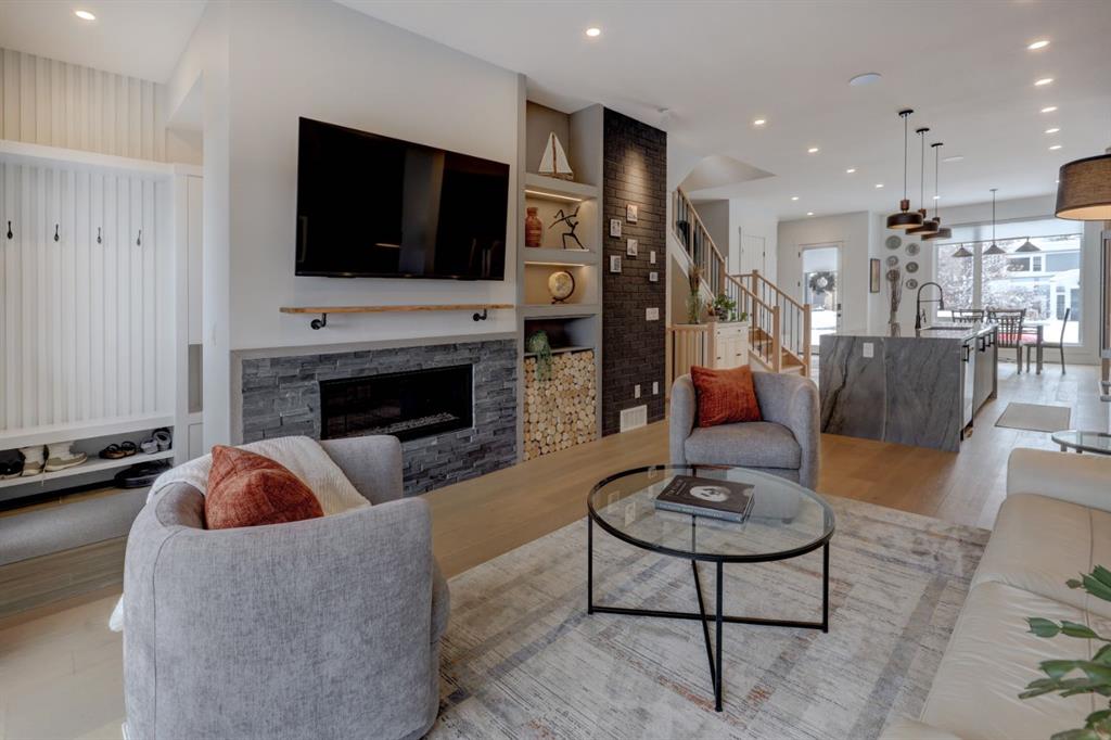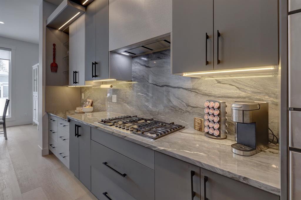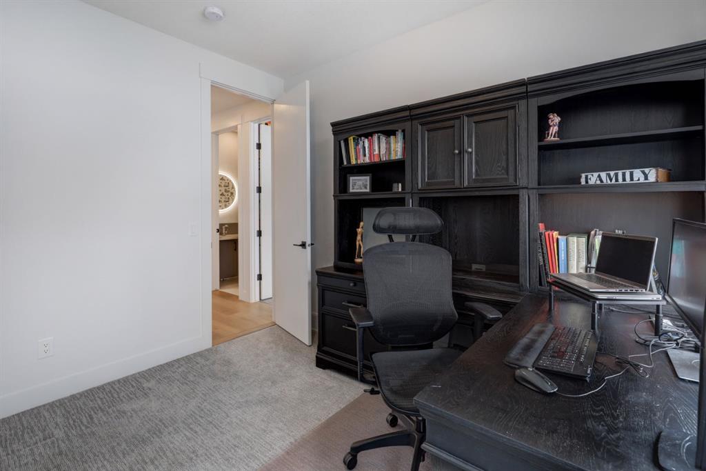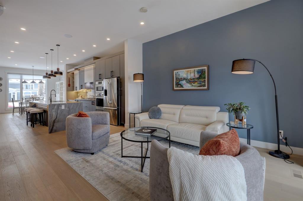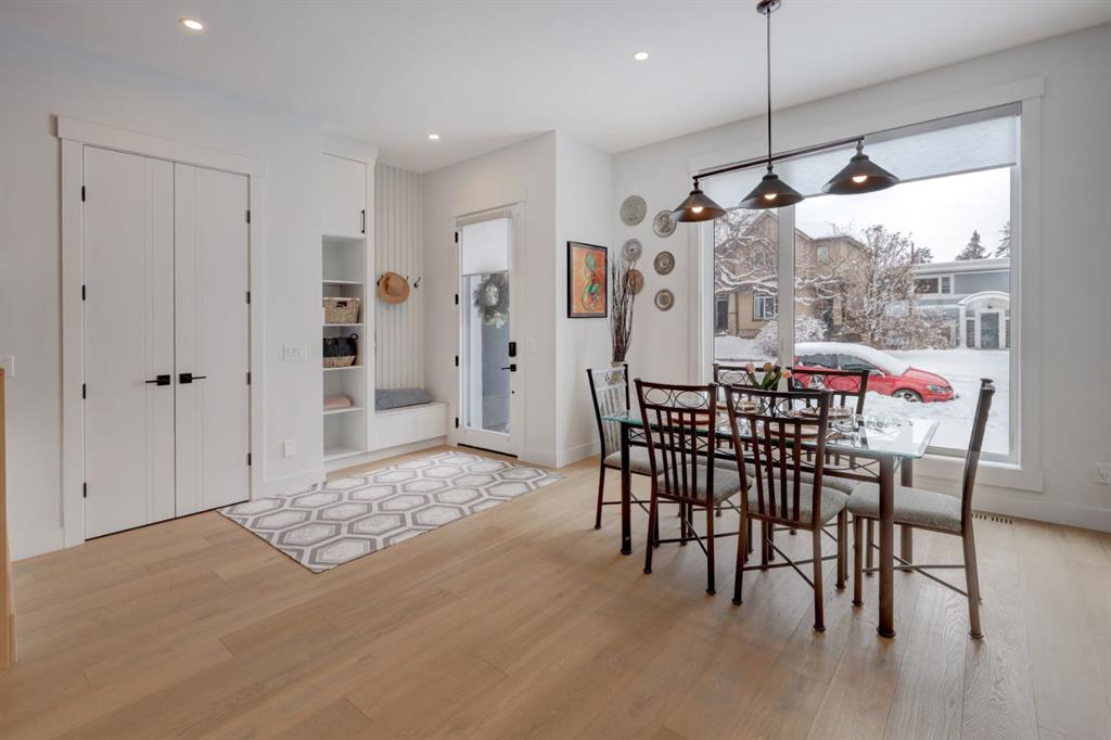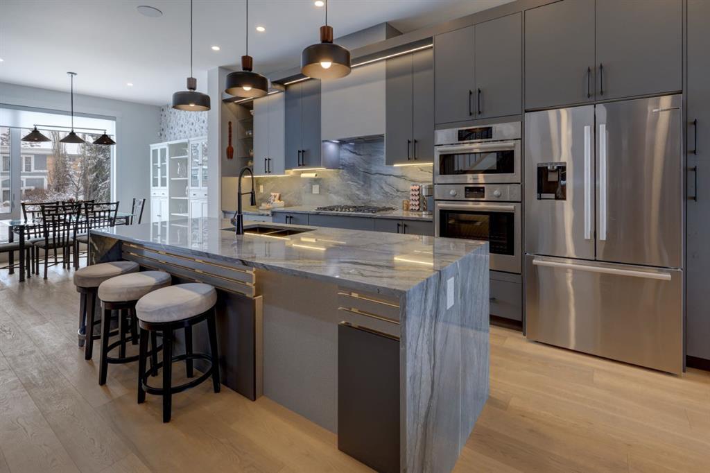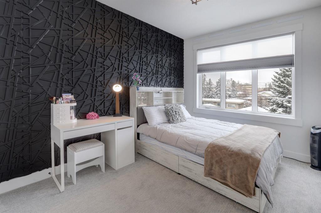 Welcome home to your NEXT TO NEW 4 bed, 3.5 bath home where LOCATION IS EVERYTHING! You can’t beat the proximity to Confederation Park as well as Confederation Park Golf Course. The C-Train, SAIT & North Hill Shopping Center are within waling distance. You are also close to U of C, McMahon Stadium, Foothills Hospital and amazing access to downtown! The main floor impresses with its soaring 10-foot high ceilings, creating a spacious and airy ambiance. Quality craftsmanship is showcased throughout – note the 7.5-inch oak hardwood flooring that extends from the main floor to the powder room, hallway on the 2nd floor as well to the primary bedroom & ensuite with in-floor heating. The contemporary chef’s kitchen boasts granite backsplash & countertops, a large central waterfall island & integrated stainless steel Bosch appliances. There is a large dining area w/natural south light & the family room offers a stone & brick decorated gas fireplace as well as a sliding door leading to the SOUTH back deck. The practical mudroom provides storage and seating, and the home is equipped with speakers on all floors. The bathrooms offer luxurious retreats with LED mirrors, dimmable lighting, and anti-fog functionality. The primary bedroom features a vaulted ceiling & massive windows letting the light flow in. The ensuite boasts a heated tile floor & a modern shower area w/a steam unit generating and releasing steam, creating a wonderful environment for relaxation. The second and third bedrooms are filled with light and spacious enough to accommodate a queen-size bed. The loft on the second floor serves as an ideal space for studying or working from home & all of this is serviced by a 4-piece bathroom located near the additional bedrooms. The well-designed lower level features a welcoming family room, a large dining area, wet bar with soft-close cabinets the 4th bedroom w/ample natural light, and a 4-piece bathroom. Additional features of this exceptional home include custom-built closet organizers, high end window coverings, 10-foot flat ceilings on the main floor and 9-foot ceilings on the upper and lower levels, built-in speakers, a second-floor laundry room with custom built cabinets, a south-facing sunny backyard w/TREES & SHRUBS (including a 3 foot fence to keep any pets off of the grass), CENTRAL AC, hydronic in-floor heating rough-ins in the basement, water softener, and a rough-in for a Central Vacuum. The double insulated and drywalled garage provides convenience and ample storage space. This home is a true masterpiece, seamlessly combining elegance, functionality, and exceptional design.