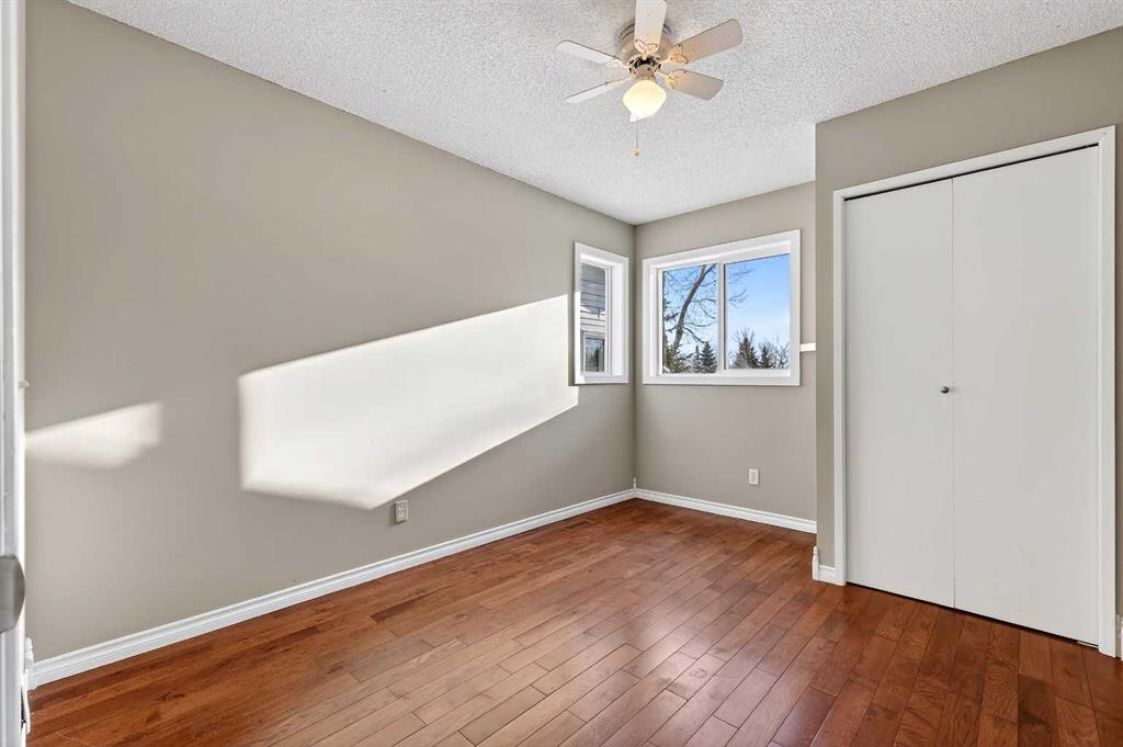 *** LOCATION, LOCATION, LOCATION *** Backing green-space with Deer Run Elementary School within a short walk around the corner*** 3 bedroom + 2 full-bath townhome with sunny south-west exposure backing directly onto mature treed greenspace with walking trails to Fish Creek Park. Views of the green-space from the spacious dining room, primary bedroom and back deck. The kitchen has been renovated with painted wood cabinets, subway tiled back-splash, quartz counters and updated plumbing fixtures and sink. Two generous-sized bedrooms off the kitchen both have hardwood floors and share a full bath with new flooring. The main level living room has vaulted ceilings, hardwood floors and a large south-west facing window for lots of natural light. The lower level is fully finished and features a large family room with charming gas fireplace, third bedroom and second full bathroom. A crawlspace with ample in-suite storage and separate laundry room completes the lower level. The private yard is fenced and perfect for the kids to play. Well maintained with some fresh paint, new doorknobs and hardware. Check out the floor plan in the photos! ***AMAZING LOCATION, close to schools, shopping, public transportation and additional street parking. Shows 10/10..!!!