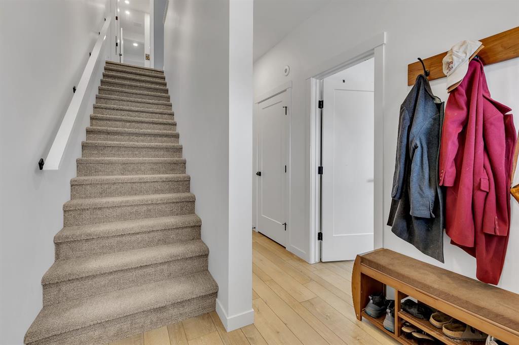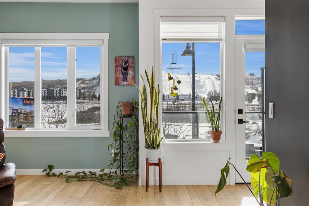 | Open House Sunday April 12th from 12:00pm-4:00pm | Welcome to the Calla Design Plan in Greenwich, built by Landmark Homes in the Artis development. Inspired by New York executive townhome design, this beautifully appointed home offers over 1,650+ square feet of open concept living space in one of Calgary’s most distinctive northwest communities.This thoughtfully designed home features a rare design of 4 bedrooms, 3.5 bathrooms, and a double attached garage, with a layout enhanced by professionally curated interior colour selections and a multitude of builder upgrades throughout.Carefully customized, this home showcases exceptional finishes paired with extraordinary natural light. The south fronting exposure overlooks the front boulevard for additional street parking and amazing views onto Canada Olympic Park and adjacent Park and Playground Spaces. Outdoor living is equally impressive, with a front-entry exposed aggregate patio and a main-floor full glass balcony with BBQ Gas Line designed to enjoy the full afternoon sun. Inside, this home features luxury vinyl plank flooring throughout the main and lower levels, quartz countertops, Painted custom cabinetry, 9-foot ceilings, and upgraded stainless steel appliances, including a chimney hood fan and built-in microwave. High-efficiency building components include triple-pane windows, a high velocity furnace system, tankless hot water tank, and a heat recovery ventilator system.This Calla plan was further enhanced with the builder’s Show Home Package, adding in Central Air Conditioning, the 4th Bedroom and 3rd Full Bathroom on the Entry Level, 8-foot solid interior passage doors, full tile backsplash upgrades, enhanced bathroom finishes, and window coverings throughout. As one of Landmark Homes’ most open and customizable floor plans, this layout offers exceptional flexibility for options of a full dedicated dining room experience, or an oversized main floor living room configuration. The exterior of this development was designed with New York brownstone influence, featuring James Hardie panel siding, brick accenting, and stucco finishes for a contemporary, low-maintenance lifestyle. Ideally located, this home offers quick access to downtown Calgary (approximately 18 minutes), University of Calgary and Foothills Medical Centre (approximately 12 minutes), and weekend escapes to Banff or Canmore in under an hour. It is also within walking distance of the Calgary Farmers’ Market West and Boutique and Specialty Shopping in the Central Commercial Plaza. Book your showing today and discover what makes Greenwich NW such an exceptional place to call home.