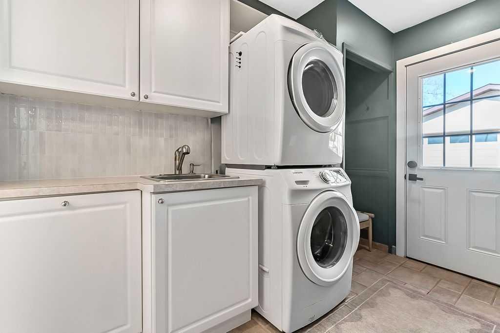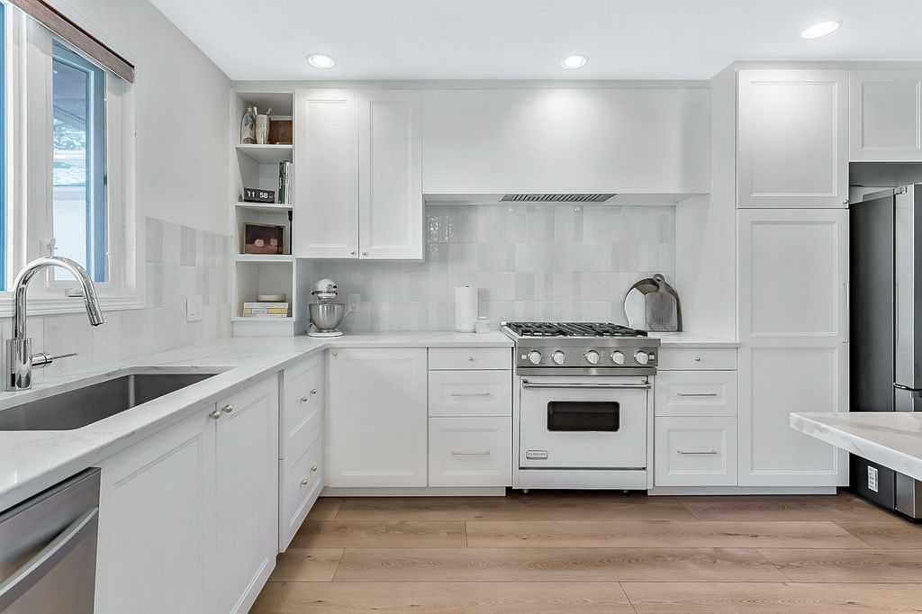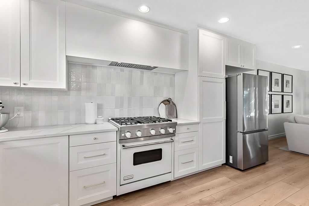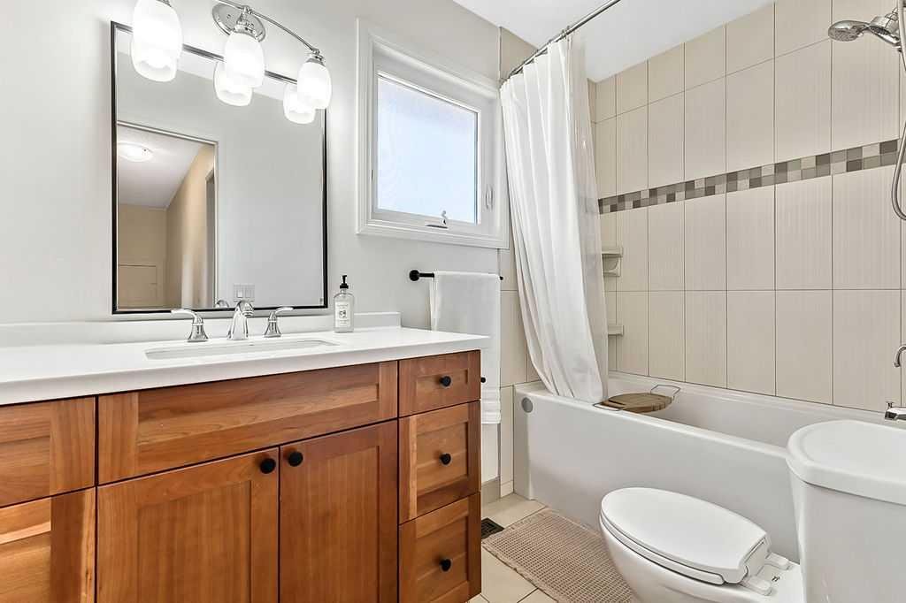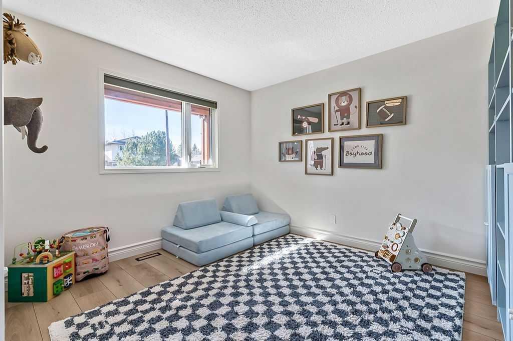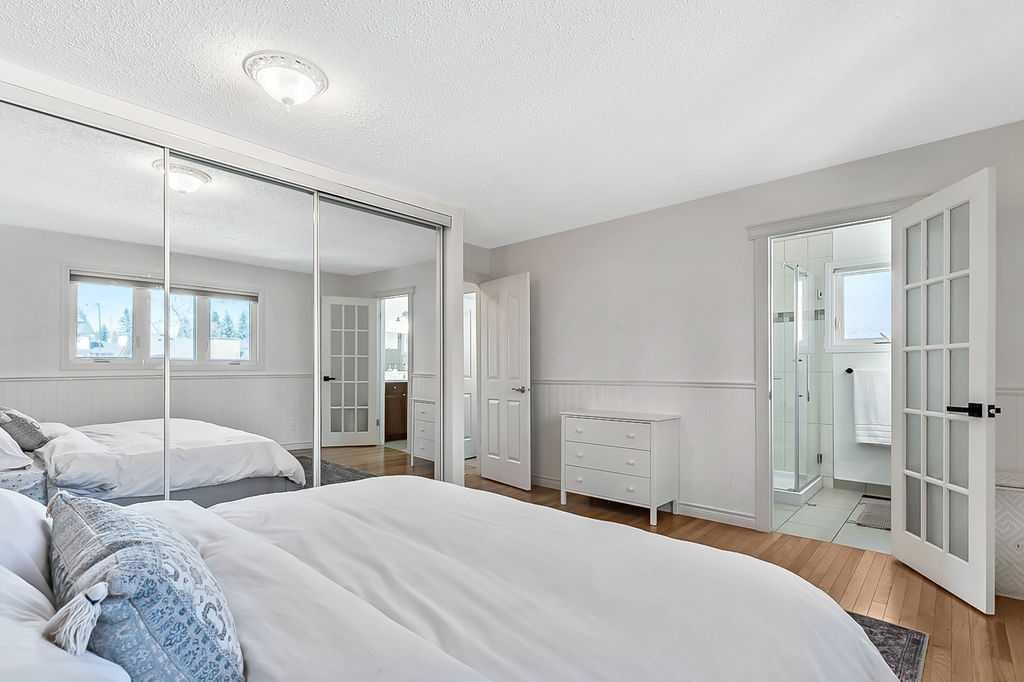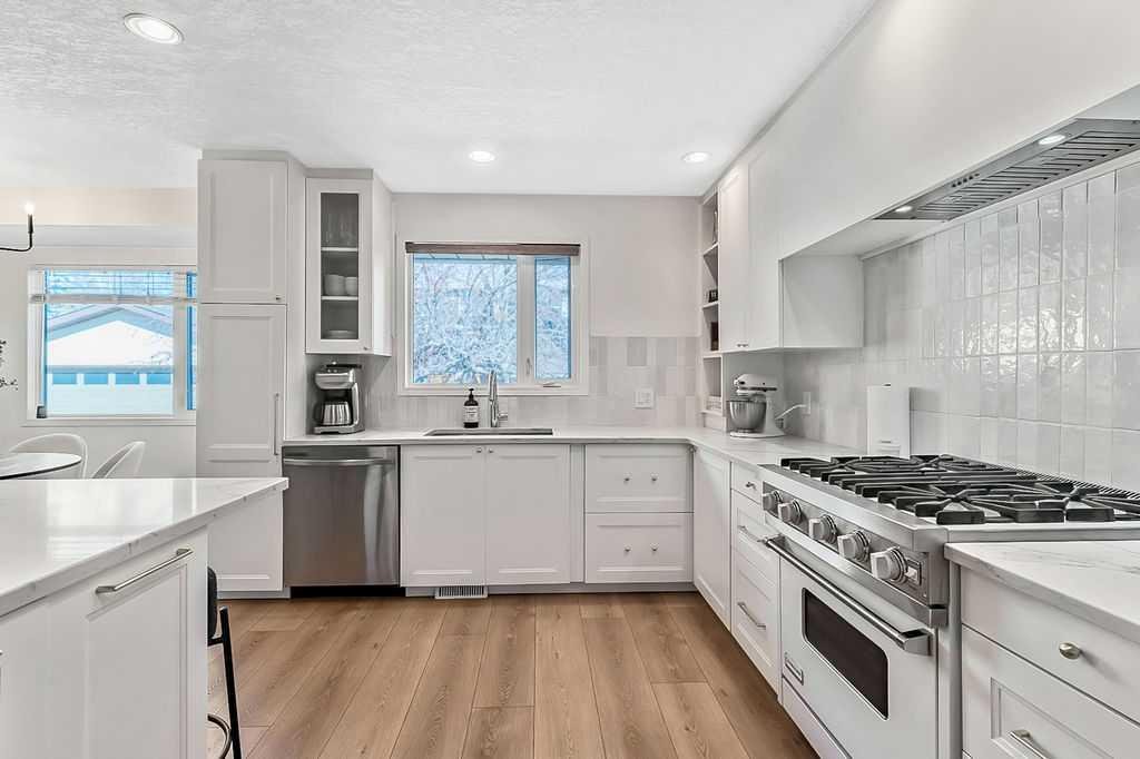 BEAUTIFULLY RENOVATED, WELL MAINTAINED 2 storey split on a quiet cul-de-sac in a premier spot in desirable Woodlands! Situated on a large, private lot (over 6300 sq ft) this home is located in a fantastic location – just a short walk down a path to Fish Creek Park, close to schools, shopping, transit and the ring road. The home offers over 2300 sq ft of developed living space with 4 bedrooms (one on the main floor that could be used as an office or den), 2 four piece bathrooms on the upper level and a two piece bathroom on the main level. The main floor was tastefully upgraded in 2023 with luxury vinyl plank flooring and a gorgeous spacious kitchen featuring a massive island, new refrigerator, new beverage fridge, new dishwasher & a classic Viking gas range. A well thought out floor plan provides perfect spaces for entertaining in either the kitchen, expansive main living room or in the cozy lower family room complete with a wood fireplace (which has a heatilator insert with an optional fan that can heat the home) & garden doors opening up onto the spacious deck & lovely back garden. A mudroom/laundry room which holds the stacked washer and dryer completes this level. The second level has hardwood throughout its 3 bedrooms. The primary bedroom has lots of storage with closet organizers and has a 4 piece ensuite. The other 2 bedrooms are spacious with one having a murphy bed for flexibility. The lower level offers an expansive recreation room and a separate storage area. There is a new hot water tank (2022), hook up for a Kinetico system, humidifier and water softner. The oversized heated double garage (with work bench!) is situated facing the street and is at the end of a side driveway that can accommodate extra vehicles. New shingles for the garage were installed in 2024. This home is a perfect blend of style, space and functionality and is move in ready. Rarely do homes with renovations of this kind come on the market in this desired community!