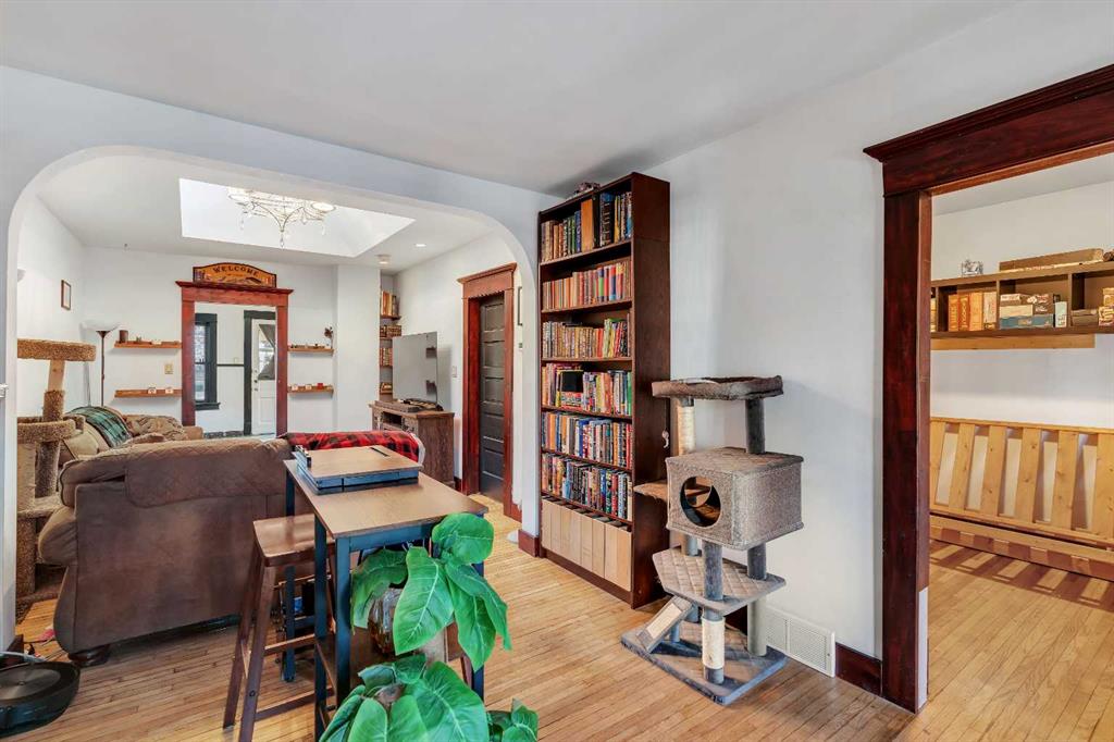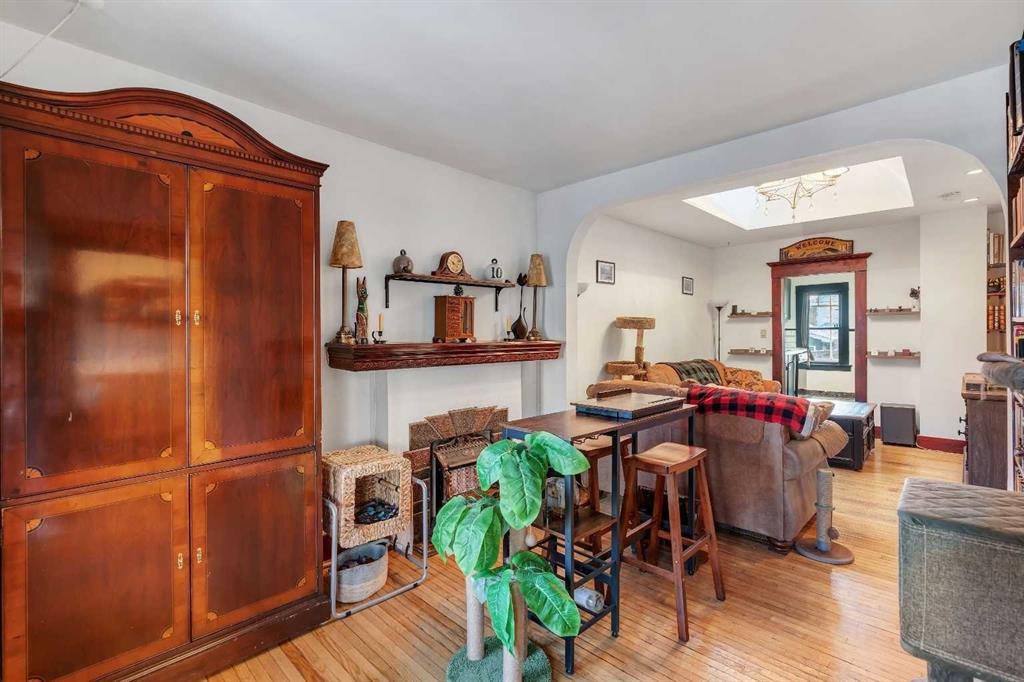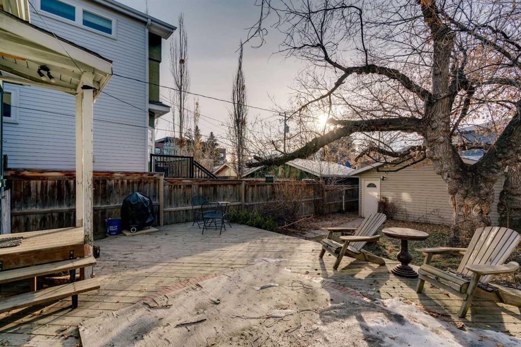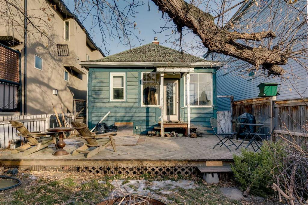 LOCATED IN MARDA LOOP — RARE DETACHED CHARACTER HOME FOR UNDER $600K! This is your opportunity to own a detached early-1900s CENTURY HOME in the heart of Marda Loop—an increasingly rare find under $600,000, a block away from a neighbourhood park. This home sits on a 25’ x 125’ R-C2 lot in one of Calgary’s most desirable neighbourhoods which makes it an excellent opportunity for redevelopment potential. Heading inside, a fully enclosed front porch greets you – bright, welcoming, and perfect as a sunroom or mudroom through Calgary’s changing seasons. Inside, the home features original hardwood floors, and a preserved fireplace that anchors the cozy living space. Skylights over the living area bring in natural light and enhance the home’s unique charm. The main floor layout is functional and thoughtfully arranged, offering two bedrooms, a full bathroom, and a sunny south-facing den/office—ideal for working from home or a quiet reading nook. The kitchen is bright and practical, with ample cabinetry, a gas stove and an adjoining breakfast nook, plus convenient access to the backyard. Take the party outside onto the large back deck, & private fully fenced-in yard complete with mature trees, perfect for those summer BBQs & dog-lovers! Downstairs, the full unfinished basement provides excellent storage today and clear future potential, whether you plan to renovate, expand, or hold as a long-term investment. The cherry on top is a detached double garage with lane access—a highly valuable feature in this location & no condo or HOA fees to go along with it. Just down the street is the Marda Loop Community Association which is home to the South Calgary Outdoor Pool, community garden, tennis courts, playground, Fire Station, pump track & a Calgary Public Library. Plus, enjoy true walkability to Marda Loop’s most popular cafes, restaurants, and shops—including Phil & Sebastian, Analog Coffee, Blush Lane Market, and Village Ice Cream—along with nearby parks, schools, quick access to 17th Ave, and an easy commute downtown. Jumping in the car: Downtown is a 12 min drive (5.6KM), Airport is a 25 min drive (19.3KM), & Banff is a 1hr 27 min drive (132KM).