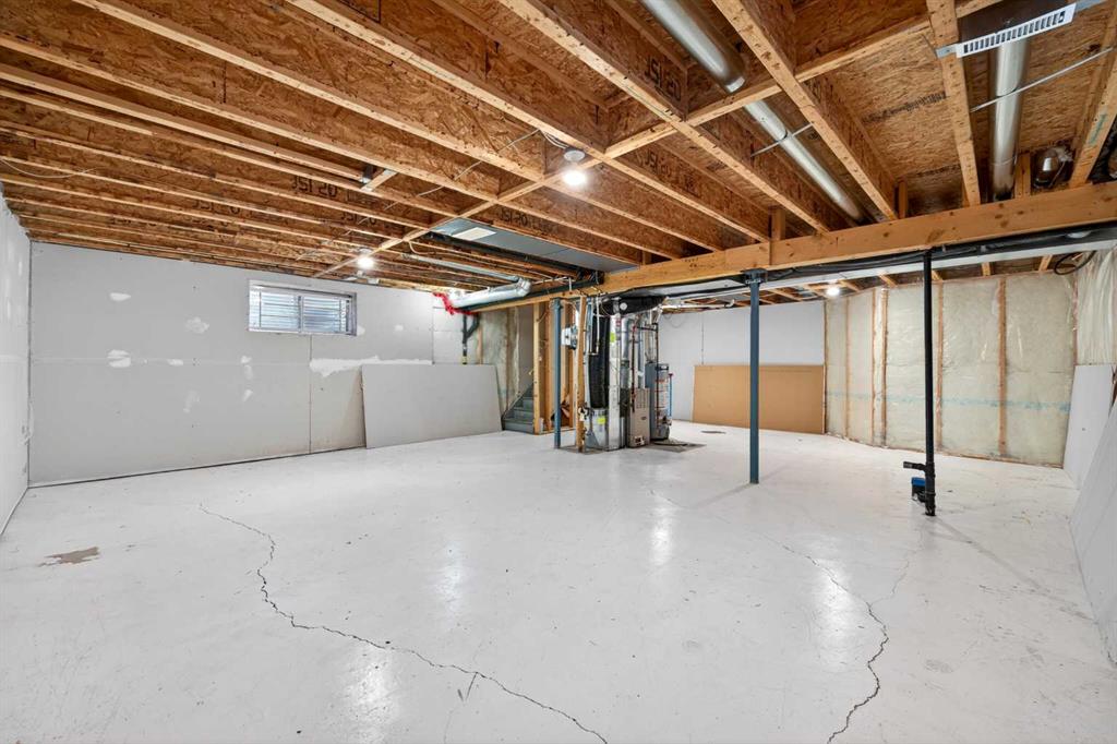 The unfinished basement with bathroom rough-in awaits your imagination and development, offering excellent potential for future living space.
