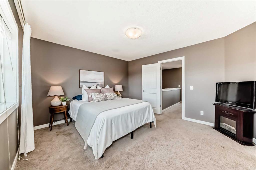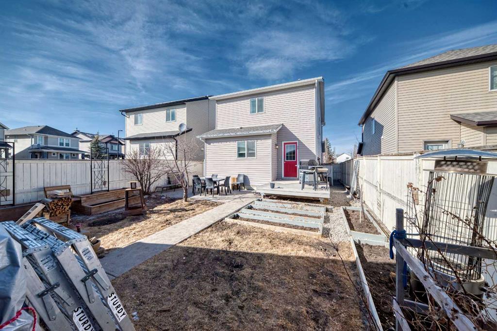 Hello, Gorgeous! Welcome to this charming two-storey home located in the family-friendly community of Morningside, Airdrie. Situated on a quiet street directly across from a greenspace and playground, this home offers a functional layout and convenient access to nearby schools, shopping, and pathways. The main floor features hardwood flooring, an open-concept living and dining area, and a kitchen with granite countertops, a central island, and stainless steel appliances. A 2-piece bathroom completes the main level. Upstairs includes three bedrooms and two full bathrooms, including a primary bedroom with a walk-in closet and 4-piece ensuite. The basement is partially finished with framing in place for two additional bedrooms and a bathroom. The backyard includes a variety of fruit trees and garden space, along with a double detached garage. This home is within walking distance to schools, parks, and amenities, with easy access to Deerfoot Trail for commuting.