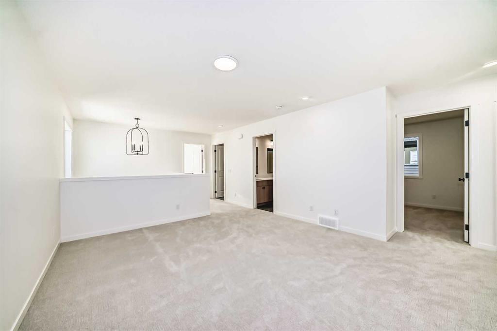 Move in today. This brand-new Sierra R by Daytona Homes delivers 2350 square feet of finished living space with a smart, functional layout that actually works for families. The main floor opens with a bright foyer and front den, ideal for a private office or quiet flex space. The kitchen is clean, modern, and efficient, finished with a central island, upgraded lighting package, and a walk-through pantry that keeps clutter out of sight. It flows directly into the dining nook and great room, where oversized windows and a gas fireplace create a warm, open main living zone buyers want. Upstairs, the layout hits every need. The primary suite is large and well-designed with a walk-in closet and a polished ensuite featuring a freestanding tub, walk-in shower, dual vanities, and contemporary finishes. Three additional bedrooms, a full bathroom, second-floor laundry, and a bonus room complete the upper floor, giving families the space separation they rely on day to day. The unfinished basement features a 9-foot foundation height and a practical layout ready for future development. The exterior shows strong curb appeal with a modern farmhouse elevation, smartboard detailing, stone accents, and a full double attached garage. Located in Southbow Landing, Cochrane’s fast-growing community, this home offers quick access to future parks, walkways, local amenities, and the Bow River. With today’s clean modern finishes, brand-new systems, and immediate occupancy, this is a turnkey opportunity in a community built for long-term value.