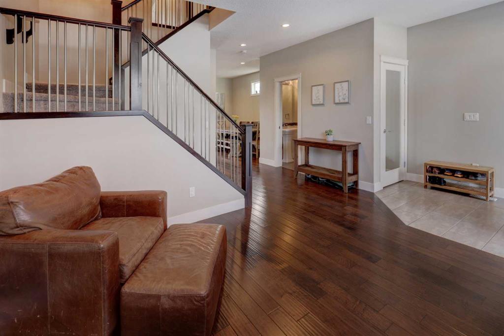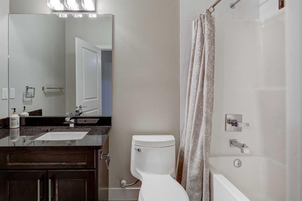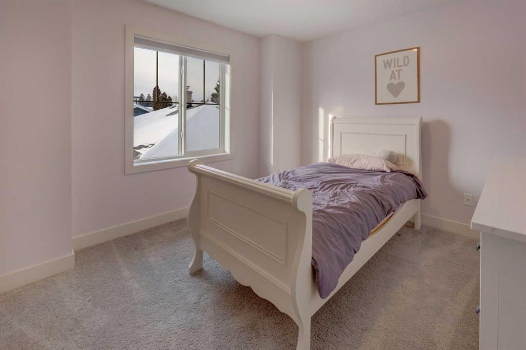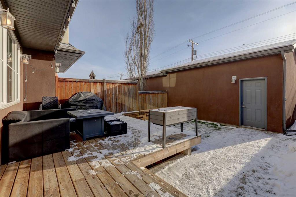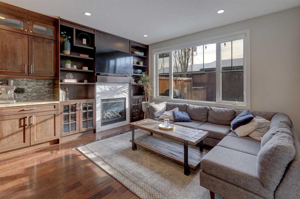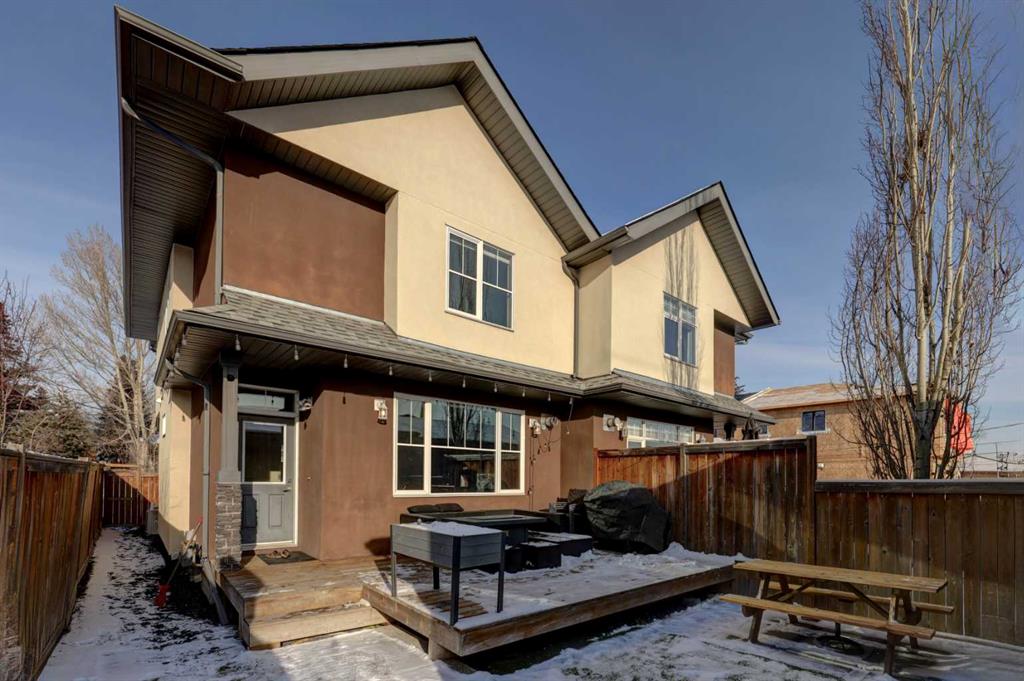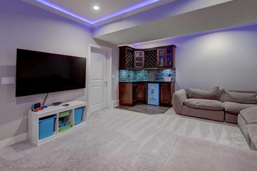 his stunning home offers a very bright & open floor plan, thoughtfully designed for both everyday living & entertaining. The inviting living room features a cozy fireplace & a large window that fills the space with an abundance of natural light. The island kitchen is a true showpiece, showcasing granite countertops, soft-close cabinetry, corner pantry & upper & under LED lighting. High-end stainless steel appliances, including the washer & dryer, complete the space with both style & functionality. The spacious primary suite is a private retreat, featuring a custom walk-in closet with built-in organizers & a luxurious ensuite with a jetted jacuzzi tub & a beautifully tiled rain shower. Two additional well-sized bedrooms & convenient upper-level laundry complete the second floor. The fully developed basement extends the living space with an additional bedroom boasting a large walk-in closet, a full bathroom, & an impressive theatre room with a wet bar—perfect for movie nights or hosting guests. Outside, the south-facing backyard is ideal for enjoying the sun, offering a large deck & an exposed aggregate concrete patio. Additional highlights include air conditioning & a drywalled, heated double detached garage. All this with easy access to downtown & all amenities – SAIT, University of Calgary, shopping, coffee shops, restaurants, public transportation & so much more! You’ll love living here!!!