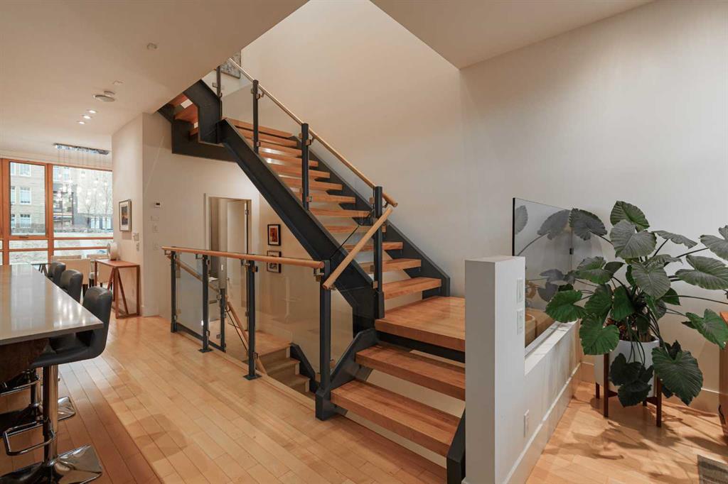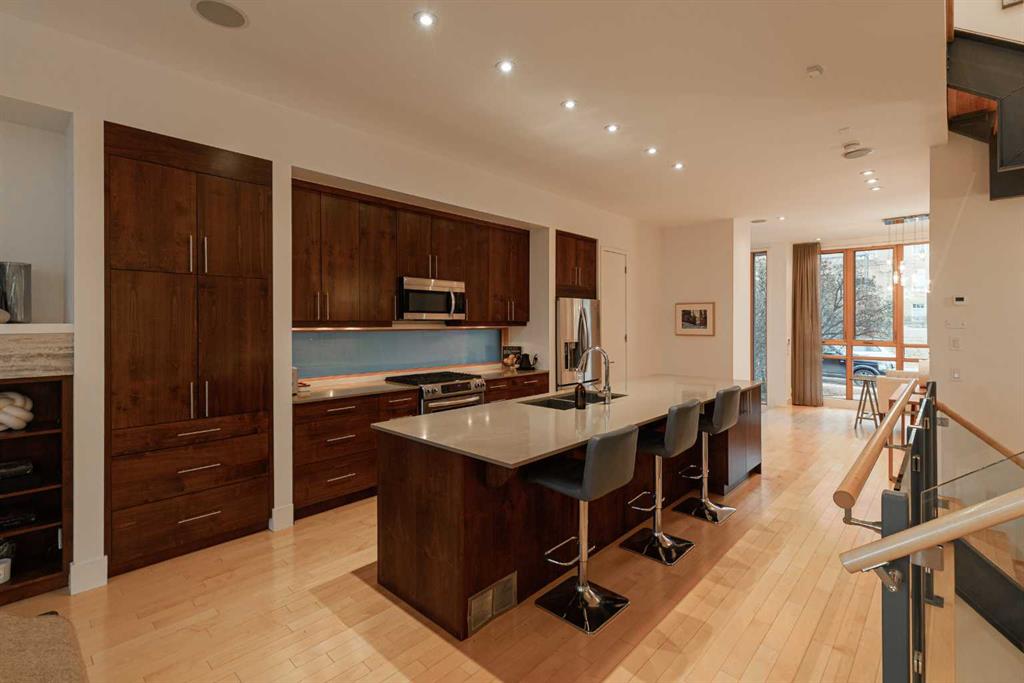 Welcome to an exceptional architectural collaboration by Gibbs Gage Architects and McIntyre Bills Interior Design, ideally located in the heart of vibrant Marda Loop and overlooking the historic King Edward School, now home to the inspiring cSPACE Arts Campus. This is inner-city urban living at its finest. Enjoy a truly walkable lifestyle—steps to Marda Loop’s best shops, restaurants, cafés, and bars, and within easy walking distance to the Garrison Curling Club, Flames Community Arenas, Glencoe Club, and Sandy Beach. Just minutes to downtown Calgary with quick access to Crowchild and Glenmore Trails. From the moment you arrive, the home impresses with striking curb appeal and evident pride of ownership throughout. Step inside to an open-concept main level accented by gleaming hardwood floors and refined contemporary finishes. The dining area is perfectly positioned to take in unobstructed views of the iconic limestone King Edward School—an architectural backdrop few homes can offer. The chef’s kitchen is both beautiful and functional, featuring a large central island, sleek contemporary cabinetry, and stainless steel appliances, seamlessly flowing into a warm and inviting living room anchored by a natural gas fireplace. Step outside to your south-facing balcony, the perfect spot for summer dinners and sunset views. Upstairs, you’ll find three generously sized bedrooms, including a stunning primary retreat with a spa-inspired ensuite and large walk-in closet. Two additional bedrooms—one ideal as a home office—both enjoy majestic views of the historic school grounds. Descend the striking floating staircase to the fully finished walkout basement, an award-winning design filled with natural light from expansive showcase windows. This level offers a spacious family room with a second natural gas fireplace, a large fourth bedroom, a full bathroom, and a dedicated workout room—perfect for modern living. Outside, enjoy warm summer evenings in your private backyard, complemented by a double detached garage. This is a rare opportunity to own a thoughtfully designed, architecturally significant home in one of Calgary’s most sought-after inner-city communities. Inner-city living at its absolute best. Call your favourite REALTOR® today to book your private viewing.