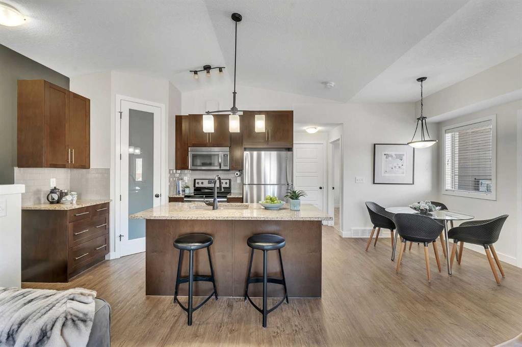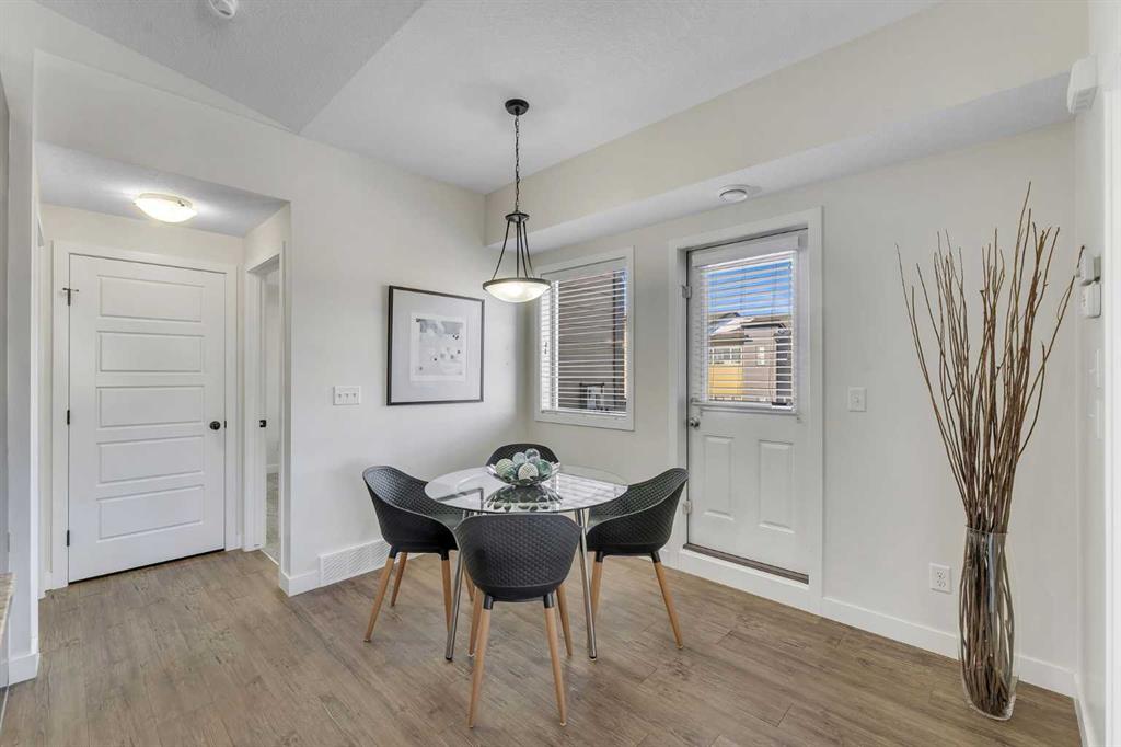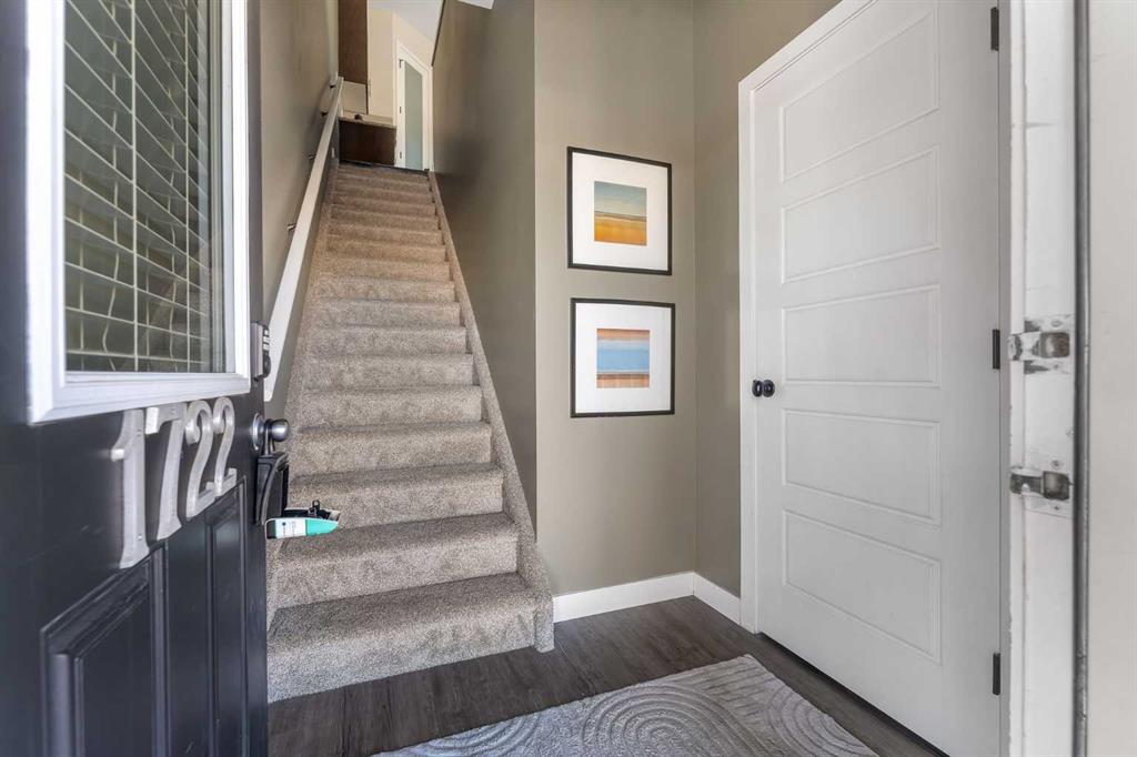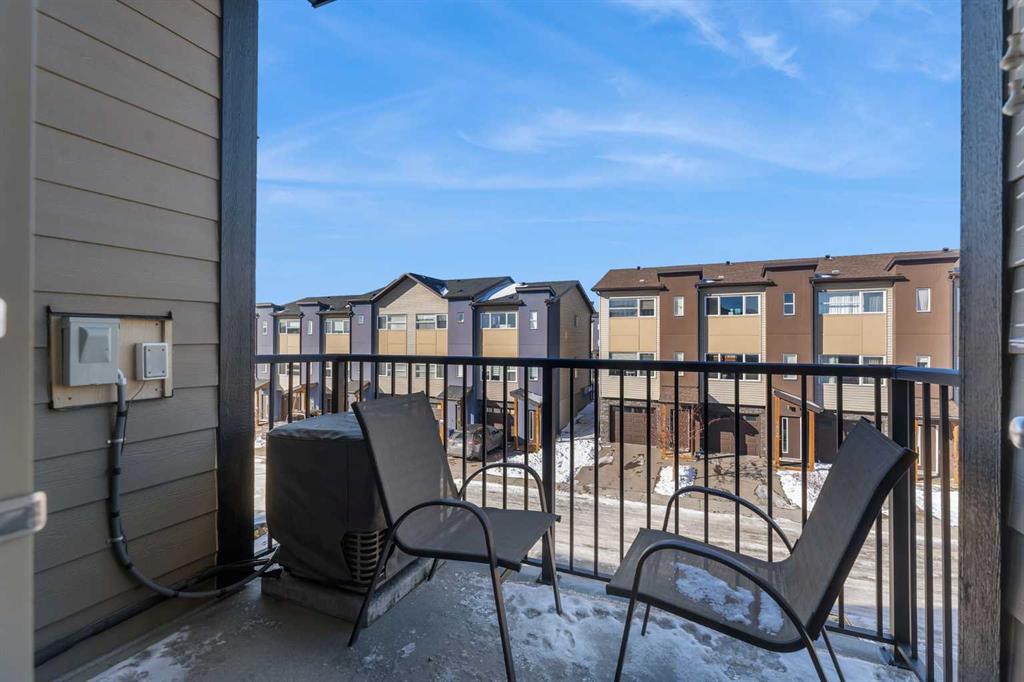 OPEN HOUSE THIS SUNDAY, MARCH 15TH, 1-3 PM! Ok, this townhome is the loveliest. But it’s not just the pretty that counts, the functionality matters too, and this unit comes with TWO parking stalls (one assigned & 1 titled) and central air conditioning! Located on the top level, it offers an abundance of windows and a west-facing deck. Inside, the rich vinyl floors and new carpet give it a modern feel. The kitchen has a central island, a corner pantry, and granite countertops. The primary suite is spacious with a walk-through ensuite that includes an updated vanity and a large shower and leads to the walk-in closet. There is a second bedroom, a 4-piece bathroom, in-suite laundry, and storage within the unit (see front closet on the floor plan!). This is a pet-friendly complex (subject to approval) with a well-run board. Great Airdrie location in a quiet neighbourhood. Immediate possession available.