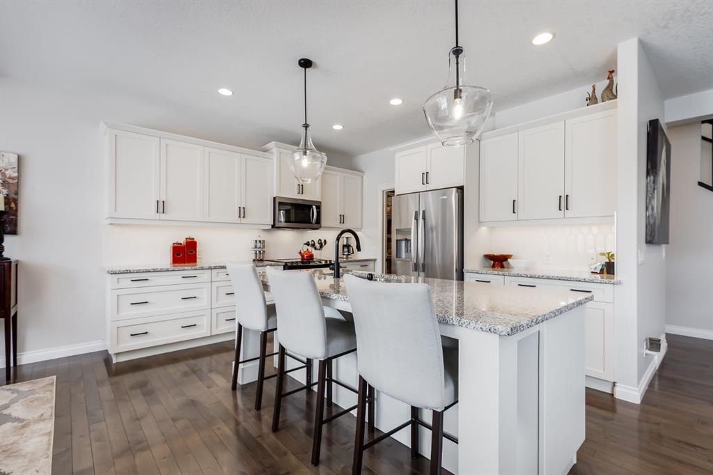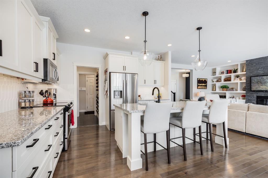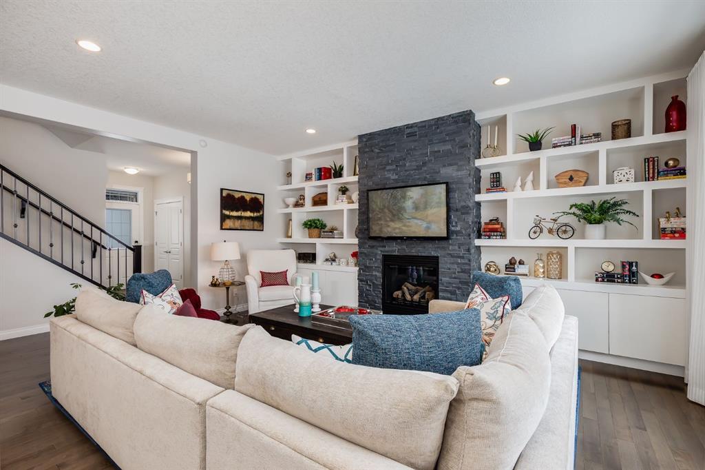 OPEN HOUSE SUN MAR 15th 12:00 – 2:00 pm ** This Stunning Executive Style Home has over $50,000 of Recent Updates that elevate the Decor and Functionality making it Unique and Gorgeous. This Home exudes PRIDE OF OWNERSHIP as it is so well cared for. When you arrive, you are welcomed into the spacious foyer with a large seating bench and the Hardwood Flooring that leads to the Spectacular Living Room that features a Custom Built Wall Unit that surrounds a beautiful Fireplace with Stone Wall. The Wall Unit has amazing Shelves for you to showcase your items and books plus extra cabinetry for storage. The Dream Kitchen has Ivory Coloured Cabinetry with Undermount Lighting, Lots of Pot and Pan Drawers, Upgraded Appliances, Upgraded Lighting, Granite Countertops and an Upgraded Island. The Pantry walks through to the Mudroom that has additional storage and lots of hooks for backpacks and coats. The Dining area can host a larger table and opens to the Large Deck. The Staircase with upgraded metal railing leads to the Bonus Room and Upper Laundry Room. The Primary Bedroom can host a King Suite and has a Ensuite with Dual Vanities, Soaker Tub and Shower Stall. There is New Carpets on the Upper Level. The Lower Level has been Renovated with a Fantastic Wall Unit in the Recreation Room with tons of Cabinetry for Storage, a Beautiful Electric Fireplace, and an incredible Wet Bar with Wine Fridge, Undermount Lighting, Desk area, and more storage. The 4th Bedroom has a Custom Built in Closet and Modern 3 pc Bathroom with Shower Stall complete the Lower Level. This Home also has a Water Softener, Freezer, and Upgraded Window Coverings. The rear of the home has a Large Yard for the kids to play and an oversized deck perfect for you to enjoy all summer long. Located close to Nose Creek Elementary School, pathways and easy access to transportation and amenities. This Stunning Home is ready for your family to make it yours.
