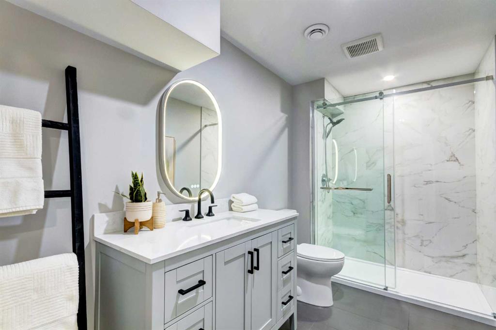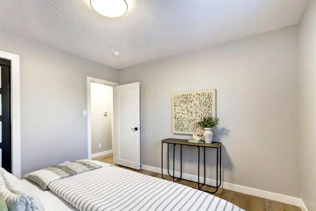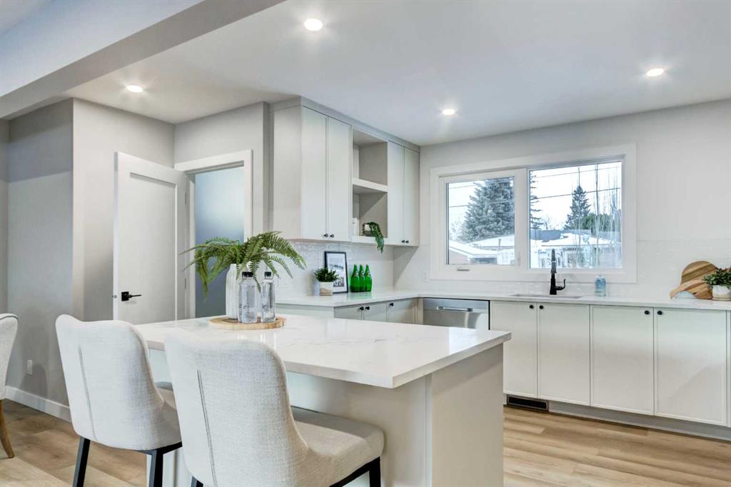 OPEN HOUSE Sat & Sun! Welcome to this stunning, fully renovated bungalow every detail has been thoughtfully reimagined for modern living. With designer finishings throughout, including new luxury vinyl plank flooring on the main level and brand-new carpet on the fully finished lower level. Fresh paint, updated trim, and south-facing windows enhance the home’s bright, inviting feel. This stunning designer kitchen is bright, beautifully curated showcasing micro-shaker cabinetry, sleek, expansive quartz countertops, and spacious eat-up centre island with additional storage, the perfect blend of style and function for everyday living or entertaining. Flooded with natural light from the oversized picture window, framing peaceful backyard views and creating an airy, inviting atmosphere. Finished with matte-black hardware, stainless steel appliances, elegant beveled subway tile backsplash, this kitchen offers a sophisticated modern aesthetic with undeniable warmth and luxury. Flows effortlessly into the adjoining living areas, making it ideal for both everyday living and memorable hosting. The front living room and adjoining dining room are filled with natural light and showcase stunning downtown views, creating an elevated and welcoming space to relax or entertain. The main floor offers a generous primary bedroom along with two well-appointed front bedrooms, each designed with comfort and versatility. The fully renovated bathroom impresses with a quartz-countertop vanity, stylish black faucets and hardware, a designer LED backlit mirror, and a tub with upgraded shower fixture set against textured contemporary tile. The fully finished basement provides exceptional additional living space with brand-new windows, a legal spacious 4th bedroom, a versatile flex room ideal for a home gym or office, and a large recreation area perfect for movie nights or a kids’ play space. The beautifully redesigned bathroom feels like a boutique hotel spa, showcasing a luxurious walk-in shower with floor-to-ceiling marble-style tile, sleek glass doors, and premium fixtures. The quartz-countertop vanity pairs perfectly with matte-black hardware and a striking LED backlit mirror, creating a sophisticated, modern retreat with effortless style. The impressively clean mechanical room reflects the extensive renovation throughout the home, featuring updated plumbing, electrical, and HVAC systems. The brand-new high-efficiency furnace, 50-gallon hot water tank, and clear utility access, provides peace of mind and long-term reliability. One of the property’s standout features is the private backyard oasis—a generously sized yard with a clean, open layout ideal for families, pets, or anyone wanting room to relax and enjoy the outdoors. Enjoy peace of mind with a comprehensive renovation from top to bottom. This exceptional bungalow is truly move-in ready, offering modern luxury, thoughtful upgrades, and a serene outdoor setting. Don’t miss your opportunity to make this beautiful home your own.
