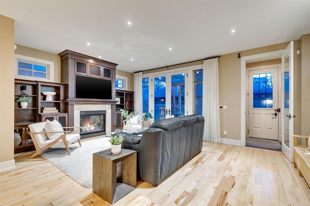 A true inner city gem in the heart of Hillhurst. This exceptional home offers a rare blend of timeless elegance, quality craftsmanship, and standout curb appeal, just steps from Kensington Village, Freshco, the Bow River pathways & downtown. From the moment you enter, this home makes an impression with its grand foyer featuring a curved wooden staircase, skylight, and expansive windows that fill the space with natural light, all enhanced by its charming location across from the lawn bowling park. Located just off the homes’ entrance, you’ll find a private office with French glass doors, coffered ceilings, and custom built-ins that overlook the peaceful green space, ideal for those working from home. The main living area is designed for both entertaining and daily living. Rich and timeless hardwood floors lead into a stunning chef’s kitchen featuring high end panelled appliances, including a Wolf 6 burner gas range, Sub-Zero refrigerator, custom built cabinetry, and a large island ideal for gatherings. The adjoining dining area offers an elegant space to host, while the living room centres around a beautiful stone fireplace and opens seamlessly to the sunny south facing backyard. An enclosed mudroom with built-ins offers both style and practicality, making it easy to come and go from the garage while keeping everything organized. Upstairs, you’ll find three spacious bedrooms and a well appointed laundry room. The primary suite is a true retreat, complete with downtown views, a two way fireplace, and a spa-inspired ensuite featuring a deep soaker tub, steam shower, dual vanities, and a custom walk-in closet. The fully developed lower level adds even more versatility, with a cozy family room, games area, wet bar, and a beautifully designed wine room. A fourth bedroom, full bathroom, and dedicated home gym complete this level, offering space for guests, relaxation, and wellness. Outside, enjoy a private, south exposed yard with a pergola-covered deck, two gas lines for outdoor entertaining, and low-maintenance landscaping, all set against an exterior finished entirely in aggregate. Additional features include air conditioning, in-floor heating in the basement, foyer, and bathrooms, a gym-sized steam shower in the basement, a new washer and dryer, custom millwork, 9ft doors, vaulted ceilings, hidden safe room, and an oversized heated garage. Located in one of Calgary’s most sought after communities, this home offers unmatched walkability and lifestyle, just moments from shops, restaurants, boutiques, schools, hospitals, and the river pathways. A rare opportunity to own a truly exceptional home in Hillhurst.