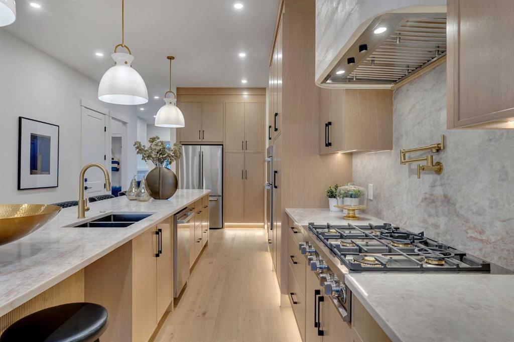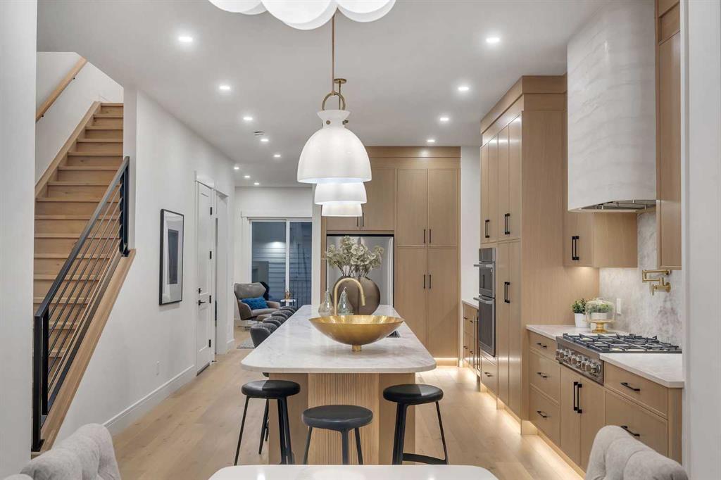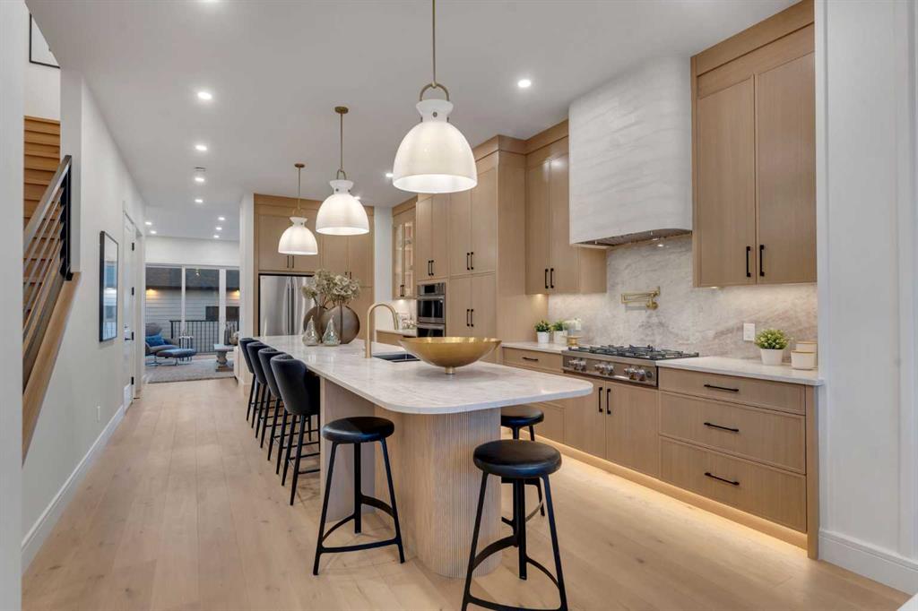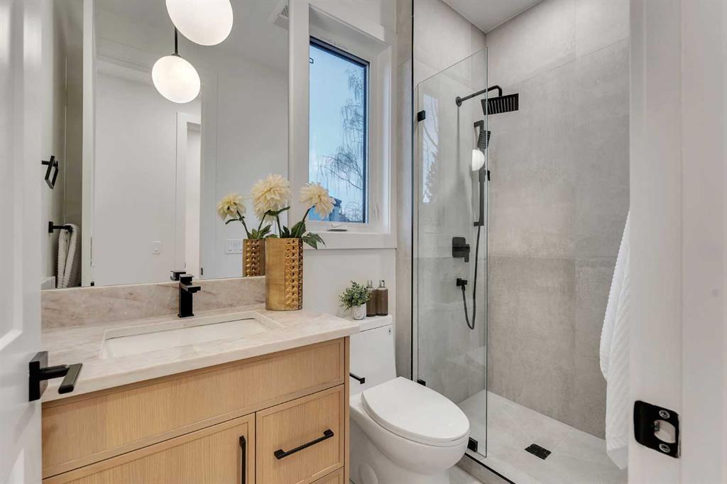 Welcome to the HEART of desirable Capitol Hill. This newly built two storey home pairs inner city convenience with family-first design. It offers just under 2,900 sq ft of living space that balances entertainment and residential areas to create an exceptional home. A key feature is a developed basement legal suite that is self-contained and configured to provide both privacy and income potential. The basement can be a two-bedroom rental or private accommodation with its own entry. The main floor impresses with 10′ ceilings and large windows bringing abundant natural light. The kitchen is designed for cooking and conversation: BERTAZZONI gas cooktop, Taj Mahal quartzite countertops & full backsplashes and continuous cabinetry that supports efficient workflow. A defined separation between the kitchen and the living room at the rear creates clear zones for meal prep and relaxing. The living room anchored by a gas fireplace, while large sliding doors open to the rear deck. The outdoor space is fully fenced and professionally landscaped, offering a low maintenance setting for kids, pets and summer entertaining. Upstairs is organized for privacy and daily ease. The vaulted primary retreat includes a spacious walk-in closet and a spa like ensuite with steam shower, freestanding tub, dual vanities and heated flooring for added comfort. Two additional well sized bedrooms are served by full baths on the level and a dedicated laundry room that smooths morning routines. Generous closets and clear sight lines add practical value throughout. The two bedroom lower legal suite is self-contained with its own entrance, full kitchen, full bath and laundry, ideal for rental income or extended family. Sound-conscious detailing and smart mechanical placement maintain separation and comfort for both households. Finishes include engineered hardwood on the main and upper floors and durable LVP in the basement. The double detached garage is designed for versatility. Beyond parking, the space adapts easily to secure storage or hobby use, blending functionality with everyday utility. Location is the story. Capitol Hill is a mature inner city neighbourhood known for tree lined streets, strong walkability and a genuine sense of community. Enjoy close access to Confederation Park’s pathways and sports fields, nearby cafĂ©s and local shops, and straightforward connections to SAIT, the University of Calgary and downtown for commuting and weekend plans. Top schools and convenient transit add to daily ease. This property delivers thoughtful construction, flexible living and a location that holds long-term appeal and value. Move in ready now!