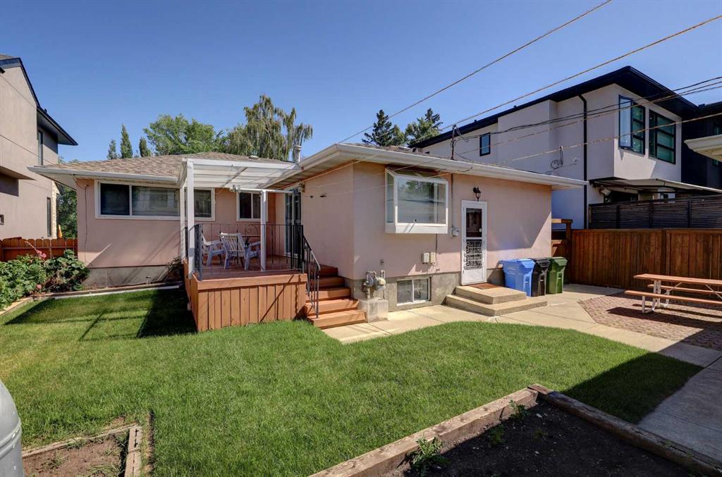 Solid Bungalow almost 1400 sq. ft. Located in the desirable community of Altadore surrounded by gorgeous homes. This Prime Location is perfect for as a Builder or Renovator Opportunity. Nice, quiet, wide street. with a South-facing backyard, mid-block location. Only one block from the park and walking distance to River Park and Glenmore Athletic Park. Open layout with two spacious bedrooms upstairs and one downstairs, plus two fireplaces. Oversized 24×22 garage.