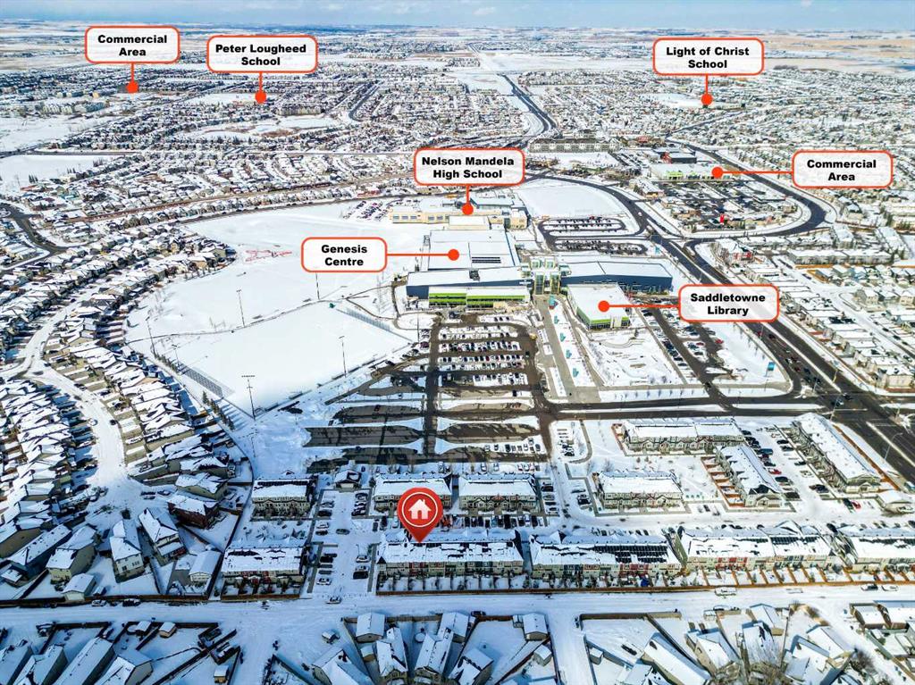 Welcome to this wonderful 2-storey townhouse ideally located in a highly sought-after community! Just steps from the Genesis Centre, Nelson Mandela High School, and the Saddletowne LRT Station, this home offers exceptional convenience with quick access to schools, transit, shopping, restaurants, and everyday amenities—perfect for families, first-time buyers, or investors. Proudly owned by the original owners, this home has been well cared for and is in move-in ready condition. Step inside to a bright and open-concept main floor featuring a spacious living room filled with natural light, a dedicated dining area, and a well-appointed kitchen complete with stainless steel appliances, ample cabinetry, and plenty of counter space—perfect for both daily living and entertaining. A convenient 2-piece bathroom completes the main level. Upstairs, you’ll find a comfortable and functional layout with a generous primary bedroom featuring a private 4-piece ensuite, along with two additional bedrooms and another full 4-piece bathroom—ideal for growing families. The fully finished basement was professionally developed by the builder, offering peace of mind and seamless design. It features two additional bedrooms and a 4-piece bathroom, providing extra living space for extended family or guests. Step outside to enjoy your private, fenced, south-facing backyard, perfect for relaxing, gardening, or hosting summer gatherings. This is a fantastic opportunity to own a well-maintained, original-owner home in a prime location with incredible accessibility. Book your private showing today—homes like this don’t last long!