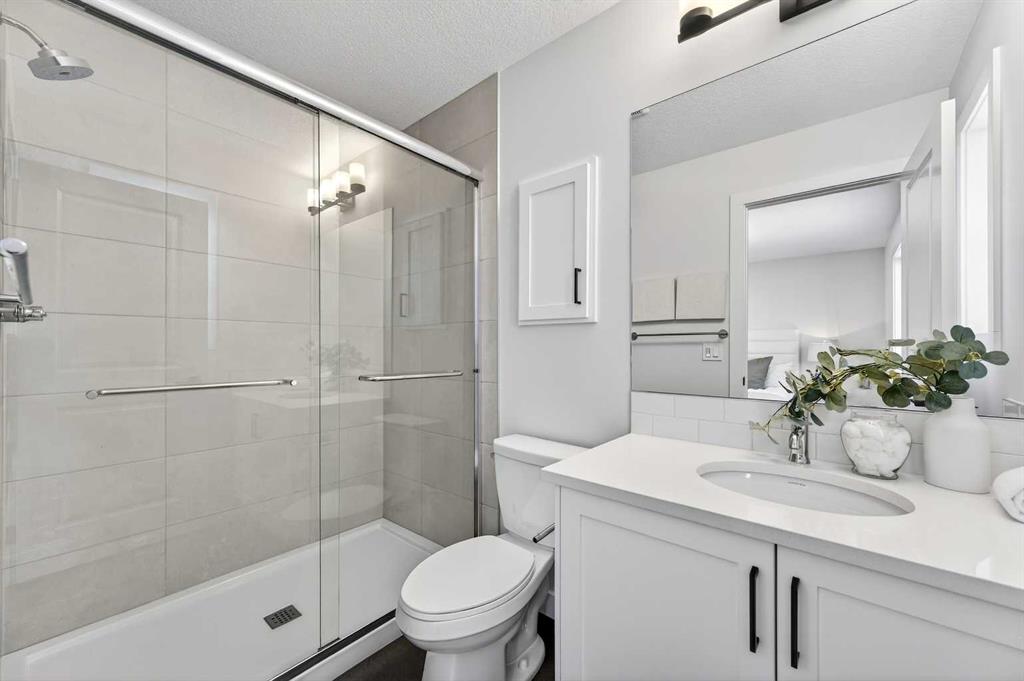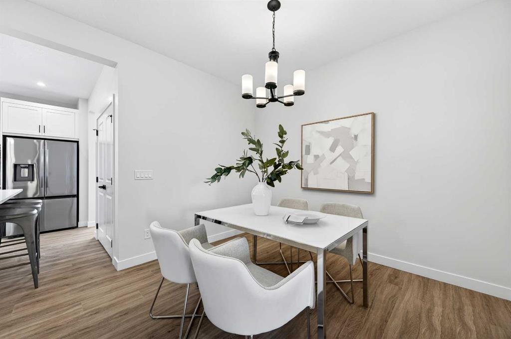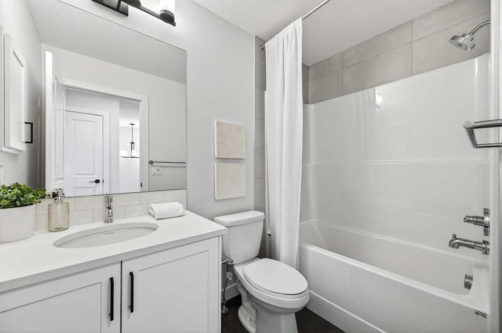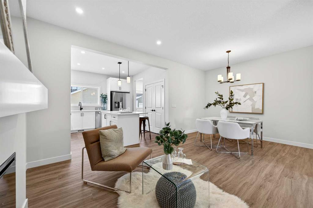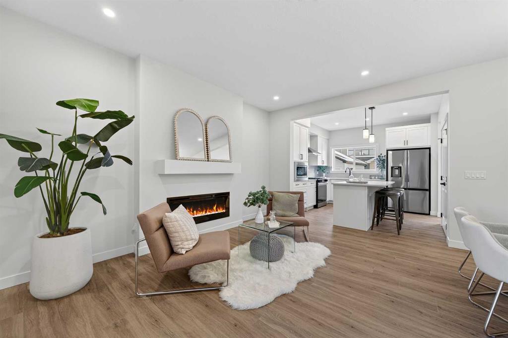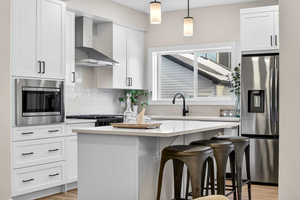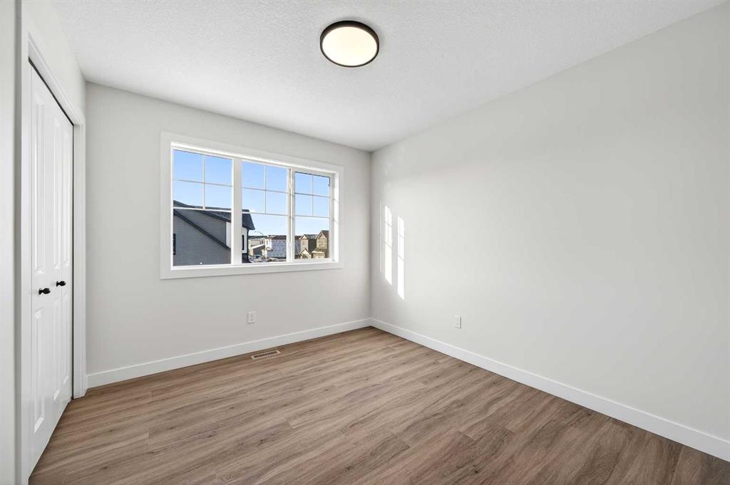 Welcome to The Amber by Genesis Builders, a beautifully designed two-story home offering 1,515 sq. ft. of comfortable living space with an additional unfinished basement with legal basement suite rough-in. The main floor features an open-concept layout with a front flex room, bright great room, and a modern kitchen complete with a central island, quartz countertops, flat-panel cabinetry, and a full stainless steel appliance package. It’s a space that feels inviting and functional, perfect for daily life or entertaining guests. Upstairs, you’ll find three bedrooms, a full bathroom, and a conveniently located laundry area. The spacious primary suite includes a walk-in closet and a private ensuite designed for everyday comfort. This home is equipped with smart-home features including a Ring doorbell, Weiser Smart Code lock, Ecobee thermostat, and Amazon Echo Show. Additional highlights include 9-foot main floor ceilings, upgraded railing, a BBQ gas line, rough-in gas line for the range and a 10′ x 10′. The exterior showcases Hardie board siding with Smartboard trim and durable vinyl accents. Located near future parks, pathways, and community amenities, The Amber combines modern design, quality craftsmanship, and lasting value in the heart of Keystone Creek. *Photos are representative and may not reflect the exact finishes of this home. Mood board for colours and selections are in the photos. Rms calculated from builder blueprints provided by the builder. Possession is tentative and scheduled for September 2026.