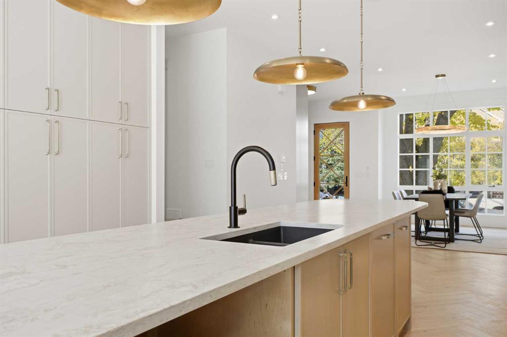 Welcome to a home that truly defines luxury living in Calgary’s prestigious Altadore community! Built by renowned Alliance Custom Homes, this 3-STOREY residence combines exceptional craftsmanship w/ thoughtful design to create a space that’s as functional as it is beautiful. Located on a desirable street in Altadore, this home is surrounded by stunning infills that create a cohesive & upscale streetscape! From the moment you arrive, the home’s timeless architecture & clean lines exude elegance. Inside, you’re greeted by an abundance of natural light pouring in through oversized windows, highlighting the soaring ceilings & open layout. The heart of the home is the kitchen – a true showstopper for culinary enthusiasts. It’s equipped w/ professional-grade appliances, including a gas cooktop & built-in wall oven, along w/ a sleek quartz island that serves as a workspace & gathering spot. Custom, full-height cabinetry offers plenty of storage, while a butler’s pantry keeps everything organized & out of sight w/ a convenient prep sink. The main floor flows seamlessly into a spacious living room anchored by a sleek gas fireplace & accented by full-height sliding glass doors leading to the wood deck & landscaped backyard. Whether you’re hosting a formal dinner in the elegant dining area or enjoying a quiet evening at home, the main floor delivers on both style & comfort. A thoughtfully designed mudroom w/ built-in storage adds practicality to the mix, as does a bright pocket office w/ a glass wall, making day-to-day living effortless. Upstairs, the primary suite is a luxurious retreat w/ a recessed 11-ft ceiling in front of the ceiling-height windows! The spa-inspired ensuite feels like your own private getaway, featuring a soaker tub, an oversized tile shower, & a custom vanity w/ dual sinks. Dual walk-in closets are equally impressive, w/ built-ins designed to keep everything perfectly organized. The other side of this level features two good-sized secondary rooms w/ a modern 4-pc bath, perfectly spacious for growing kids! The modern conveniences continue up to the third floor, w/ a third bedroom w/ a walk-in closet, a 4-pc main bath, a large storage room, & every entertainer’s dream – a full wet bar w/ quartz island! A private balcony is perfect for summer get-togethers & quiet evenings w/ family. The living space continues into the finished basement w/ a large rec space w/ a custom wet bar, a home gym area, & a fourth bedroom w/ direct access to a 4-pc bath – ideal for guests or a live-in nanny. Located in one of Calgary’s most vibrant communities, this home isn’t just a place to live – it’s a lifestyle. Altadore is known for its mature tree-lined streets, close-knit community feel, & access to some of the city’s best amenities. From top-rated schools to boutique shops, trendy cafes, & the stunning green spaces of River Park, everything you need is just steps away. This home is the perfect blend of sophistication, comfort, & convenience!
