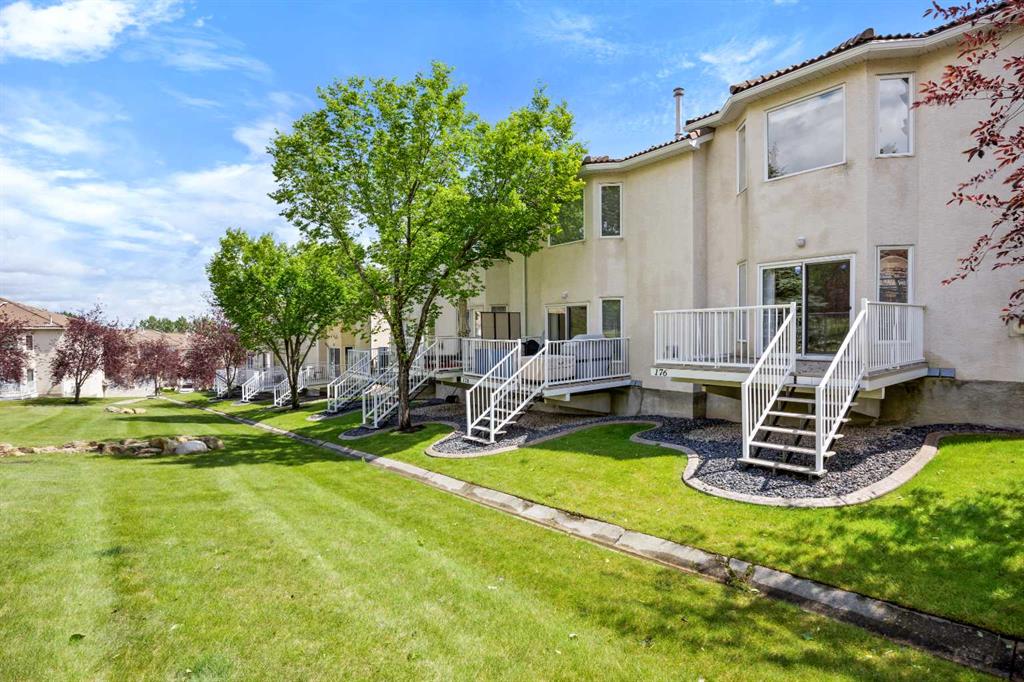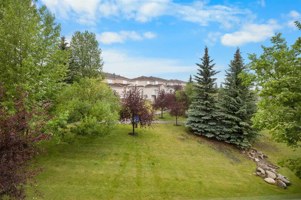 Located in the prestigious community of Hamptons, this well-maintained and recently upgraded end-unit 2-storey townhouse offers a functional layout, peaceful green space views, and convenient access to nearby amenities. Upgrades include brand-new LVP flooring on the Main Level, new carpet on the upper-level, and fresh paint throughout the entire home. The Main Level features a spacious Living and Dining Room combo with a cozy gas fireplace, leading to a deck that overlooks a landscaped green space with trees and a walking path—nestled within the complex and surrounded by other townhomes. The Kitchen is equipped with a center island with eating bar, with a bright breakfast nook adjacent. A 2-piece bath and laundry area with extra storage complete the main floor. The home has also been freshly painted throughout.