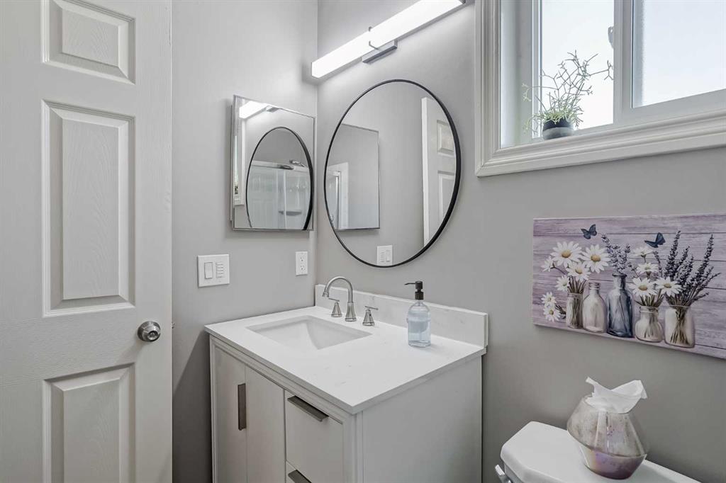 Deerfoot, Glenmore, and Stoney Trail, and conveniently located close to Calgary Public TRANSIT – commuting anywhere in the city is a breeze! The spacious front entry welcomes you into a bright main floor featuring ceramic tile and gleaming hardwood floors that flow seamlessly throughout. Beyond the aesthetics, this home with over 2500 sq ft of total living space has been thoughtfully upgraded. The open-concept design connects the kitchen and living room with ease, creating a perfect setting for everyday living and entertaining. The fully updated chef’s kitchen showcases Merit cabinetry, stunning Cambria quartz countertops, a massive island with barstool seating, and a convenient walk-in pantry. Stainless steel Samsung appliances-including a French Door refrigerator, dishwasher (2024), double oven gas range, and a private coffee station—add the perfect modern touch. The living room is filled with natural light from oversized windows, complemented by a cozy wood-burning fireplace that brings year-round comfort and timeless charm. For added functionality, the laundry