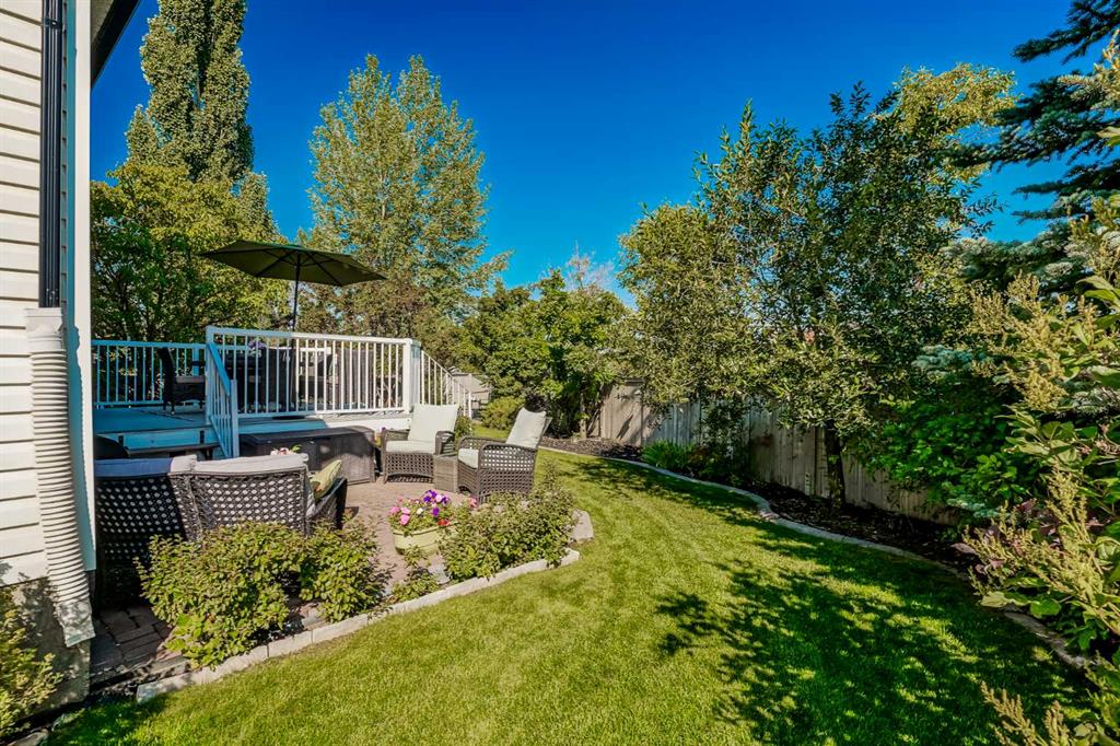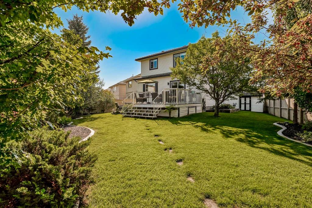 basement expands your living space with a large recreation room featuring a pool table and electric fireplace, while also leaving endless possibilities for future development. Step outside to enjoy a huge, private, beautifully landscaped backyard with northwest exposure for great sunshine. A large deck, firepit, and stone patio make this the perfect spot for summer barbecues and evenings with family and friends. Added conveniences include a shed storage and underground sprinklers. This move-in-ready home combines timeless elegance with modern updates in one of Calgary’s most desirable communities. Don’t miss your chance-book your private showing today and fall in love with everything this home has to offer!