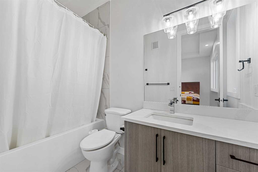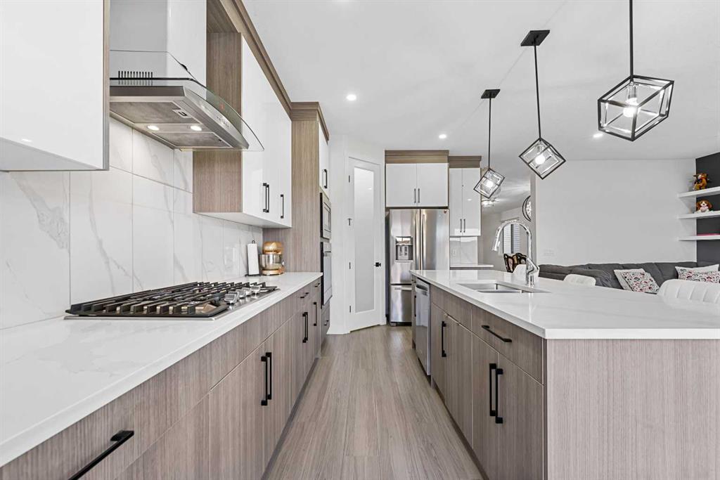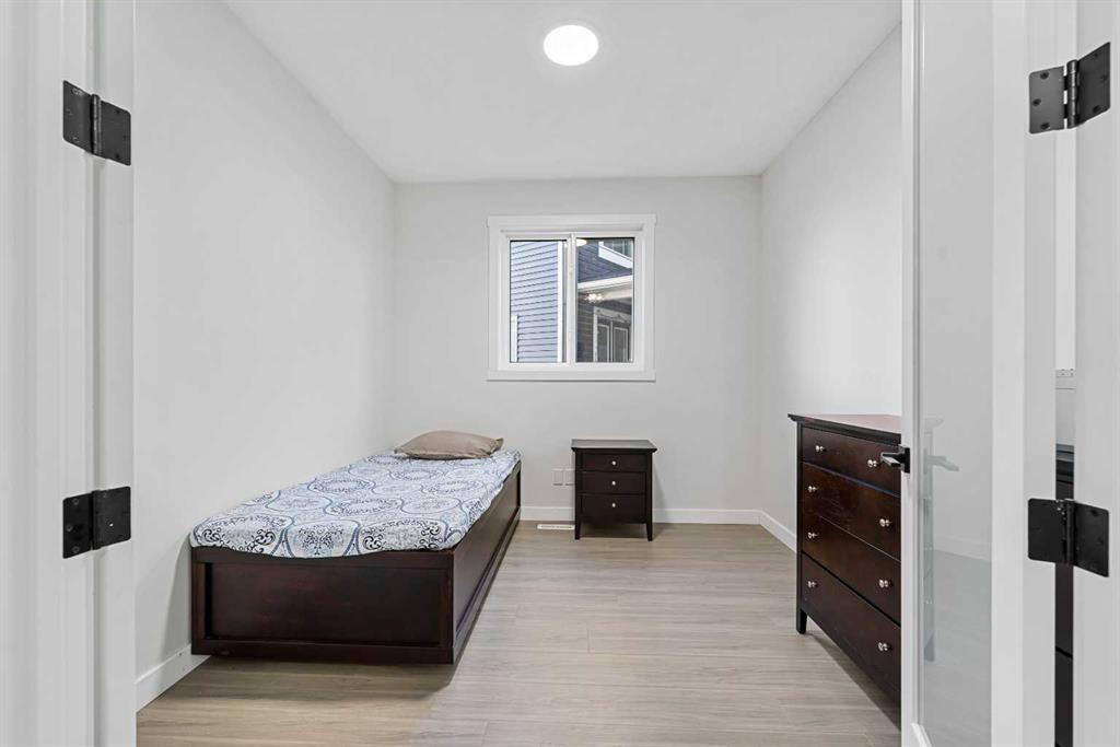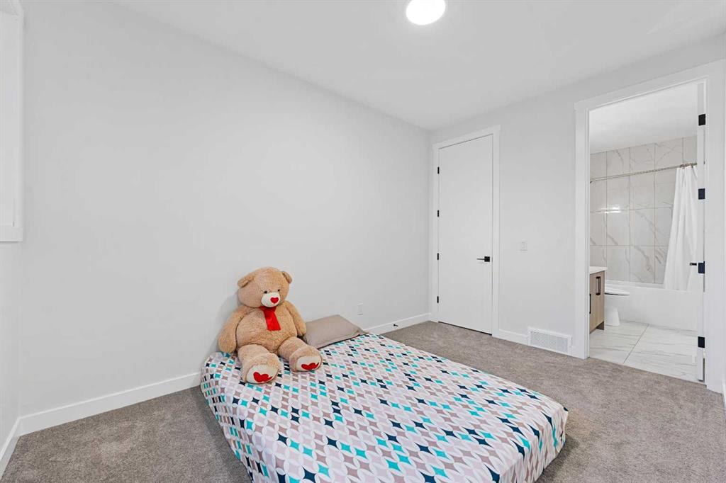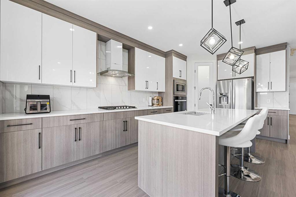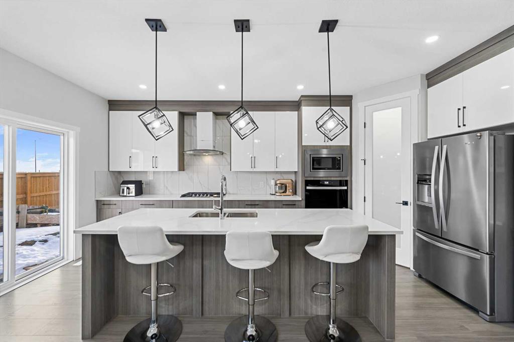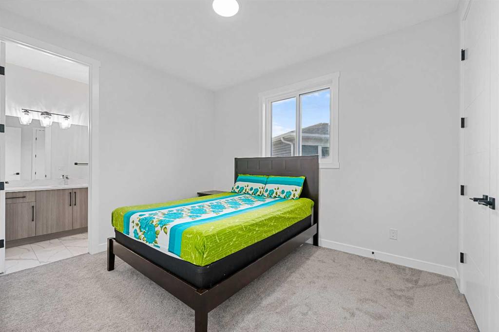 ** Main Level Bedroom & 4pc Bath** | 5 Bedrooms Upstairs | Exquisite Finishes | Quartz Countertops | LVP Flooring | Two Toned Kitchen | Full Height Cabinets | Stainless Steel Appliances | Gas Cooktop | Electric Fireplace | High Ceilings | 2 Primary Bedrooms | Upper-Level Laundry Room | 2 Bedroom Basement Suite (Illegal) | Separate Entry | Basement Laundry | Large Backyard | Front Attached Double Garage | Driveway | Incredible Location | Near Hugh. A. Bennet CBE School, Parks, Baseball Diamond & Shopping. Welcome to your beautiful, spacious 2-storey family home boasting 2816 Sq. Ft. throughout the main and upper levels with an additional 1100 Sq. Ft. in the basement suite(illegal). The front door opens to a grand open floor plan foyer, living and dining rooms with high ceilings and recessed lighting. The main level bedroom and 4pc bath are a great bonus for a large family or overnight guests! The sparkling kitchen is finished with two-toned full-height cabinets, quartz countertops, built-in stainless-steel appliances, a gas cooktop and a large centre island with barstool seating. This home is perfect for entertaining friends and family! The kitchen has a corner pantry with a frosted glass door for a clean, organized feel. The sliding glass doors off the kitchen make indoor/outdoor living easy! This leads to the backyard which is ready for you to build the deck of your dreams! The living room is accented with an electric fireplace surrounded by floor-to-ceiling black tile. The main level is complete with a mud room with built-in shelving off the interior garage door. Upstairs has 5 bedrooms, 4 ensuite bathrooms and a laundry room! The first primary bedroom has tray ceilings, a deep walk-in closet and a stunning 5pc ensuite. The 5pc ensuite has a deep soaking tub, a walk-in shower with a bench and a double vanity with plenty of storage below. The 2nd primary bedroom has a walk-in closet and a 4pc ensuite with a tub/shower combo. Bedroom 3 has a double-door closet and a 4pc ensuite bath. Bedrooms 4 and 5 both have walk-in closets and share the 4pc bathroom. Bedroom 4 has a cheater door to this bathroom making it an ensuite! The upper-level laundry is every homeowner’s dream as it’s near all the bedrooms! This is outfitted with a sink, shelf and plenty of cabinet storage. Downstairs, the 2 bedroom basement suite(illegal) has a separate side entry! The basement has high ceilings that emphasize the grandiose size of this lower level! The open floor plan kitchen and rec room allow for a comfortable living and dining space. The kitchen is finished with full-height cabinets and stainless steel appliances! The 2 bedrooms on this level are both large and have double-door closets. The 4pc bathroom on this level has a tub/shower combo and an extended single vanity with storage below. The basement has its own laundry too! The front attached garage and driveway allow for 4 vehicles to be parked at any time! Hurry and book your showing at this incredible home today!