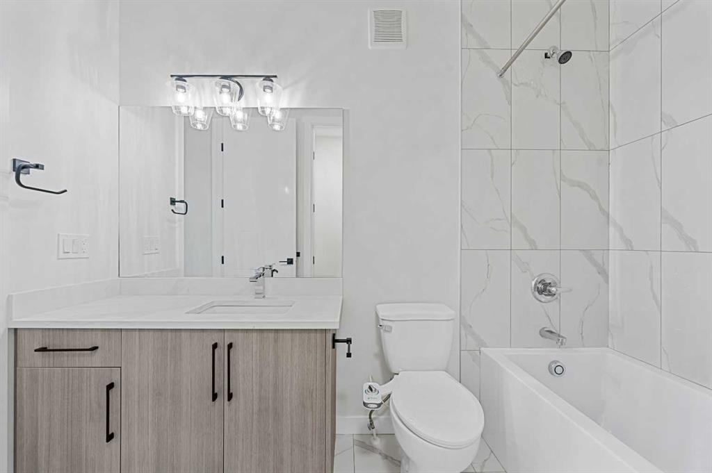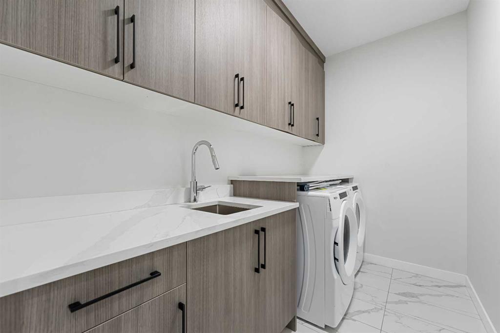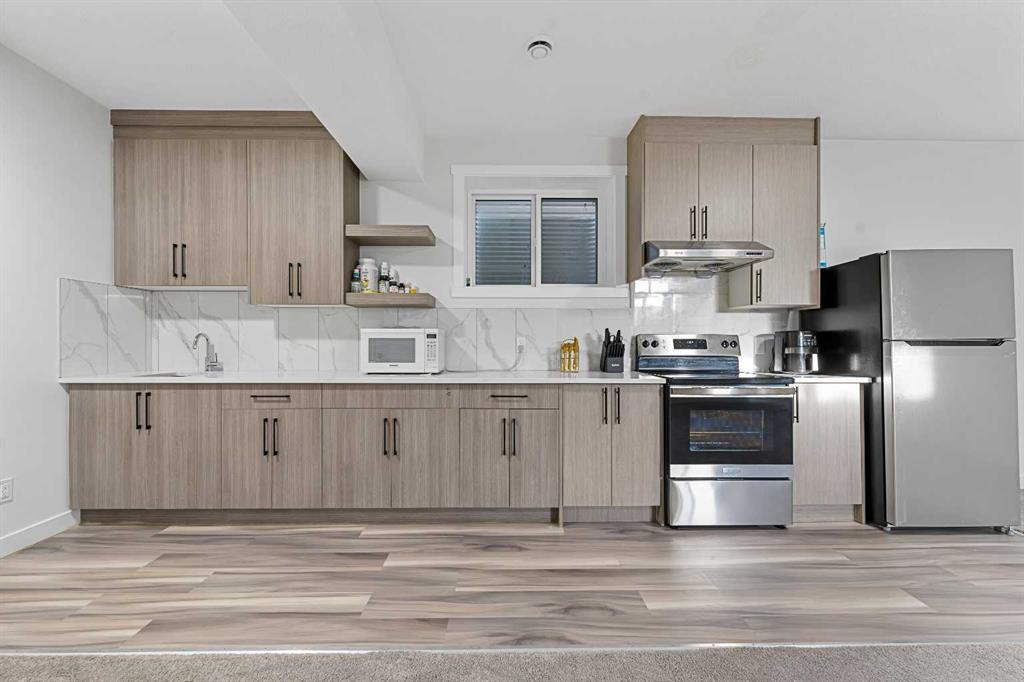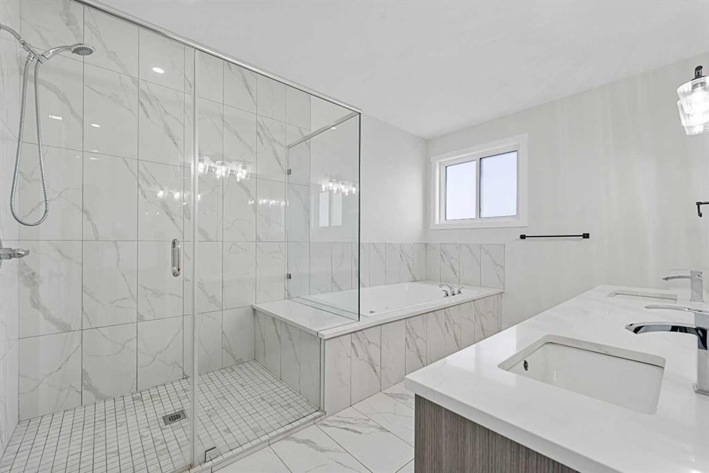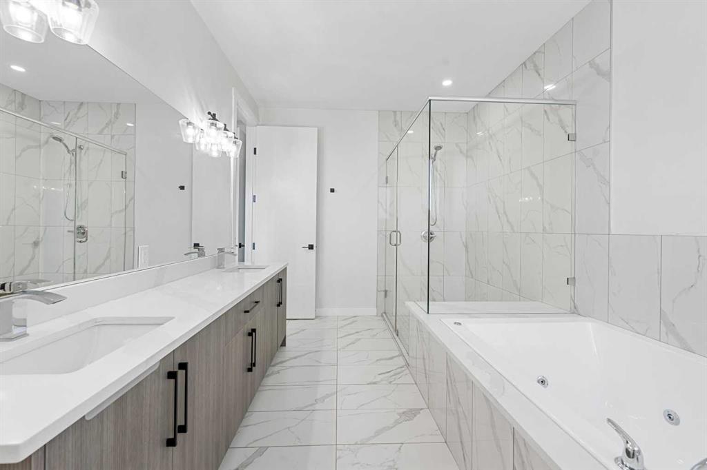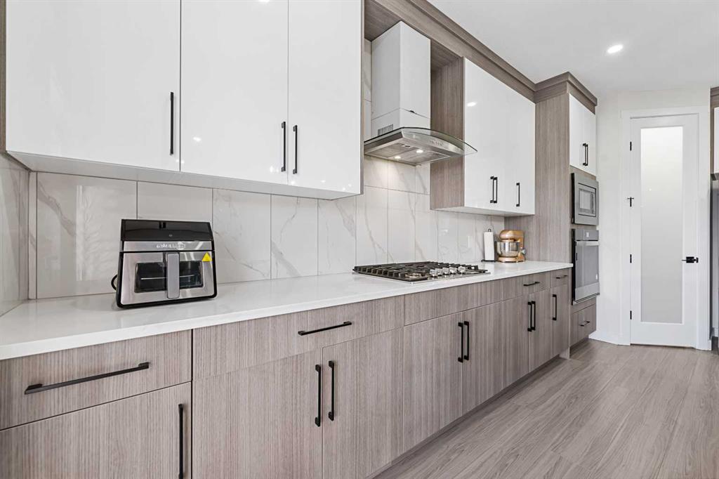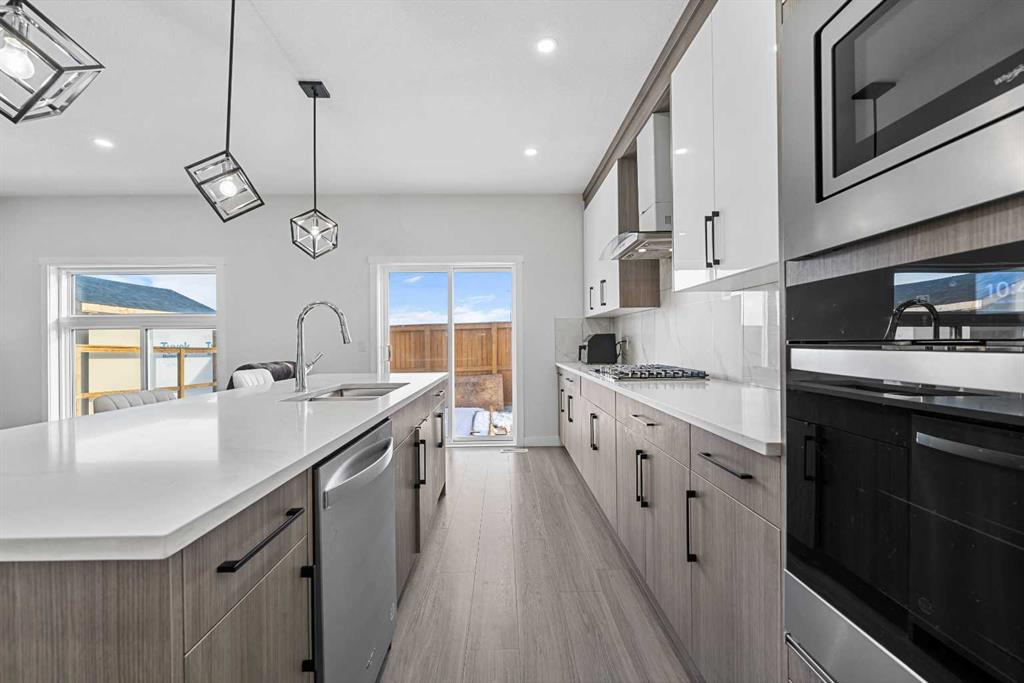 ** Main Level Bedroom & 4pc Bath** | 5 Bedrooms Upstairs | Exquisite Finishes | Quartz Countertops | LVP Flooring | Two Toned Kitchen | Full Height Cabinets | Stainless Steel Appliances | Gas Cooktop | Electric Fireplace | High Ceilings | 2 Primary Bedrooms | Upper-Level Laundry Room | 2 Bedroom Basement Suite (Illegal) | Separate Entry | Basement Laundry | Large Backyard | Front Attached Double Garage | Driveway | Incredible Location | Near Hugh. A. Bennet CBE School, Parks, Baseball Diamond & Shopping. Welcome to your beautiful, spacious 2-storey family home boasting 2816 Sq. Ft. throughout the main and upper levels with an additional 1100 Sq. Ft. in the basement suite(illegal). The front door opens to a grand open floor plan foyer, living and dining rooms with high ceilings and recessed lighting. The main level bedroom and 4pc bath are a great bonus for a large family or overnight guests! The sparkling kitchen is finished with two-toned full-height cabinets, quartz countertops, built-in stainless-steel appliances, a gas cooktop and a large centre island with barstool seating. This home is perfect for entertaining friends and family! The kitchen has a corner pantry with a frosted glass door for a clean, organized feel. The sliding glass doors off the kitchen make indoor/outdoor living easy! This leads to the backyard which is ready for you to build the deck of your dreams! The living room is accented with an electric fireplace surrounded by floor-to-ceiling black tile. The main level is complete with a mud room with built-in shelving off the interior garage door. Upstairs has 5 bedrooms, 4 ensuite bathrooms and a laundry room! The first primary bedroom has tray ceilings, a deep walk-in closet and a stunning 5pc ensuite. The 5pc ensuite has a deep soaking tub, a walk-in shower with a bench and a double vanity with plenty of storage below. The 2nd primary bedroom has a walk-in closet and a 4pc ensuite with a tub/shower combo. Bedroom 3 has a double-door closet and a 4pc ensuite bath. Bedrooms 4 and 5 both have walk-in closets and share the 4pc bathroom. Bedroom 4 has a cheater door to this bathroom making it an ensuite! The upper-level laundry is every homeowner’s dream as it’s near all the bedrooms! This is outfitted with a sink, shelf and plenty of cabinet storage. Downstairs, the 2 bedroom basement suite(illegal) has a separate side entry! The basement has high ceilings that emphasize the grandiose size of this lower level! The open floor plan kitchen and rec room allow for a comfortable living and dining space. The kitchen is finished with full-height cabinets and stainless steel appliances! The 2 bedrooms on this level are both large and have double-door closets. The 4pc bathroom on this level has a tub/shower combo and an extended single vanity with storage below. The basement has its own laundry too! The front attached garage and driveway allow for 4 vehicles to be parked at any time! Hurry and book your showing at this incredible home today!