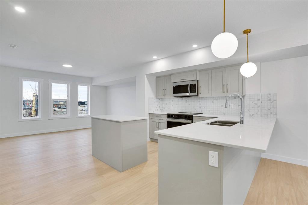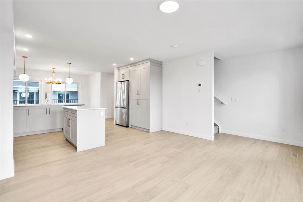 The second floor features an open-concept layout with a beautifully designed kitchen, complete with sleek finishes, and plenty of counter space. The spacious dining and living areas make it ideal for entertaining, and a 2-piece bath adds extra convenience.
