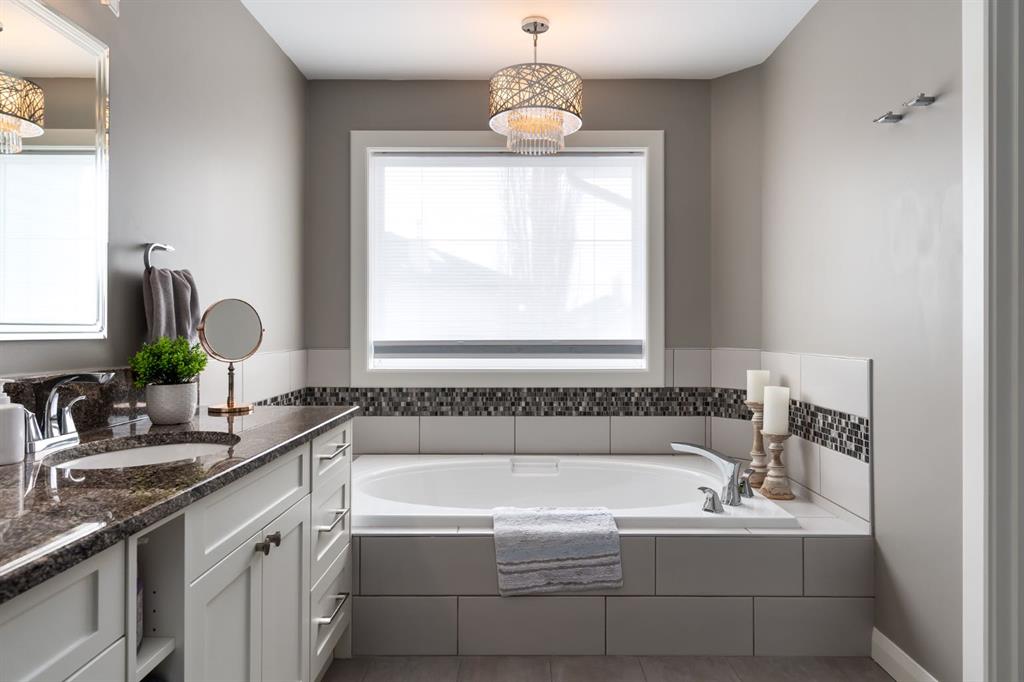 Upstairs, the home transitions into a true retreat. The expansive primary suite offers a luxurious escape with its own lounging area and custom walk-in closet, leading to a stunning five-piece ensuite featuring dual sinks, a deep soaker tub, heated floors, and a custom glass-enclosed shower. Two additional generously sized bedrooms and custom 3pc bathroom complete the upper level, all bathed in abundant natural light and designed with the same attention to detail and quality craftsmanship found throughout the home.