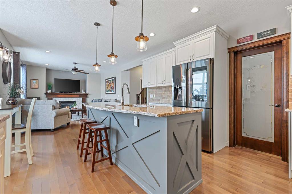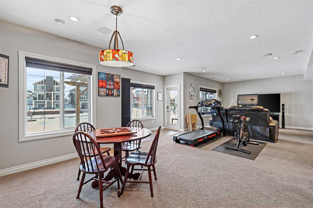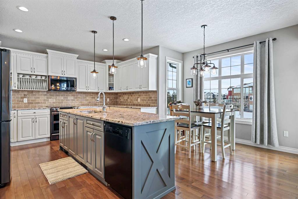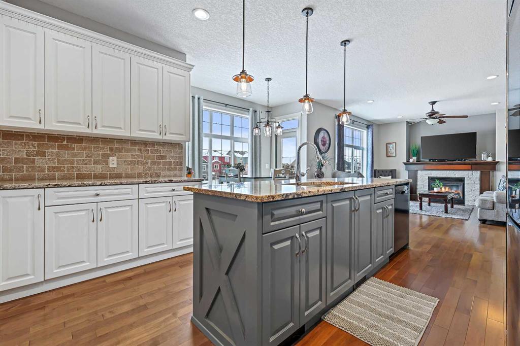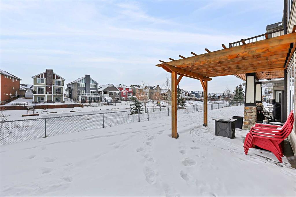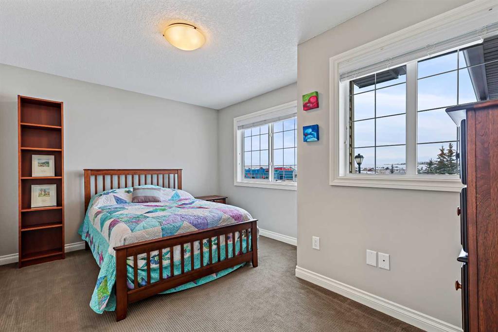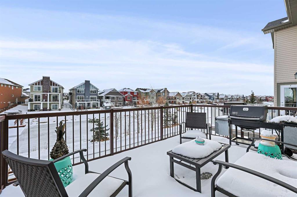 Welcome to Bayside, where a true village atmosphere defines everyday living and community comes first. Here, neighbours gather, children play freely, and winter ice rinks become a shared tradition for all to enjoy. In the summer enjoy paddle boarding and kayaking in your own back yard. This beautifully maintained, air conditioned home has been thoughtfully cared for and is ready to welcome its next family. With 4 beds, 3.5 baths, and more than 3,500 sq ft of developed living space, this home has space for everyone. The main floor offers an exceptional open-concept layout featuring a stunning kitchen, living area, and breakfast nook designed for both daily living and effortless entertaining. Granite countertops, upgraded stainless steel appliances, an abundance of cabinetry, an oversized island with seating space, and an included wine fridge create a space that is as functional as it is inviting. Soaring ceilings and expansive windows overlooking the canal are perfectly complemented by a gas fireplace, creating a warm and elegant backdrop. This level also includes a formal dining room, a spacious den, a convenient half bath, and a mudroom with walk-through pantry access, ideal for seamless organization. Upstairs, the home continues to impress with an oversized bonus room perfect for movie nights or relaxing gatherings. The large primary retreat, accessed through French doors, features a spa-inspired five-piece ensuite with jetted tub and separate shower, along with a spacious walk-in closet. Two additional generously sized bedrooms and a four-piece bath complete this level. Originally designed with four bedrooms up and main-floor laundry, one upper bedroom has been converted into an exceptional laundry room, with the option to easily revert back to a five-bedroom layout as original hookups remain. The professionally developed lower level offers a private bedroom for guests or teens, a three-piece bath, ample storage, a wet bar, and a show-stopping recreation room with Dolby 7.1 wiring and built in ceiling speakers. This level has walk-out access to a concrete patio overlooking the canal. An additional poured concrete pad with cedar pergola and hot tub rough-in adds even more outdoor potential. Additional highlights include central air conditioning, refreshed paint throughout the main and upper levels, and evident pride of ownership throughout. Backing onto the canal and facing greenspace, soccer fields, and ball diamonds, the home also benefits from additional parking options and endless family-friendly recreation. Nose Creek Elementary is just steps from the front door, with parks, pathways, shopping, and amenities close at hand. Bayside remains one of Airdrie’s most sought-after communities—this is a move-in-ready home offering exceptional lifestyle and value.