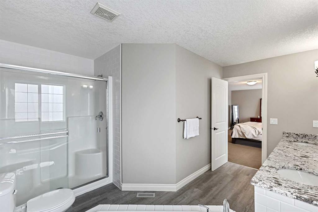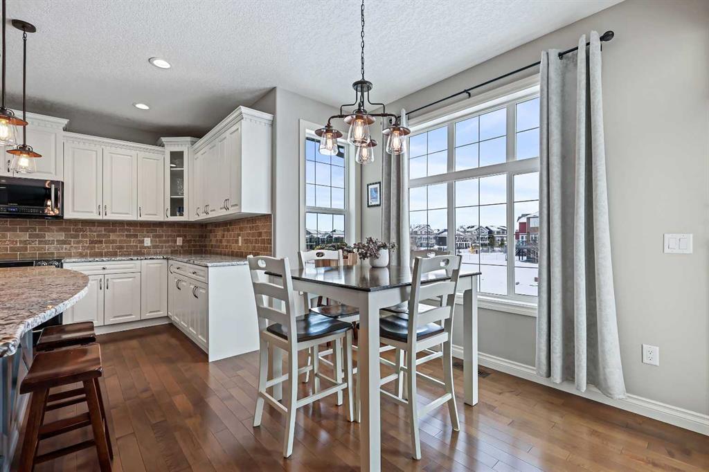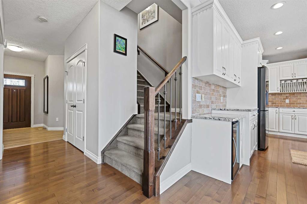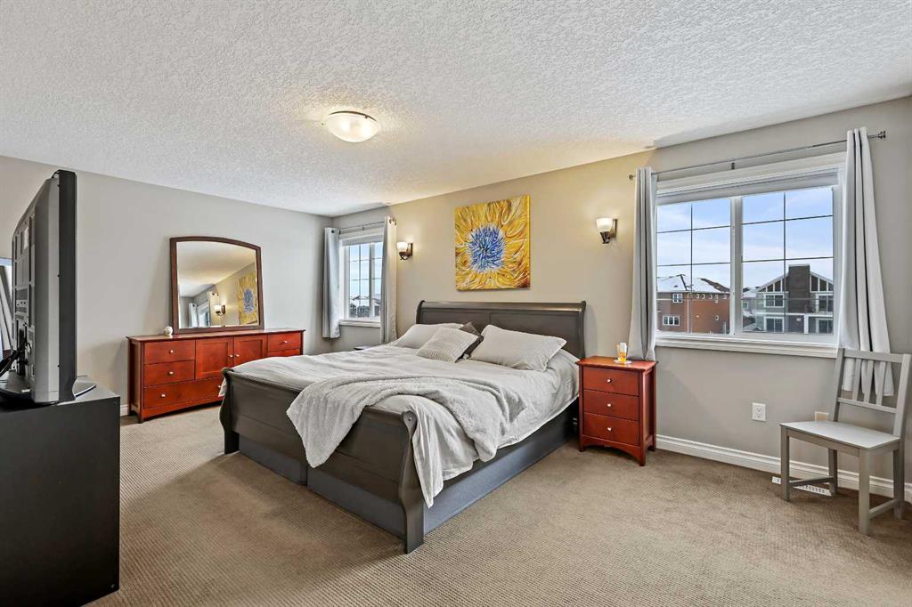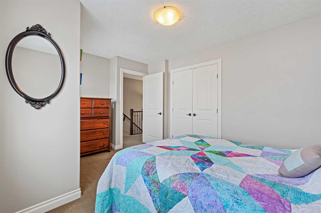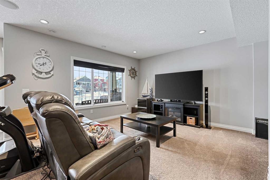 Welcome to Bayside, where a true village atmosphere defines everyday living and community comes first. Here, neighbours gather, children play freely, and winter ice rinks become a shared tradition for all to enjoy. In the summer enjoy paddle boarding and kayaking in your own back yard. This beautifully maintained, air conditioned home has been thoughtfully cared for and is ready to welcome its next family. With 4 beds, 3.5 baths, and more than 3,500 sq ft of developed living space, this home has space for everyone. The main floor offers an exceptional open-concept layout featuring a stunning kitchen, living area, and breakfast nook designed for both daily living and effortless entertaining. Granite countertops, upgraded stainless steel appliances, an abundance of cabinetry, an oversized island with seating space, and an included wine fridge create a space that is as functional as it is inviting. Soaring ceilings and expansive windows overlooking the canal are perfectly complemented by a gas fireplace, creating a warm and elegant backdrop. This level also includes a formal dining room, a spacious den, a convenient half bath, and a mudroom with walk-through pantry access, ideal for seamless organization. Upstairs, the home continues to impress with an oversized bonus room perfect for movie nights or relaxing gatherings. The large primary retreat, accessed through French doors, features a spa-inspired five-piece ensuite with jetted tub and separate shower, along with a spacious walk-in closet. Two additional generously sized bedrooms and a four-piece bath complete this level. Originally designed with four bedrooms up and main-floor laundry, one upper bedroom has been converted into an exceptional laundry room, with the option to easily revert back to a five-bedroom layout as original hookups remain. The professionally developed lower level offers a private bedroom for guests or teens, a three-piece bath, ample storage, a wet bar, and a show-stopping recreation room with Dolby 7.1 wiring and built in ceiling speakers. This level has walk-out access to a concrete patio overlooking the canal. An additional poured concrete pad with cedar pergola and hot tub rough-in adds even more outdoor potential. Additional highlights include central air conditioning, refreshed paint throughout the main and upper levels, and evident pride of ownership throughout. Backing onto the canal and facing greenspace, soccer fields, and ball diamonds, the home also benefits from additional parking options and endless family-friendly recreation. Nose Creek Elementary is just steps from the front door, with parks, pathways, shopping, and amenities close at hand. Bayside remains one of Airdrie’s most sought-after communities—this is a move-in-ready home offering exceptional lifestyle and value.
