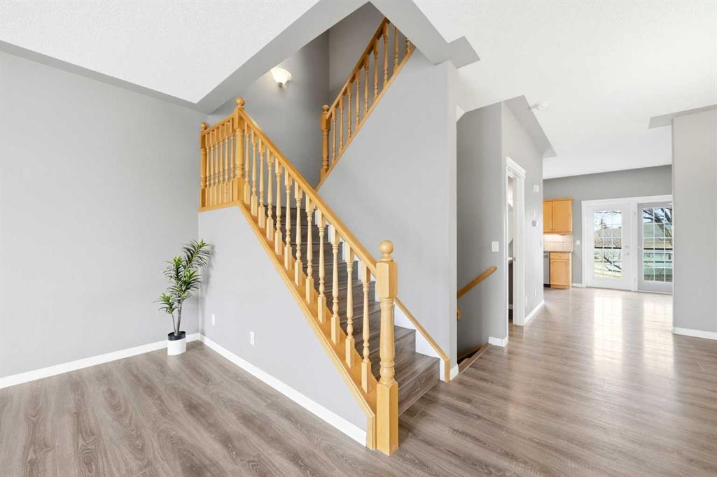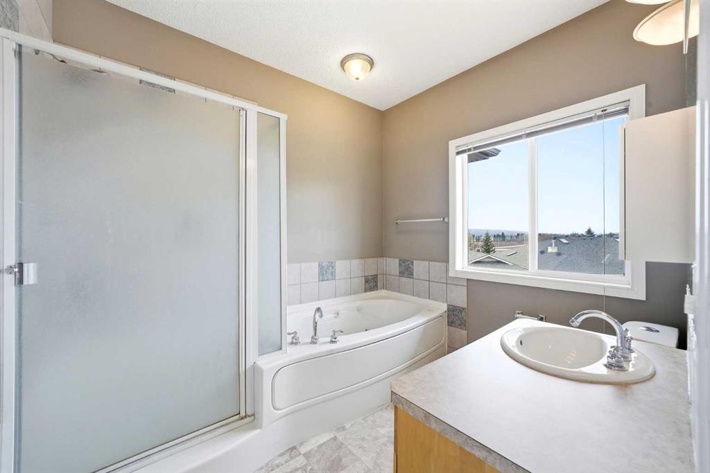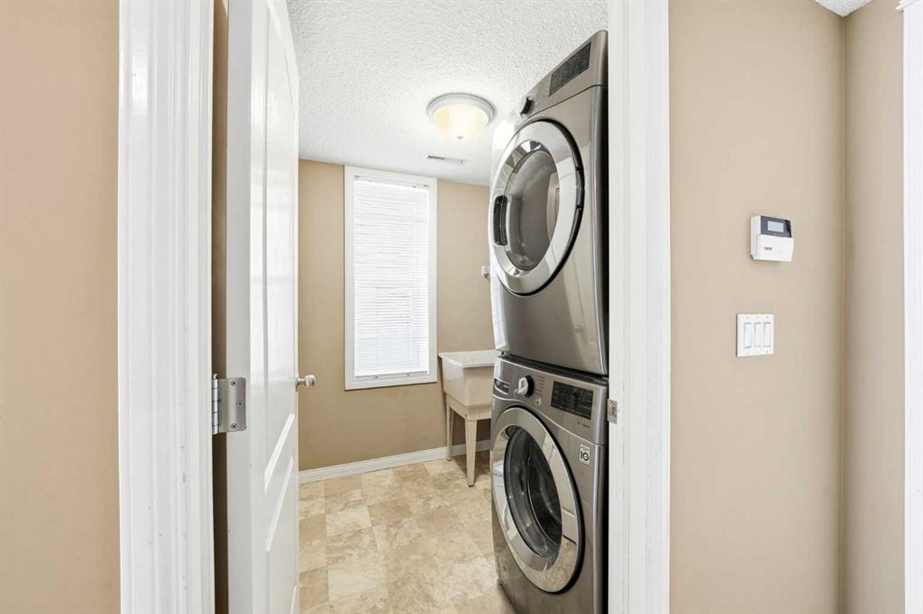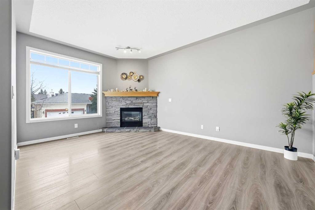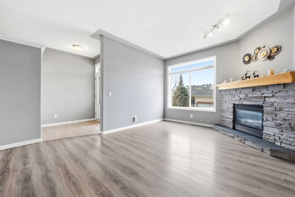 Welcome to this spacious and well-appointed 3-bedroom, 2.5-bathroom home offering a highly desirable, family-friendly layout, a fully finished walkout basement, attached double garage, and low-maintenance living. The bright and open main floor features a cozy fireplace, a functional kitchen complete with a brand new Samsung stainless steel range, and a sunny breakfast nook—perfect for everyday living and entertaining. Upstairs, you’ll find three generously sized bedrooms, providing comfortable space for the whole family. Start your mornings in the primary retreat, where you’ll enjoy beautiful Rocky Mountain views, a walk-in closet, and a 4-piece ensuite with a relaxing jetted tub. The fully finished walkout basement adds incredible versatility, featuring a dedicated laundry room with utility sink and a flexible living area ideal for a family room, home office, or gym. Step outside to the balcony equipped with a natural gas BBQ line—perfect for summer gatherings. Located in a prime, convenient area close to restaurants, shopping, Cineplex, schools, parks, and major routes, this home offers both comfort and accessibility.