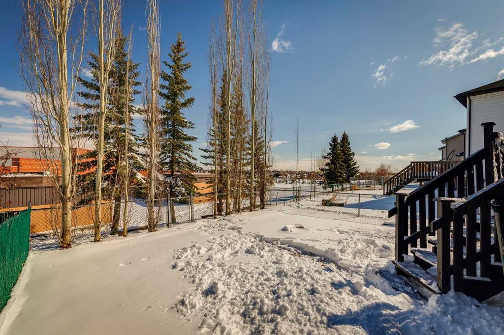 Welcome to this solid family home in the desirable community of Bridlewood, offering a total of nearly 2,000 sq. ft. of comfortable living space. Perfectly situated on a quiet street and backing onto Monsignor J.J. O’Brien School, this home is ideal for families seeking both convenience and tranquility. The main floor features a bright, open-concept layout with an abundance of natural light. The spacious kitchen is equipped with white cabinetry, granite countertops, and ample storage, all overlooking the dining area—perfect for both everyday living and entertaining. The inviting living room, complete with a gas fireplace, creates a warm and comfortable space to unwind. A convenient main floor laundry area and a half bath complete the main floor. Upstairs, the generous primary bedroom offers a walk-in closet and a private 3-piece ensuite. Two additional bedrooms and a full bathroom provide comfortable space for the entire family. The fully finished basement offers excellent versatility, featuring a fourth bedroom, full bathroom, a den or office space, and a spacious recreation room—ideal for family movie nights, a home gym, playroom, or comfortable guest accommodations. Step outside to enjoy the large deck—perfect for summer mornings or evening relaxation. The backyard offers gated access to the school field, creating an ideal space for children to play and explore. With a newer roof and hot water tank already in place, this home offers added peace of mind for years to come. Ideally located close to schools, parks, pathways, C-Train access, and a wide range of everyday amenities, this home offers a great opportunity to enter a family-friendly community with a strong long-term investment