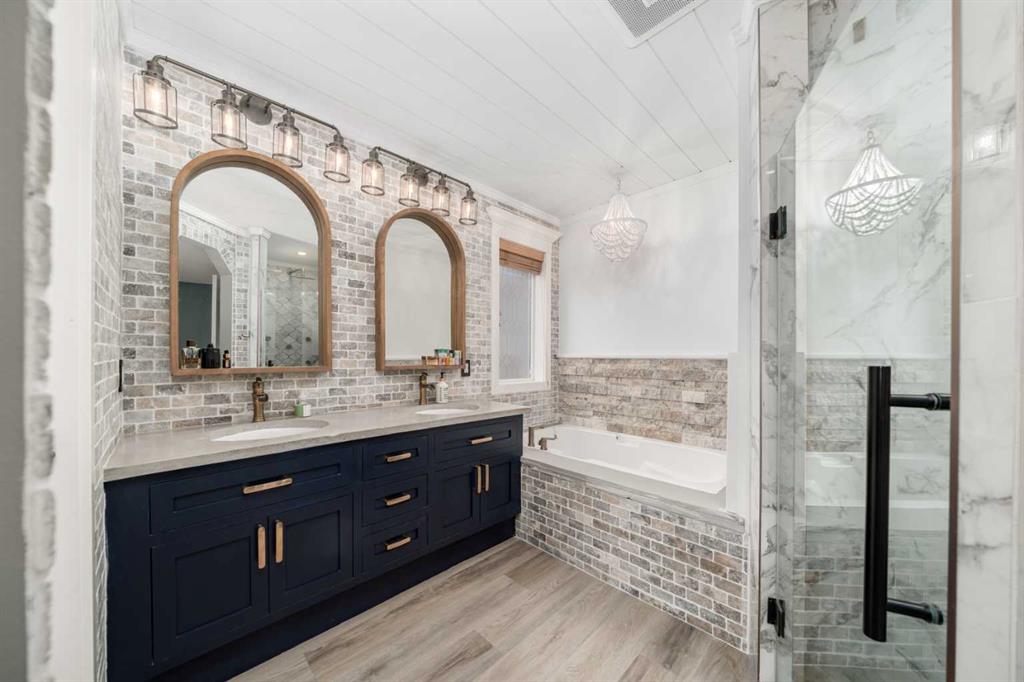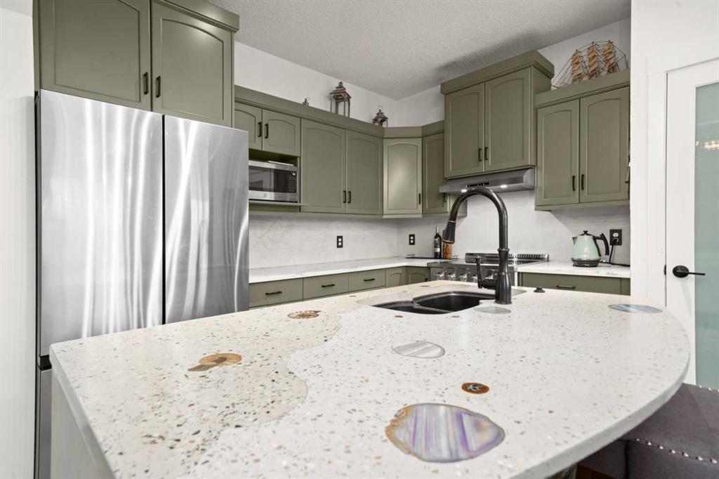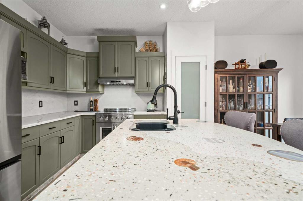 Stunning walkout home with the kind of upgrades that would normally only be in $1 million+ homes. This is not your cookie cutter type of upgrades, they include custom countertop on the island, gorgeous travertine in ensuite, micro cement bathroom with custom bench, Forno gas stove, Lincoln solid doors and the list continues…..You need to view to appreciate! This 5 bedroom home really wows from the moment you walk in with beautiful flooring, 6″ baseboards, gorgeous light fixtures, solid doors etc. Relax in the spacious living room with its gorgeous stacked stone fireplace, prepare a meal in the stunning kitchen with custom waterfall island with gorgeous inlaid shells and fossils. Entertain in the dining room or step out onto the large low maintenance deck and enjoy the view over your yard and the greenspace beyond! Upstairs you will find 5 bedrooms. The spacious master has a walk in closet with built in shelving and benefits from a spa like ensuite with Travertine tile, a stunning tiled shower with body jets, soaker tub, custom mirrors, you will be impressed! The 5 piece family bathroom has quartz counters and has been renovated. Completing this level is a laundry. In the fully finished walkout basement is a huge family room with electric fireplace, a beautiful micro cement bathroom (fully waterproofed) with custom beach and feature sink. Step out into your enclosed cedar hot tub room and relax in the 10 person hot tub whilst enjoying your views to the yard. The large yard has 17ft x 8ft 6″ shed, raised garden beds, fruit bushes and overlooks the greenspace. Step out of your gate onto the greenspace and walking path system and head either towards shopping or the river. Did I mention that the garage is heated…Great for the coming winter! The words in this write up do not do this home justice and you should book a showing and come and see for yourself! View 3D/Multi Media/Virtual Tour!