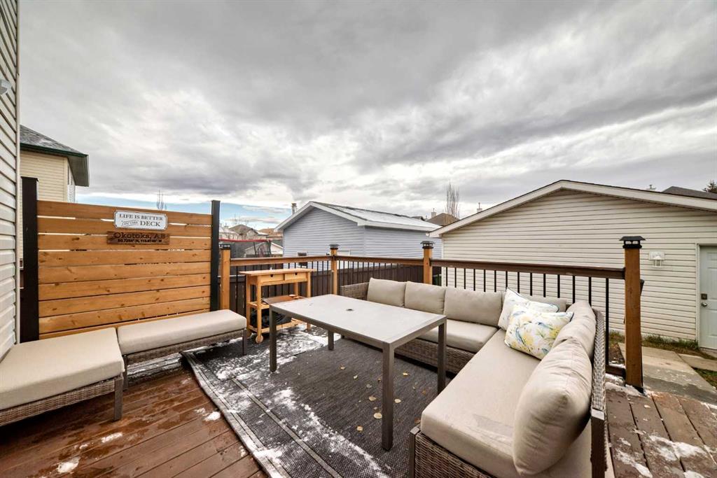 Welcome to 18 Crystal Shores Rd, a fully finished and charming, this 4-bedroom, 2.5-bath home offers year-round lake access in the highly desirable Crystal Shores community. The main floor boasts a bright living room with laminate flooring, a gas fireplace, and a bay window flooding the space with natural light. The renovated kitchen features new cabinets, newer appliances, and a sliding door to the new wood deck—perfect for entertaining. A main-floor laundry with newer washer/dryer and a convenient half bath complete this level. Upstairs, discover three spacious bedrooms, including a primary suite with walk-in closet and 4-piece ensuite, plus an additional 4-piece bathroom. The fully finished basement offers a large family/TV room, a bedroom or gym space, and a 3-piece rough-in for future bathroom development. The mechanical room includes HVAC, humidifier, water softener, and more for comfort and efficiency. Outside, enjoy a fully fenced backyard and an oversized double detached garage providing ample storage and workspace. The new deck adds extra outdoor living space. Set on a quiet street, this home is close to top schools, walking paths, parks, the Okotoks Rec Centre, and easy access into Calgary, all while enjoying Crystal Shores lake privileges. A wonderful opportunity to embrace comfort, style, and lakeside living in one of Okotoks’ most sought-after neighborhoods. OPEN HOUSE on Sunday Nov 22 from 12 pm to 3 pm.