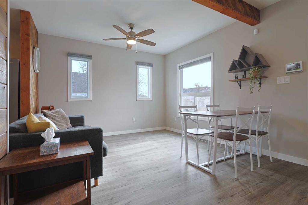 Opportunity knocks here in this beautifully updated character home in Heritage Okotoks, nestled on this quiet crescent on this huge 50x150ft lot within walking distance to schools & Okotoks Old Towne Plaza retail district. This charming 1940s bungalow has new brand vinyl plank floors, 3 bedrooms & full bathroom, stainless steel appliances, 2 decks & a host of improvements including hot water tank, fence, electrical & plumbing. Bathed in natural light, you’ll love the open feel of the main floor with its sunny South-facing living room & eat-in kitchen with pantry & stainless steel appliances which includes a GE gas stove & new Whirlpool fridge (2025). Main floor has 3 bedrooms highlighted by the primary bedroom with big walk-in closet & feature wall with reclaimed wood paneling. The updated full bathroom has granite-topped double vanities & shower/tub combo. The lower level is finished with a rec room/home office, workshop/utility room & laundry with newer Maytag Maxima washer & dryer (@ 4years old). The enclosed front porch is a wonderful welcoming space to sit & relax, & the backyard is a huge open space with 1 of 2 decks, 2 storage sheds, firepit & new fence (2022)…perfect for the kids to play in or for you to enjoy the great outdoors. Improvements include hot water tank (2023), electrical (with panel upgraded to 100amp), plumbing, insulation, drywall, windows, insulated interior walls & spray foam insulations in the crawlspace area. Within minutes from your front door is historic downtown Okotoks…with its services & restaurants, trendy shops & cafes. And with the quick access to Highway 2A/Northridge Drive means you have an easy commute to Calgary, High River & beyond!