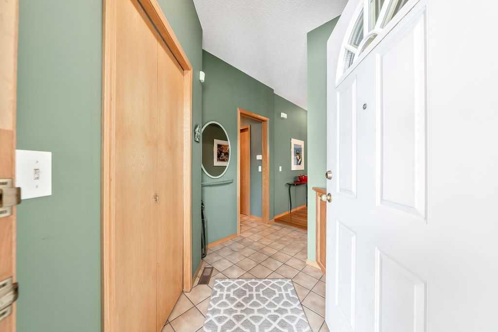 Well maintained WALKOUT bungalow half-duplex. Welcome to this bright and inviting home backing onto a tranquil, tree-lined green space with a north-facing backyard. The main floor is filled with natural light and showcases hardwood flooring and large windows throughout. The kitchen offers warm oak cabinetry, durable laminate countertops, a cozy eating nook, and direct access to a spacious 285sqft deck-perfect for morning coffee or summer entertaining. The primary bedroom is conveniently located on the main floor and features a private 4-piece ensuite complete with a relaxing soaker tub. A sunny, south-facing front den with a closet provides excellent flexibility and can easily function as an additional bedroom or home office. The main level is completed by a comfortable living room, formal dining area, a convenient 2-piece bathroom, and mud room. The walkout basement expands the living space with a generous family room, an additional bedroom, a full 4-piece bathroom, laundry room, and ample mechanical and storage space. Ideally situated near parks, walking paths, schools, shopping, and other everyday amenities, this home offers both comfort and convenience in a beautiful setting.