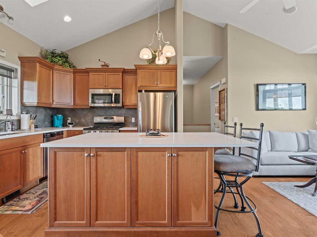 **MOUNTAIN VIEWS ** 5.14 ACRES**2 HOMES IN ONE** 54’x32′ SHOP** HEATED POOL** Unique opportunity to have a custom built 2 STOREY HOME attached to a BUNGALOW. ~Multi family generational living at its finest~ This exquisite property has been immaculately maintained and is ready for its new owners. Step inside to this Air-conditioned , showhome like setting – and embrace the feeling of comfort. The updates through out the home shine through as you step through the main living area on the beautiful luxury flooring. Huge windows allow plenty of natural light and views of the big Alberta Skies. The beautifully presented kitchen is the true heart of the home featuring upgraded appliances, loads of cabinetry, and a large sit up island. A perfect place to entertain guests with an open floorplan that combines , living, dining, and kitchen in one space. The upper level boasts a primary suite suited for king sized furniture, and a renovated ensuite with 2 way fireplace. Enjoy the views in this tranquil setting while relaxing in a space that you will not want to leave. The architecture of the rooflines on this home will capture your eyes and your heart. 2 more large bedrooms and a full bathroom complete this upper level. The lower walkout level gives a good place for a recreation area, gym, home based business, or whatever your needs may be. The bungalow “wing” of this expansive home provides a full second living area. The large kitchen, vaulted ceilings, huge amounts of natural light, and open floor plan, make this cozy space the perfect place to settle into. This part of the home offers 1 bedroom up plus ensuite and 2 piece bathroom. The lower level walkout has 2 more bedrooms, another full bathroom, and a huge living space. After falling in love with the interior of this home you are definitely going to love the outdoor space. With 2 upper decks, 2 front porches 2 lower patio spaces, a covered gazebo sitting area, a poolside pergola deck overlooking the stunning heated pool, an outdoor fireplace , this place is made for entertaining, staying home, and making memories! The 54 x 32 shop is icing on the cake. Immaculate landscape, mature trees, triple heated garage wide open spaces- there is truly something for everyone at this exceptional property. Send the kids on the bus right from your driveway, this is a quick commute to Calgary and Okotoks. Become a part of the Davisburg community and enjoy their events just down the road from home. THIS PROPERTY IS TRULY THE CHANCE OF A LIFETIME …
