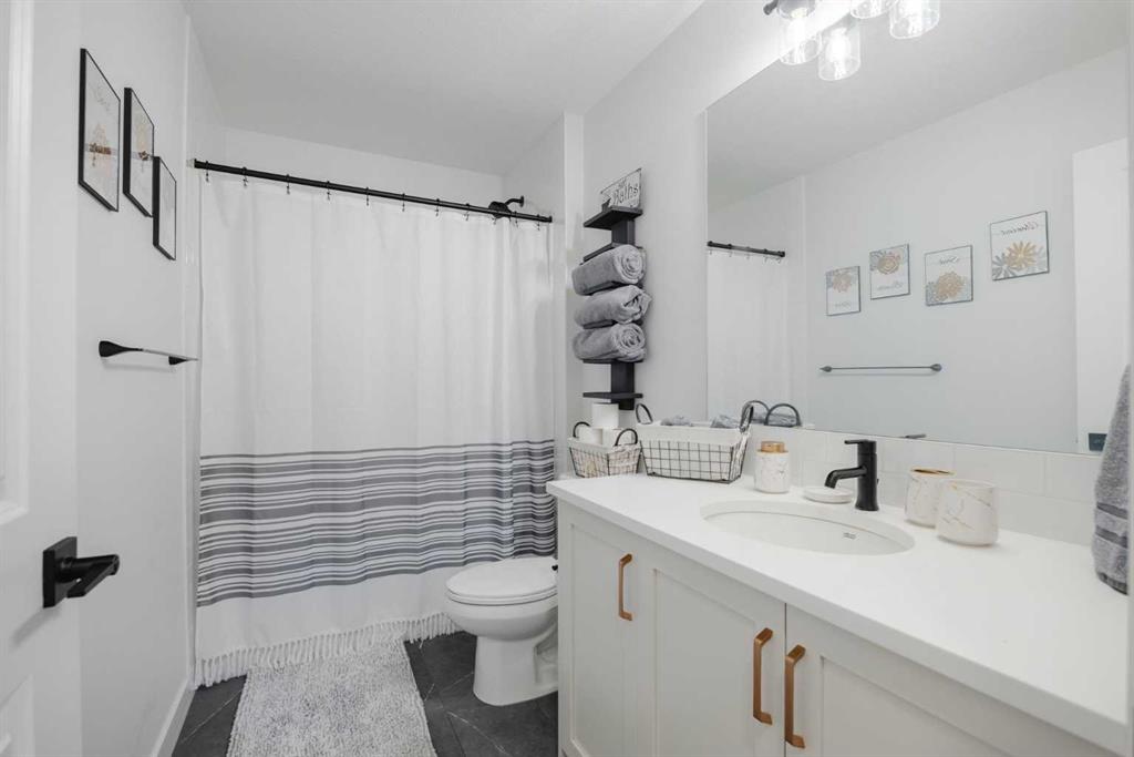 You’re going to LOVE this – STYLISH MODERN COMFORT on the doorstep of the Rockies! This is not your average home – it is has a style and charm that you don’t often find in this price range. The heart of your new home is the beautiful OPEN CONCEPT kitchen with GAS STOVE set into gorgeous cabinets and quartz countertops, overlooking your living room and dining room. The stylish accents give you a feel of modern comfort, while at the same time, the GAS FIREPLACE provides warmth and coziness. Upstairs is your PRIVATE RETREAT with builder’s upgrades: vaulted ceilings, gorgeous 5 piece ensuite and extra large walk-in closet. Your BACK YARD RETREAT is beautifully landscaped (and you’ve got RV PARKING as well). Finally, your BASEMENT IS FULLY DEVELOPED, including a 2 piece bathroom, so there is nothing left to do – just move right in and start living! Priced to sell – don’t miss out! (Note: HOA of $75/year, includes local amenities like parks, trails, community garden, a toboggan hill, skating ice, firepit, kids activities, etc) (Note: New Home Warranty is still in effect)