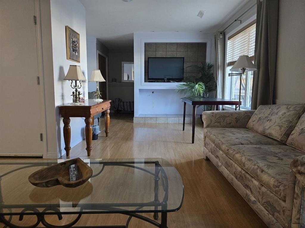 Beautifully maintained bungalow walkout in a prime location offering over 2,500 square feet of developed living space, a bright legal suited walkout basement, and 11 solar panels to significantly reduce monthly utility costs. The main level features hardwood floors, vaulted ceilings, fresh paint, a spacious great room with gas fireplace, and a dream kitchen with granite countertops, upgraded cabinetry, stainless steel appliances, new dishwasher (January 2026), and hood fan vented directly outside, plus a sunny breakfast nook opening to the upper deck. The formal dining area is currently used as a home office, while the generous primary bedroom includes a four piece ensuite with separate shower and jetted tub, along with an additional bedroom and full bathroom. The main floor laundry room offers Kenmore front load washer and dryer with storage drawer base, freshly painted walls (2024), and direct exterior venting. The lower level includes a legal suited walkout basement with a large living area, full kitchen, two bedrooms, full bathroom, mudroom entry, cold room storage, and exterior venting. Outside, enjoy a massive backyard with stamped concrete patio space, greenhouse, maintenance free front drive and walkways, plus a newer roof (2020), making this an exceptional home with flexibility and income potential.