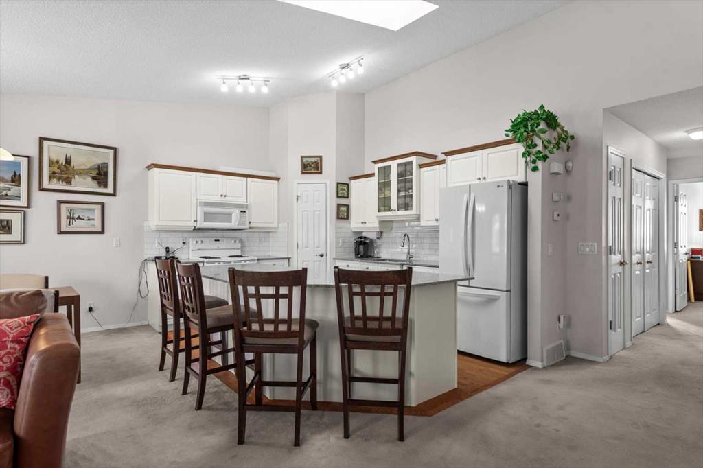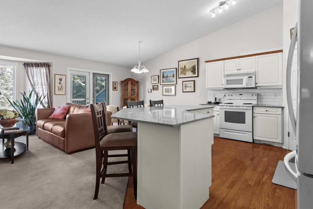 There’s a particular kind of ease that comes with the right home at the right chapter of life. This reverse walkout villa in the Highlands of Valley Ridge has that quality, the kind that’s hard to manufacture but immediately felt the moment you walk through the door. The upper level is where daily life unfolds beautifully. An open-concept kitchen, dining, and living space catches the light generously, anchored by a corner gas fireplace that earns its place as the room’s quiet focal point. The kitchen is thoughtfully laid out — a large island for morning coffee or casual catch-ups, ample cabinetry, a corner pantry, and real counter space to actually cook in. Updated quartz countertops and subway tile backsplash bring a clean, bright energy, the kind of quiet refresh that makes everything feel considered. The dining area opens to a large, tree-shaded deck where morning coffee tastes a little better, summer dinners linger well past sunset, and conversations with longtime friends seem to find their way here naturally. Surrounded by mature trees, it carries the feeling of a mountain retreat without leaving the city. The primary bedroom is genuinely restful — generous enough for king-sized furniture, with a walk-in closet and a private 3-piece ensuite. A second bedroom and full bathroom sit just down the hall, ready for out-of-town guests who’ll inevitably want to extend their stay, or the grandchildren who’ve already claimed it as their own. The entry level offers real versatility. A third bedroom, family room, full bathroom, and a surprising amount of storage make this level as functional as it is flexible. Step outside to a private patio where a corner flower garden stops you in your tracks — tended with care and devotion over twenty years, it’s the kind of garden that doesn’t happen by accident. Seasons of intention are written into every bloom. Birthdays celebrated here, neighbours stopping by unannounced, quiet mornings that belong to no one but you. The Highlands clubhouse offers a party room with a built-in kitchen, lounge, and pool tables — the kind of space where holiday gatherings spill over with laughter. The Valley Ridge Golf Club sits directly across the street. Walking and bike paths wind toward the Bow River and Bowness Park — easy riding distance to summer BBQs, riverside trails, and the kind of unhurried family afternoons that become the memories people talk about for years. This home has been loved and carefully maintained for twenty years. The garden, the details, the way everything has been kept, it all tells the same story. Ready for its next chapter and the next owner lucky enough to carry that care forward. Double attached garage, Stoney Trail minutes away, and the mountains just 45 minutes west. Some homes ask you to settle. This one invites you to truly arrive — and stay.