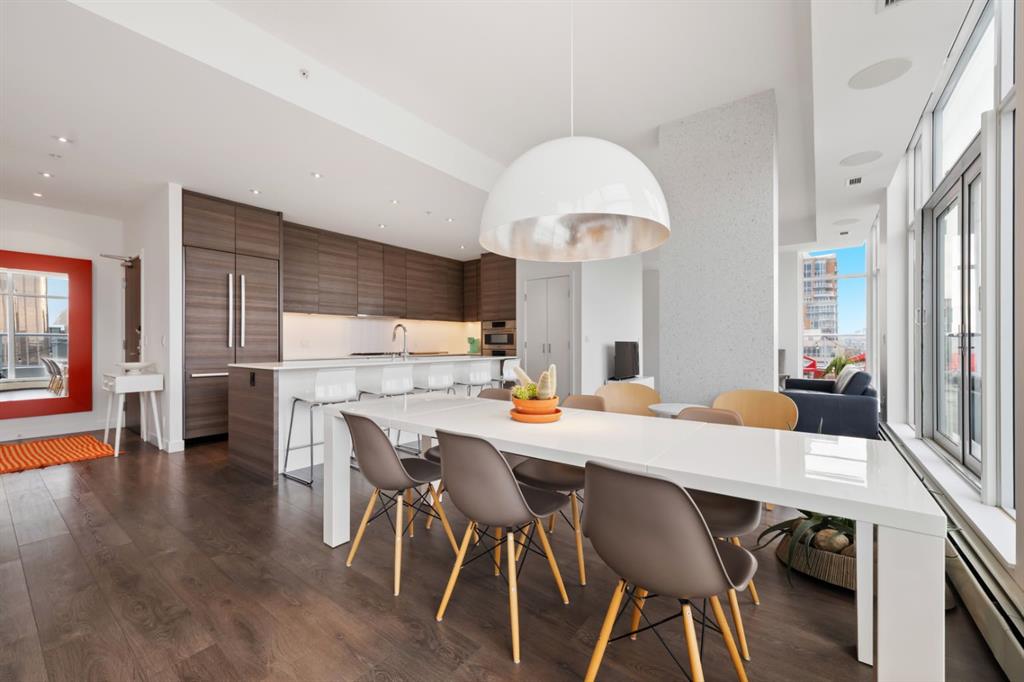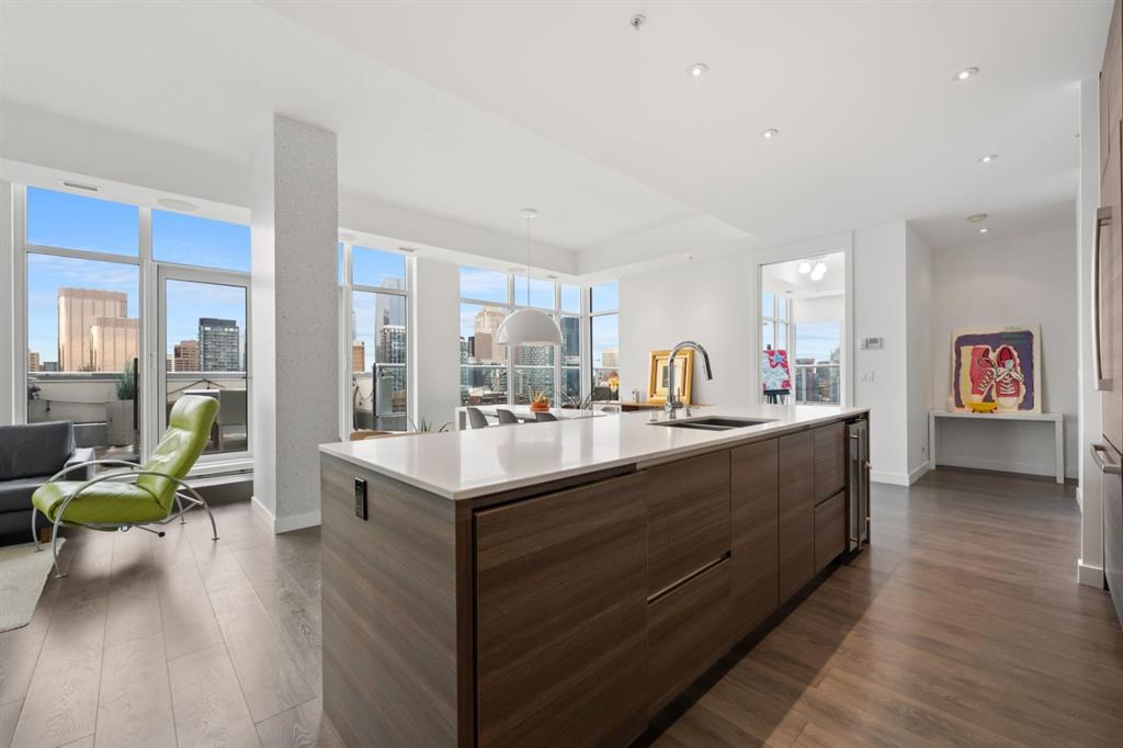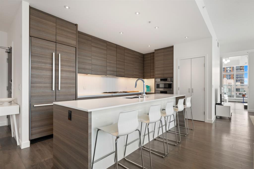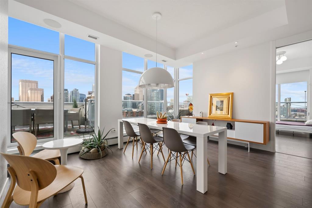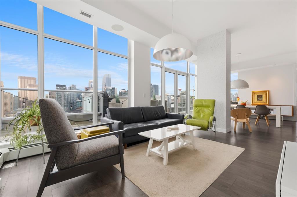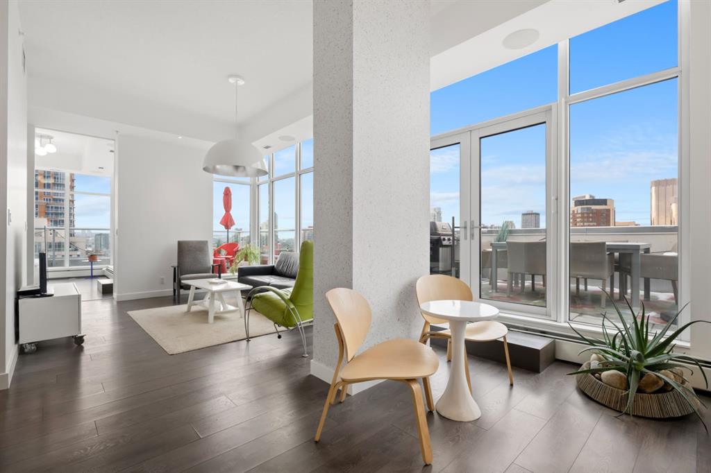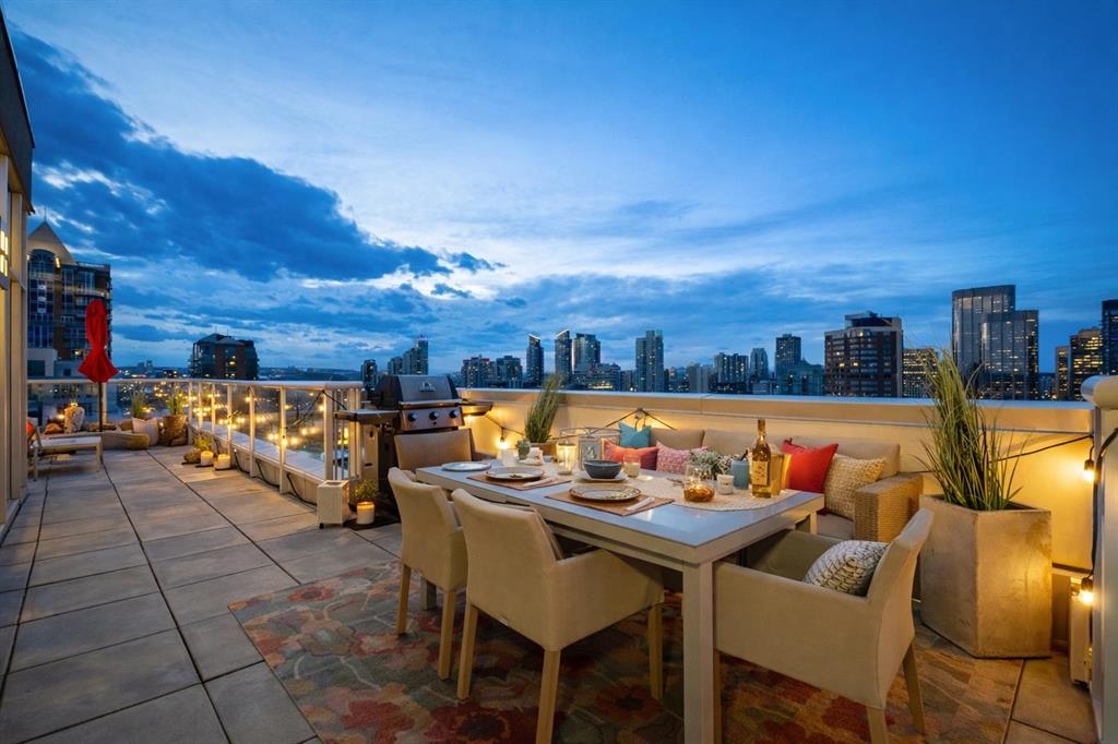 The Penthouse @ Smith: Your statement piece in the Beltline steps from dozens of shops + restaurants. Wake up to the skyline. Wind down to the mountains. Nearly 1,600 of interior square footage along with an addition 800 outside on the beautiful terrace. Floor-to-ceiling glass,10-foot ceilings and light pouring in from every angle. The living and dining areas don’t just sit there – they pull you in, frame the view and make every night feel like an occasion. The kitchen is where function meets presence – sleek, expansive and seamlessly integrated. Wrapped in quartz, complete with a gas range, extensive storage and island seating for five, it’s built for both everyday ease and unforgettable gatherings. This is the kind of space where guests settle in, conversations flow naturally and no one feels in a rush to leave. With three bedrooms, three exposures and two primary retreats, the layout offers a rare level of flexibility without compromise. Whether it’s hosting, creating a dedicated workspace, or simply having the freedom to spread out, this home adapts to your lifestyle rather than asking you to adjust to it. Take pride in knowing that $125,000 has been invested into the property over the last few years. Let’s step out to the wraparound terrace. 180 degrees of “how is this even real?” Morning coffee. Sunset wine. Long weekend BBQs. Fire table conversations that make you forget about your iphone. When the day winds down, your primary suite becomes the escape: Spa-inspired ensuite. Custom dressing room. Automated blackout blinds. Close the world off: Reset + repeat. Experience the exclusivity of a private garage to tuck away your vehicles along with a huge storage room for seasonal items. Step outside and the best of the city is already at your doorstep. No commute. No compromises. Just immediate access to everything that makes inner-city living so desirable – while having a home that feels like a true escape above it all. At a certain point, it’s no longer about having more space – it’s about having the right space. Better views. Better design. A better way to live. The Penthouse at Smith represents that shift – the move you’ve been building toward. And when you experience it, one thing becomes clear: this is what “worth it” looks like.