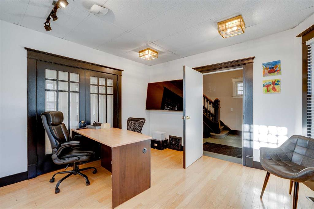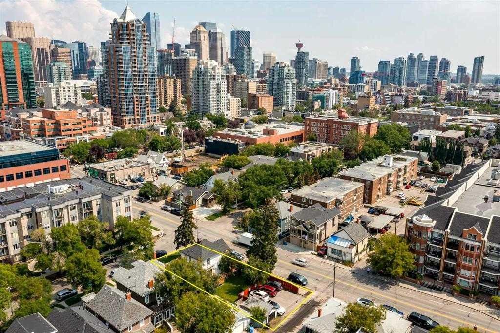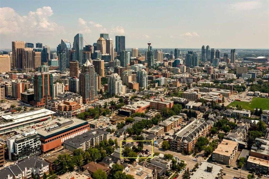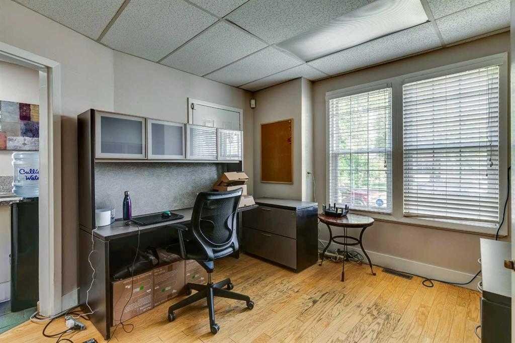 Situated on a prominent 50′ x 120′ corner lot in the heart of Lower Mount Royal, this distinctive professional building offers an exceptional opportunity for a wide range of professional or private practices. Ideal for lawyers, accountants, architects and similar users, this well-maintained character two-storey has been thoughtfully converted into seven private offices. Two of the offices are connected by elegant French doors, allowing for a flexible, expanded workspace. Offering over 1,800 sq. ft. of functional space across three levels, the property lends itself equally well to a single-user operation or a collaborative, shared-office environment for multiple services. The main entrance opens into a charming lobby and waiting area, complemented by a kitchenette, two washrooms, and ample storage throughout. Three of the office spaces feature private balconies, while a spacious wraparound veranda enhances the front of the property and adds to its welcoming character. The basement includes a large storage area that could easily be reconfigured into an eighth, generously sized office. At the rear of the property, private parking accommodates up to eight tandem stalls, and a single detached garage provides additional secure storage. Located just one block off vibrant 17th Avenue SW and within walking distance to Downtown, the property offers excellent access to public transit and nearby public parking. In addition to its current use, this site presents outstanding redevelopment potential, with the opportunity to create modern townhomes or live/work units in one of Calgary’s most sought-after inner-city neighbourhoods.