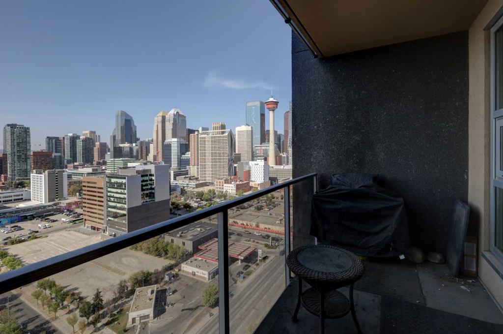 On the 18th floor, perched high above the city in the sought-after Nuera building, this upscale 2-bedroom, 2-bathroom adult-only residence offers unobstructed panoramic views of the downtown skyline and distant mountains—a stunning backdrop both day and night. Step inside and be captivated by the floor-to-ceiling windows that flood the space with natural light and frame the spectacular scenery from every angle day and night. The open-concept layout features a modern kitchen with granite countertops, upgraded cabinetry, perfect for entertaining or enjoying quiet evenings at home. The spacious primary bedroom also boasts floor to ceiling windows, a generous walk-in closet, and a stylish 4-piece ensuite. A second well-appointed bedroom and full bathroom offer flexibility for guests, a home office, or a roommate setup. Located just steps from Stampede Park and the new entertainment district, Nuera offers unmatched access to downtown amenities, dining, transit, and events. Building features include a large fitness centre, residents’ lounge, outdoor terrace, secure underground parking, and concierge service, all designed for comfort, convenience, and lifestyle. Don’t miss this incredible opportunity to own in one of Calgary’s premier high-rises. Call today to book your private showing!