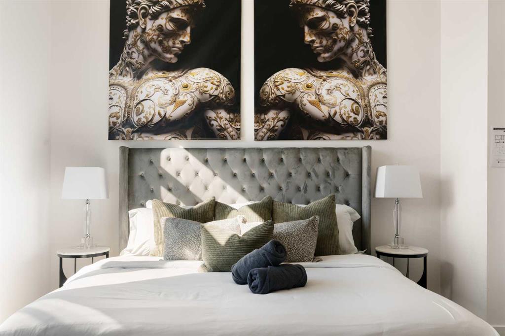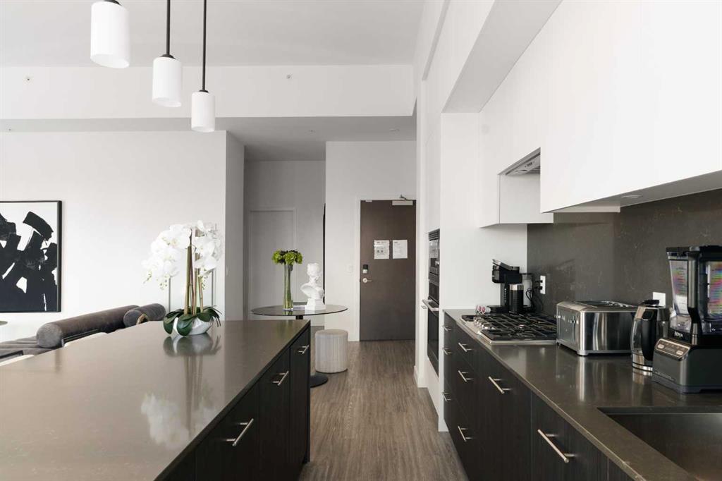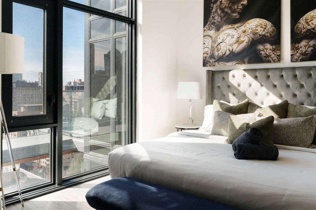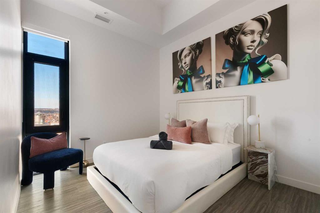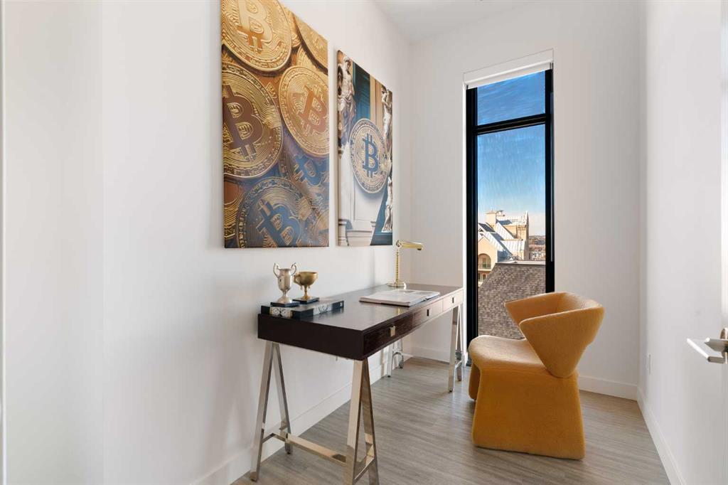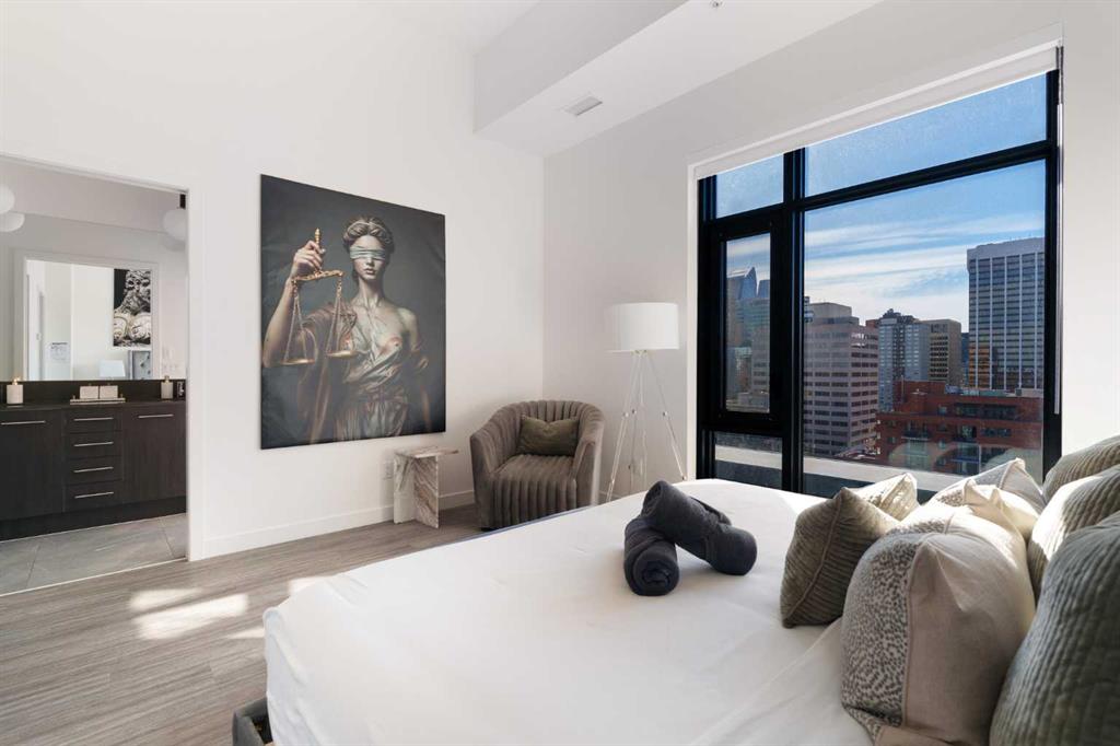 Experience elevated urban living in this luxury penthouse in Downtown Calgary, offering a rare combination of breathtaking views, modern design, and premium finishes. This exceptional 2 bedroom + den, 2 bathroom condo is thoughtfully designed with a seamless open-concept layout that connects the living, dining, and kitchen spaces—perfect for both entertaining and everyday living. The contemporary kitchen features sleek finishes and flows effortlessly into a bright and spacious living area, all framed by expansive windows that capture panoramic views of the Rocky Mountains, Bow River, and Calgary skyline. Step outside onto the expansive wrap-around balcony with west exposure, ideal for enjoying stunning sunsets and outdoor living at its finest. The primary bedroom retreat offers both comfort and sophistication, complete with a spa-inspired 5-piece ensuite featuring a soaker tub, dual vanity, and walk-in shower. A second bedroom and versatile den provide flexibility for guests, a home office, or additional living or storage space. Additional features include titled underground parking, and a dedicated storage locker. Located in the heart of Downtown Calgary, this penthouse offers unmatched access to river pathways, dining, shopping, and urban amenities—making it an ideal opportunity for buyers seeking luxury condo living in one of Calgary’s most desirable locations. A rare penthouse offering with unmatched views, location, and lifestyle—don’t miss your opportunity.